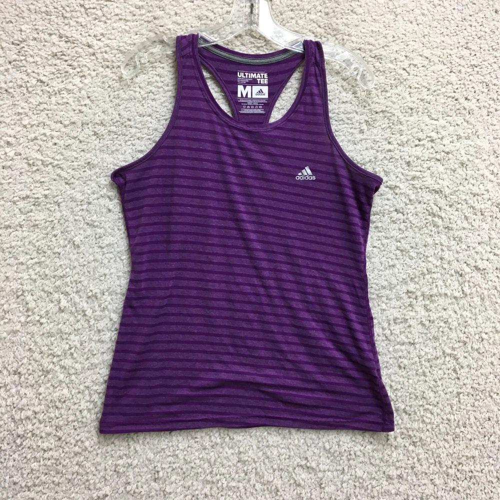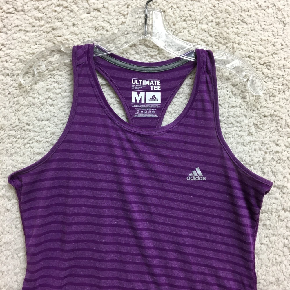 Adidas Tank Top Shirt Medium Adult Purple Ultimate Tee Striped Racerback Women M