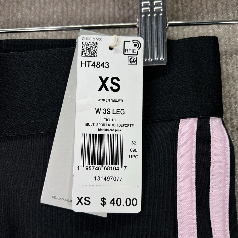 Adidas Tights Womens Size XS Black Pink 3 Stripe Multi Sport HT4843 NWT $40 Item is new with original tags Item measurements are in the photos and as follows: Waist: 22" Inseam: 27" Shipping and Returns I usually ship within 2 business days so you get your order fast! I accept no hassle returns for items within 30 days, even if you just do not like it. Please feel free to ask any questions you may have. I answer most questions as soon as possible and thanks for looking!