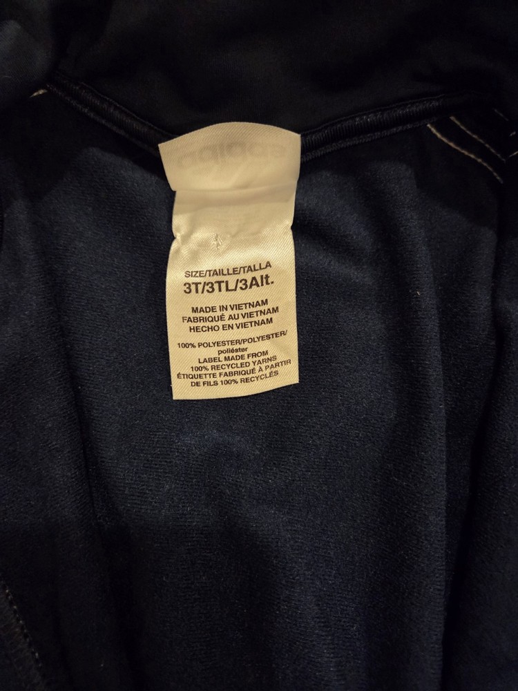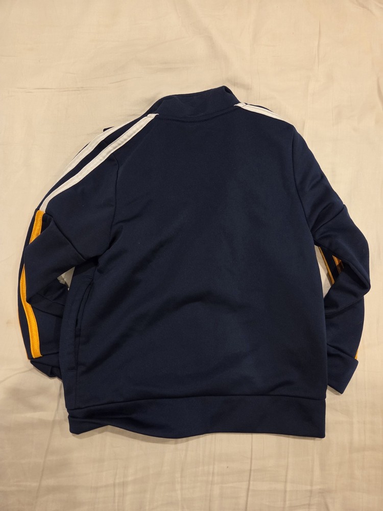 This authentic Adidas 2-piece tracksuit includes a full-zip track jacket and matching elastic-waist joggers in a striking navy and yellow colorway. Made from durable, classic tricot fabric with the iconic three-stripe branding, this set offers a comfortable, athletic fit for active toddlers. In New Without Tags (NWOT) condition, it shows no signs of wear and is perfect for sports, daycare, or casual daily wear.