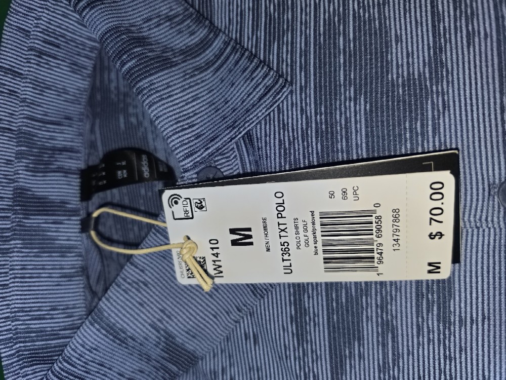 $ 20.07Adidas Golf Mens XL Teal Blue White Striped Short Sleeve Golf Polo Shirt
