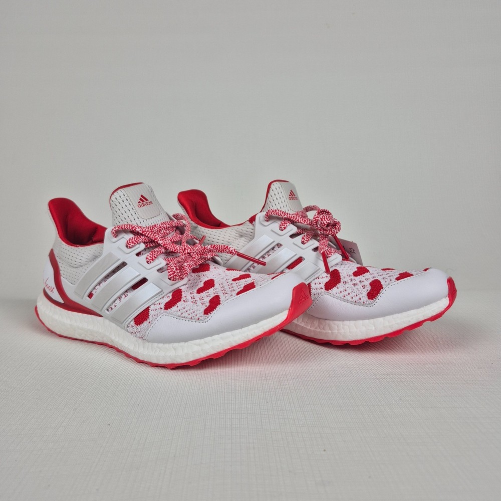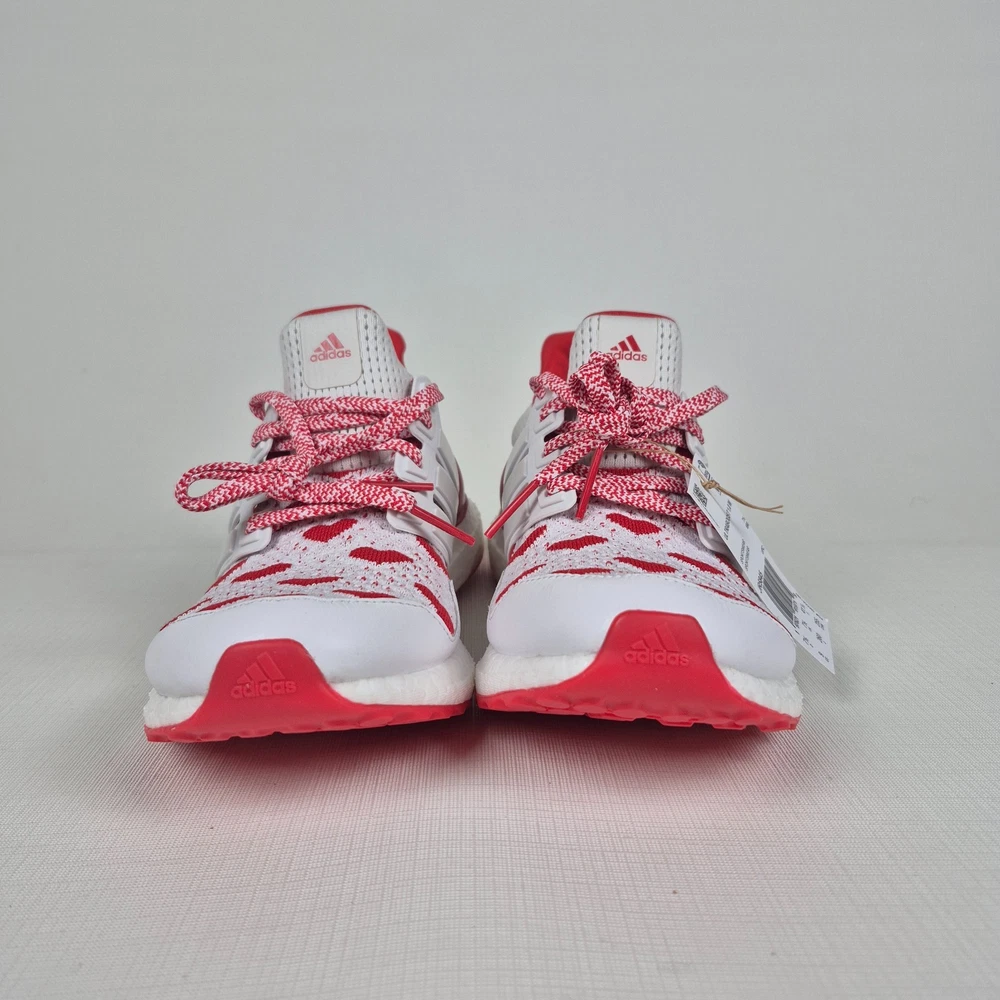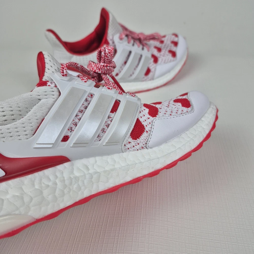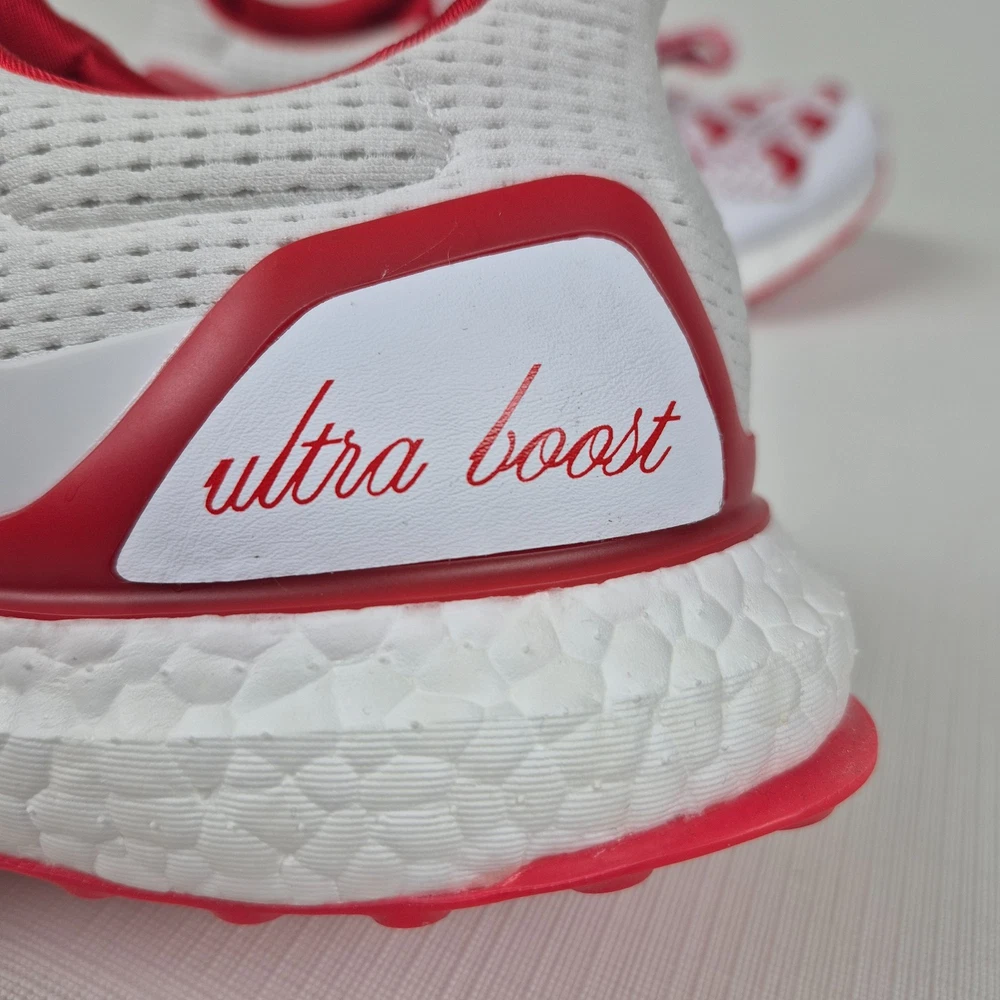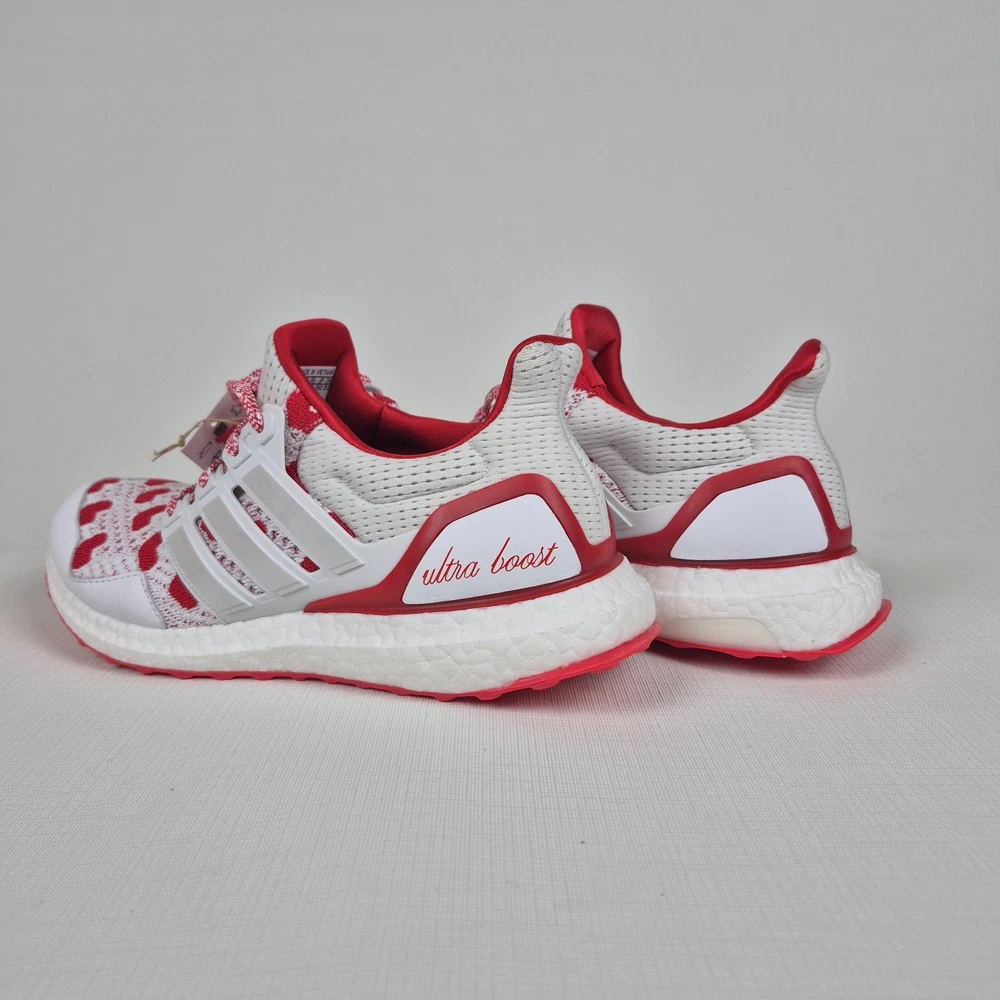 The Adidas Ultraboost 1.0 Valentine’s Day Hearts Prime-knit Women's Size 9 JR5845 is a stylish and comfortable sneaker designed for women. Featuring a lace-up closure and a low-top shoe shaft style, these sneakers are ideal for activewear and casual occasions. The white and red color scheme with heart accents adds a touch of love and Valentine's theme to the design. Made with lightweight and cushioned features, these sneakers provide comfort for walking, cross-training, and running activities. Crafted with Primeknit+ upper material and a foam insole, the Adidas Ultraboost 1.0 is a fashionable and functional choice for women looking for a versatile and trendy shoe.