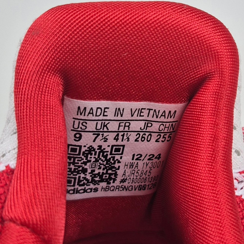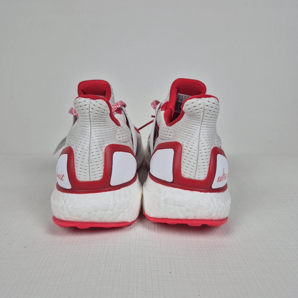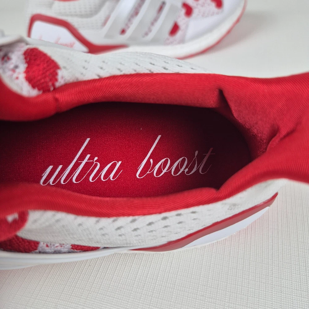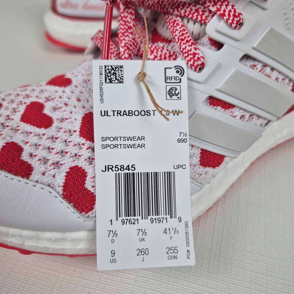 The Adidas Ultraboost 1.0 Valentine’s Day Hearts Prime-knit Women's Size 9 JR5845 is a stylish and comfortable sneaker designed for women. Featuring a lace-up closure and a low-top shoe shaft style, these sneakers are ideal for activewear and casual occasions. The white and red color scheme with heart accents adds a touch of love and Valentine's theme to the design. Made with lightweight and cushioned features, these sneakers provide comfort for walking, cross-training, and running activities. Crafted with Primeknit+ upper material and a foam insole, the Adidas Ultraboost 1.0 is a fashionable and functional choice for women looking for a versatile and trendy shoe.