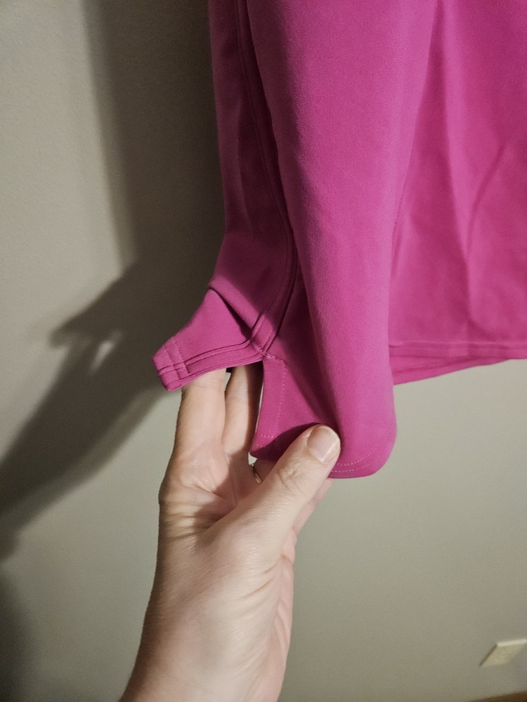 Blair L V-Neck Polo Pullover Top in Magenta Pink Polyester with 3/4 Sleeves