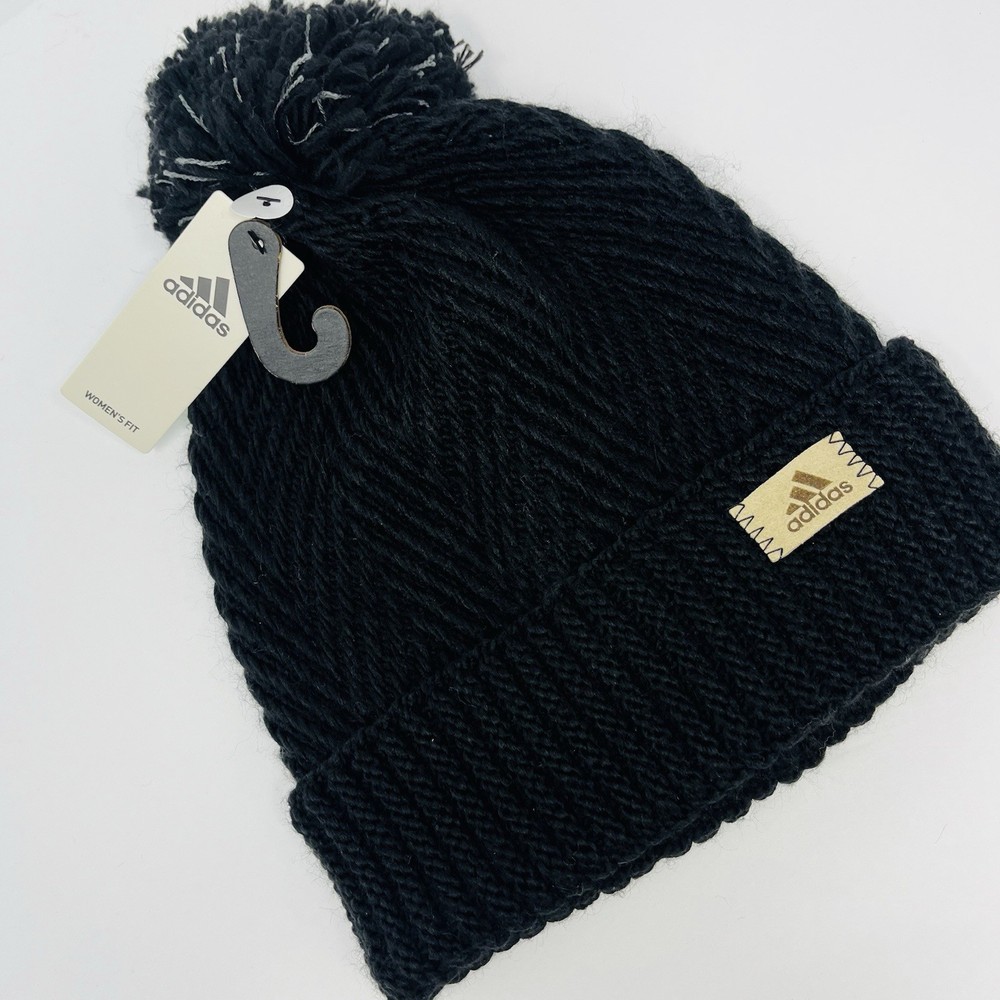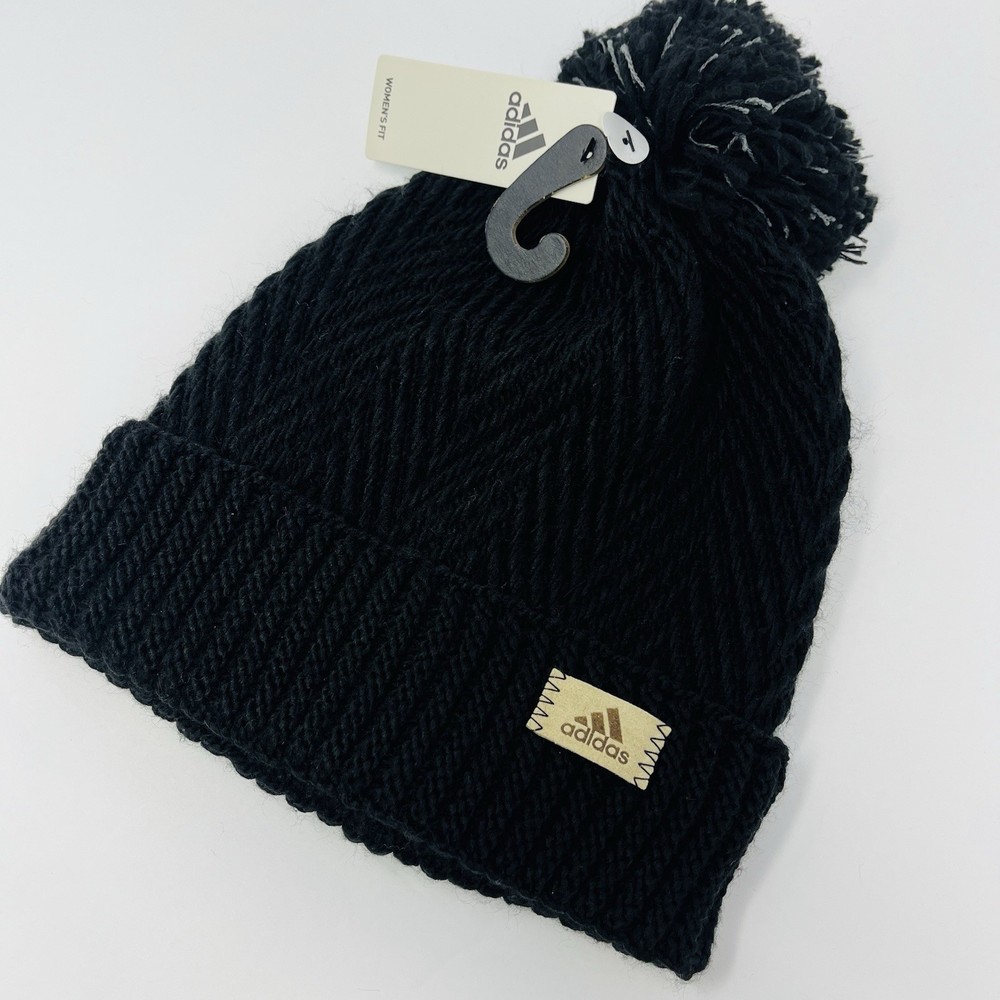 HomeAdidas Womens Cuffed Beanie Winter Hat Cap Toboggan Knit Black Twilight NEW