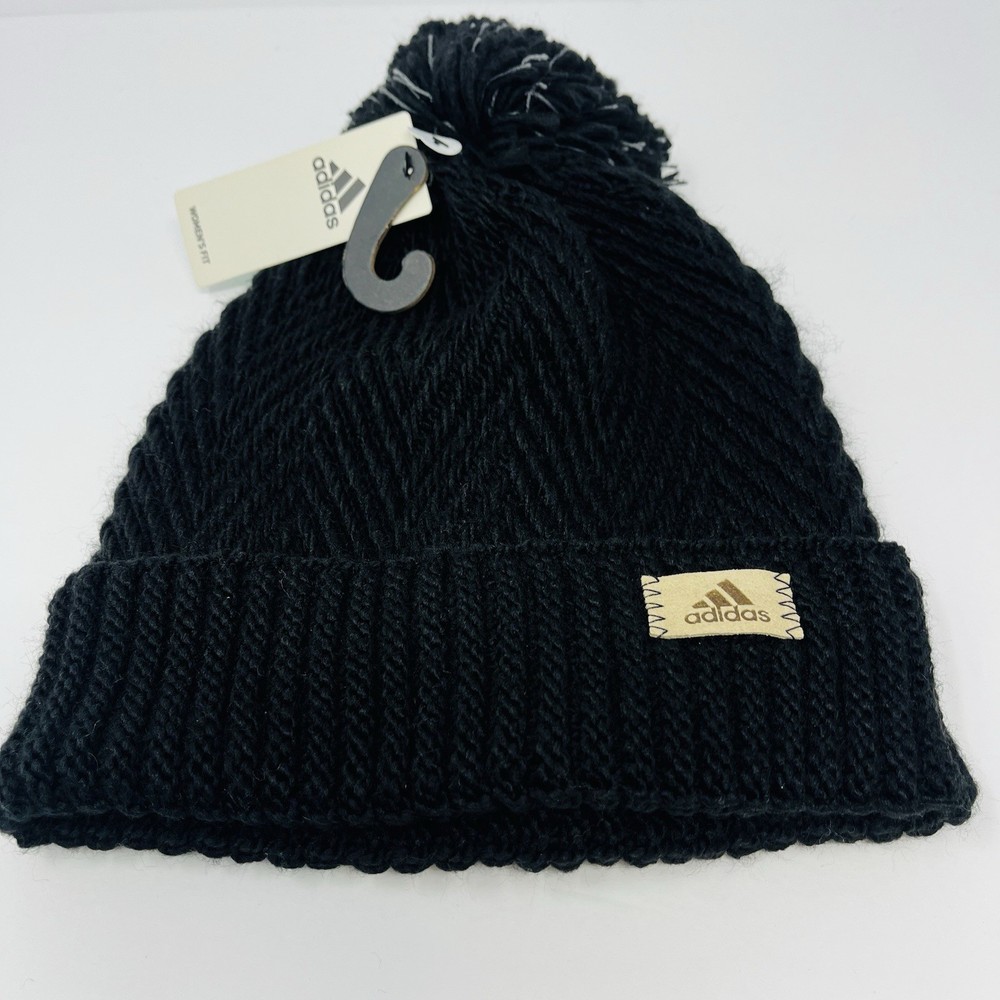 Adidas Womens Cuffed Beanie Winter Hat Cap Toboggan Knit Black Twilight NEW