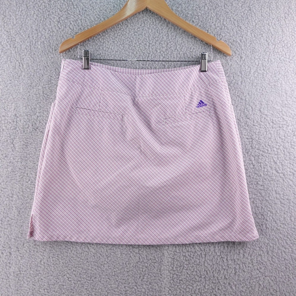 Step onto the course or court with confidence in this stylish Adidas women's skort. Its playful pink plaid pattern adds a touch of charm to your activewear, while the comfortable design ensures you can move with ease. The subtle Adidas logo adds a touch of athletic flair, making this skort perfect for a game of golf, a tennis match, or even a casual day out. Embrace effortless style and performance wherever your day takes you. Style: Athletic Type: Skirt Department: Women Performance/Activity: Golf Material: Polyester Blend Closure: Pull On Occasion: Activewear, Casual Keywords: Adidas skirt, women's golf skirt, tennis skort, athletic skirt, plaid skirt, pink skirt, size 8 skirt, sportswear, activewear, womens golf, tennis apparel, casual skirt, summer skirt, outdoor apparel