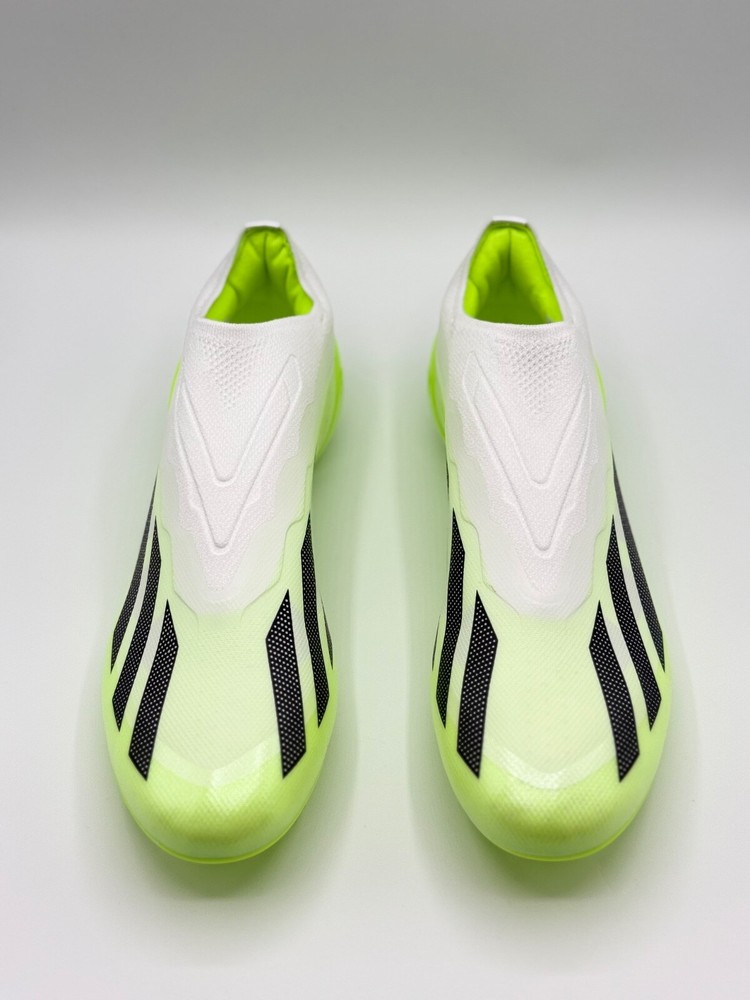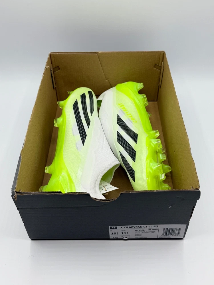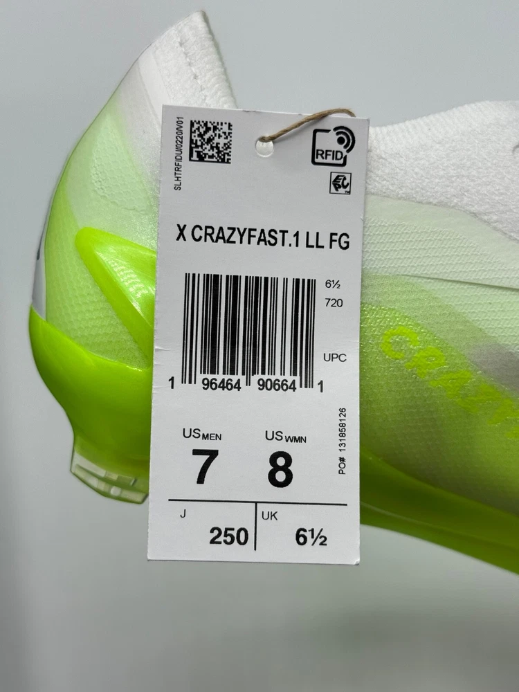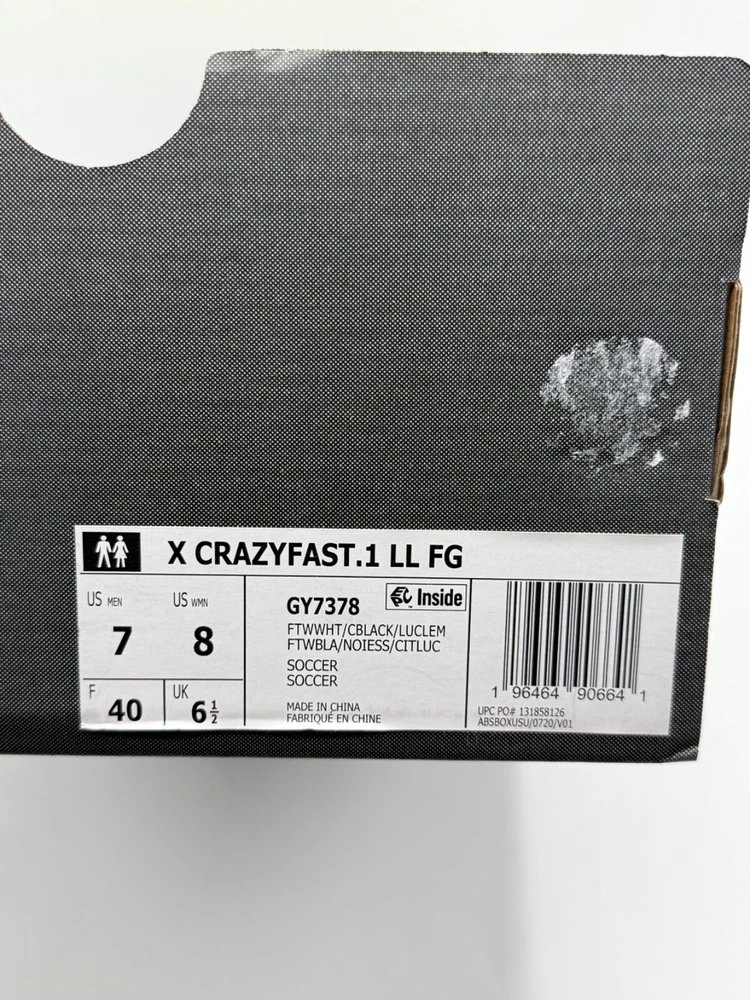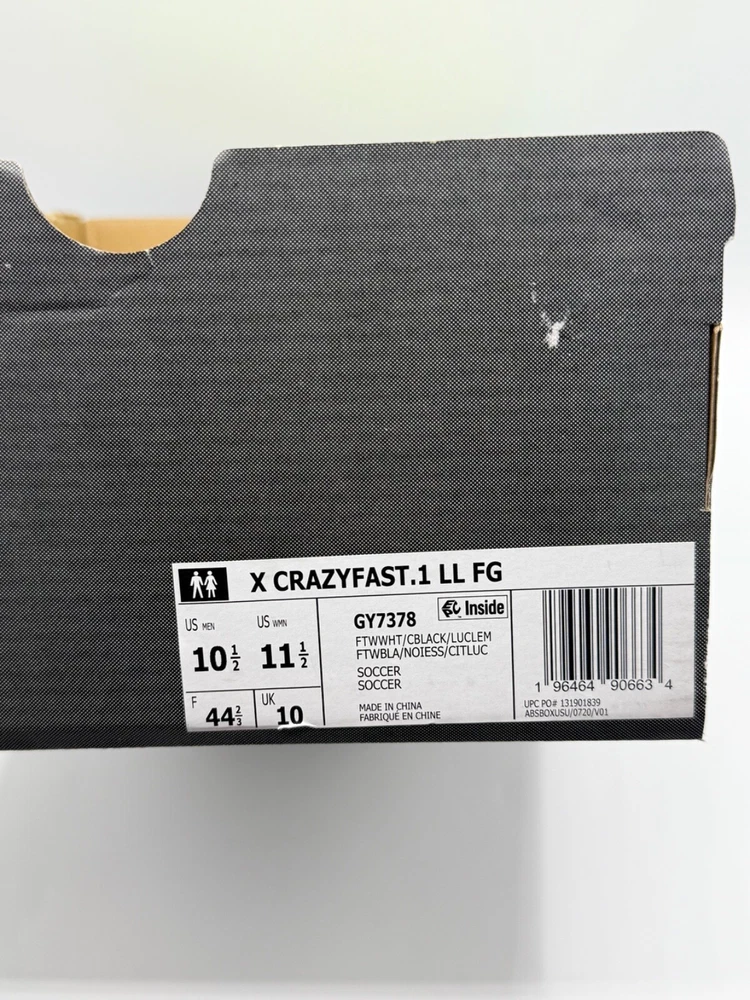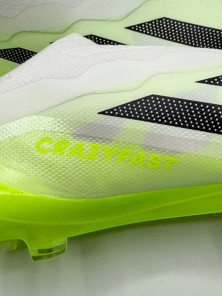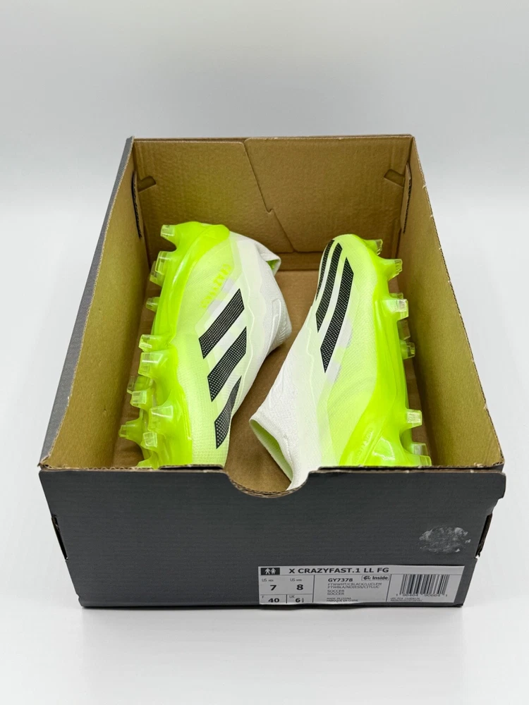 Half Lid Box Box Lid Is Cut Off GY7378 Men’s Size 7 = Women’s Size 8 Men’s Size 8 = Women’s Size 9 The Adidas X Crazyfast.1 Laceless FG Men Sizes 7-11 Soccer Cleats Crazyrush Pack is a limited edition slip-on sneaker designed for athletic activities like soccer and running. Made with lightweight synthetic material and featuring a breathable design, these cleats are ideal for both winter and summer seasons. The shoe has a solid white color with a low top style, making it both stylish and comfortable for various occasions. With a focus on performance, these cleats are designed to provide a snug fit and excellent traction on the field or court. Perfect for men looking for quality athletic footwear.
