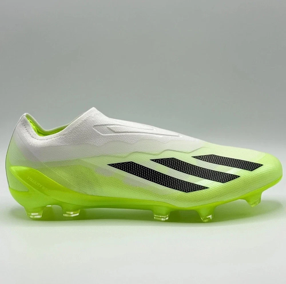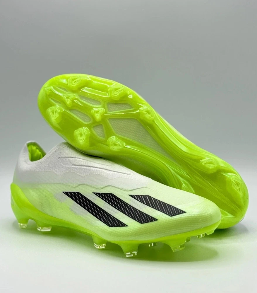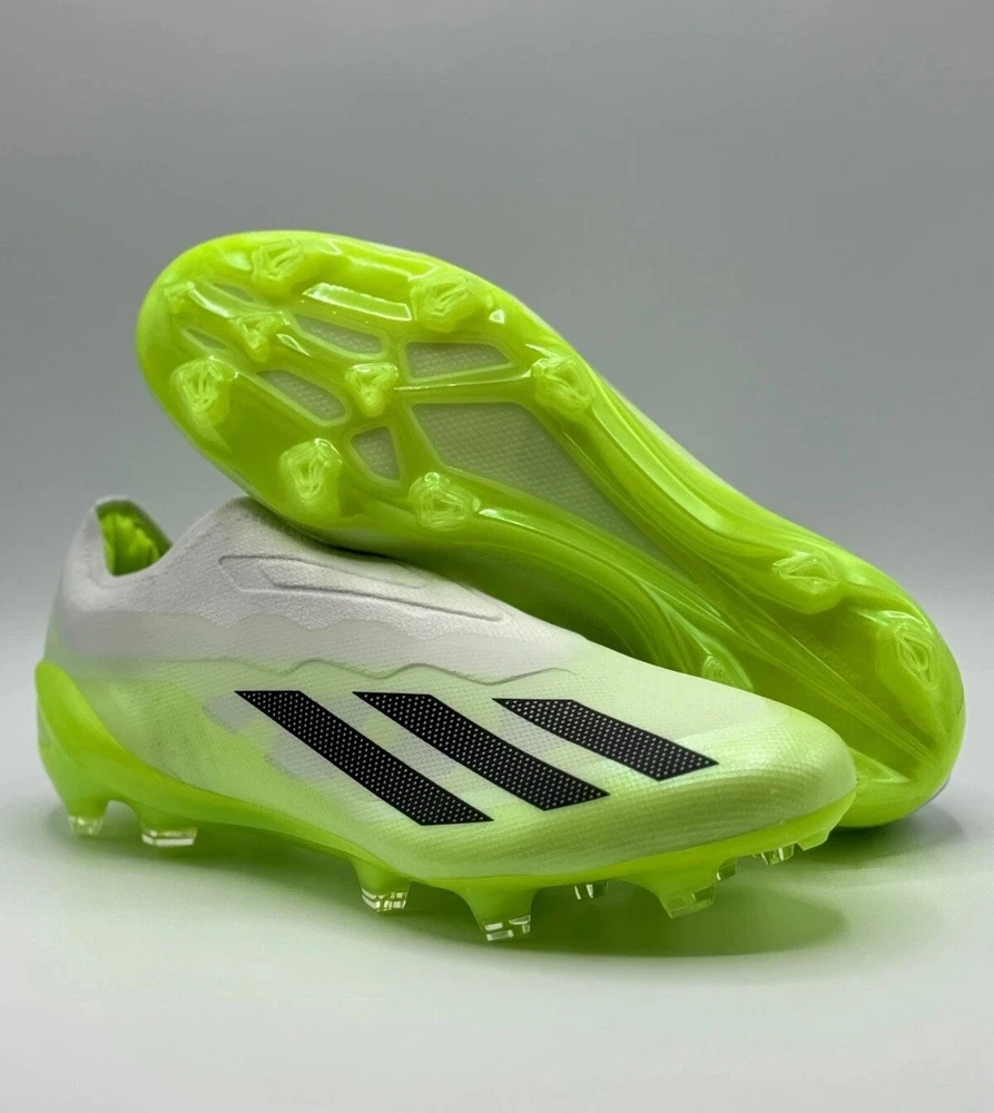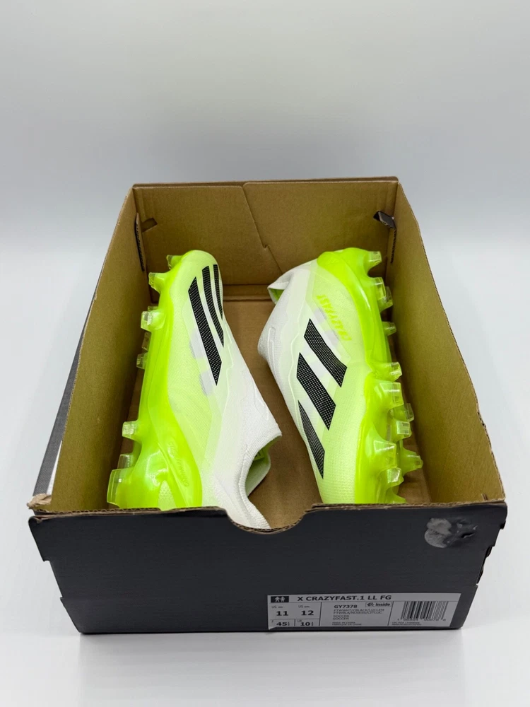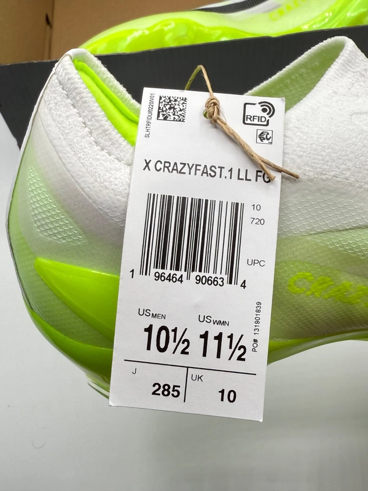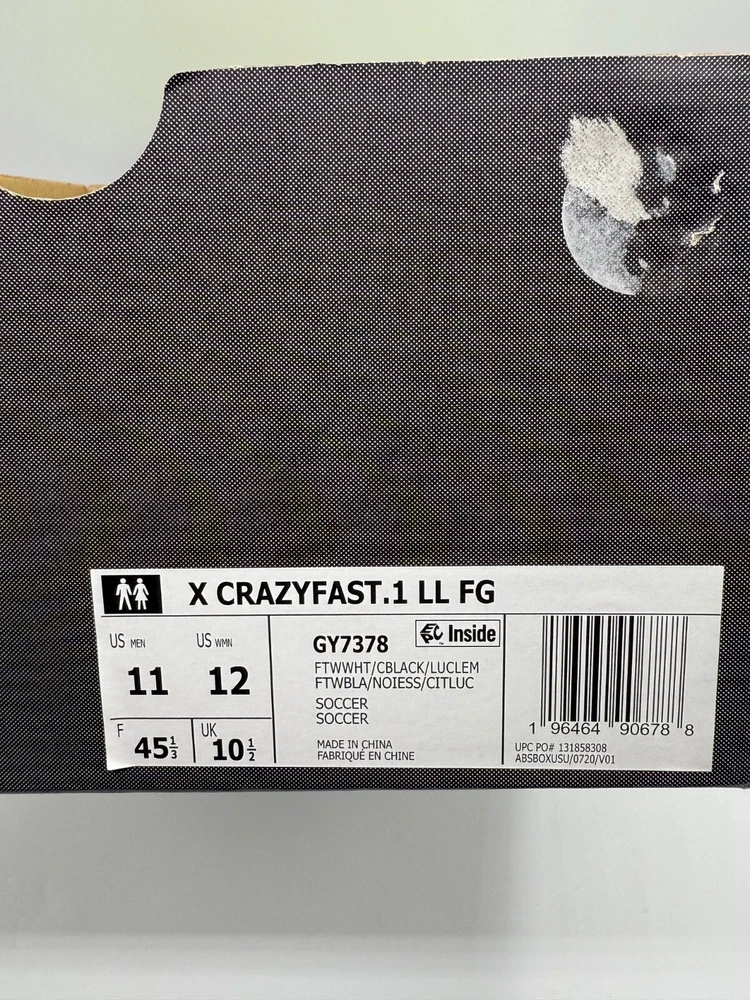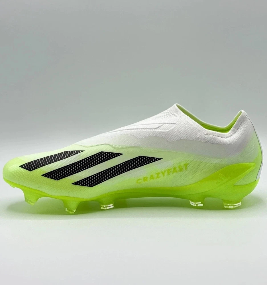 Half Lid Box Box Lid Is Cut Off GY7378 Men’s Size 7 = Women’s Size 8 Men’s Size 8 = Women’s Size 9 The Adidas X Crazyfast.1 Laceless FG Men Sizes 7-11 Soccer Cleats Crazyrush Pack is a limited edition slip-on sneaker designed for athletic activities like soccer and running. Made with lightweight synthetic material and featuring a breathable design, these cleats are ideal for both winter and summer seasons. The shoe has a solid white color with a low top style, making it both stylish and comfortable for various occasions. With a focus on performance, these cleats are designed to provide a snug fit and excellent traction on the field or court. Perfect for men looking for quality athletic footwear.