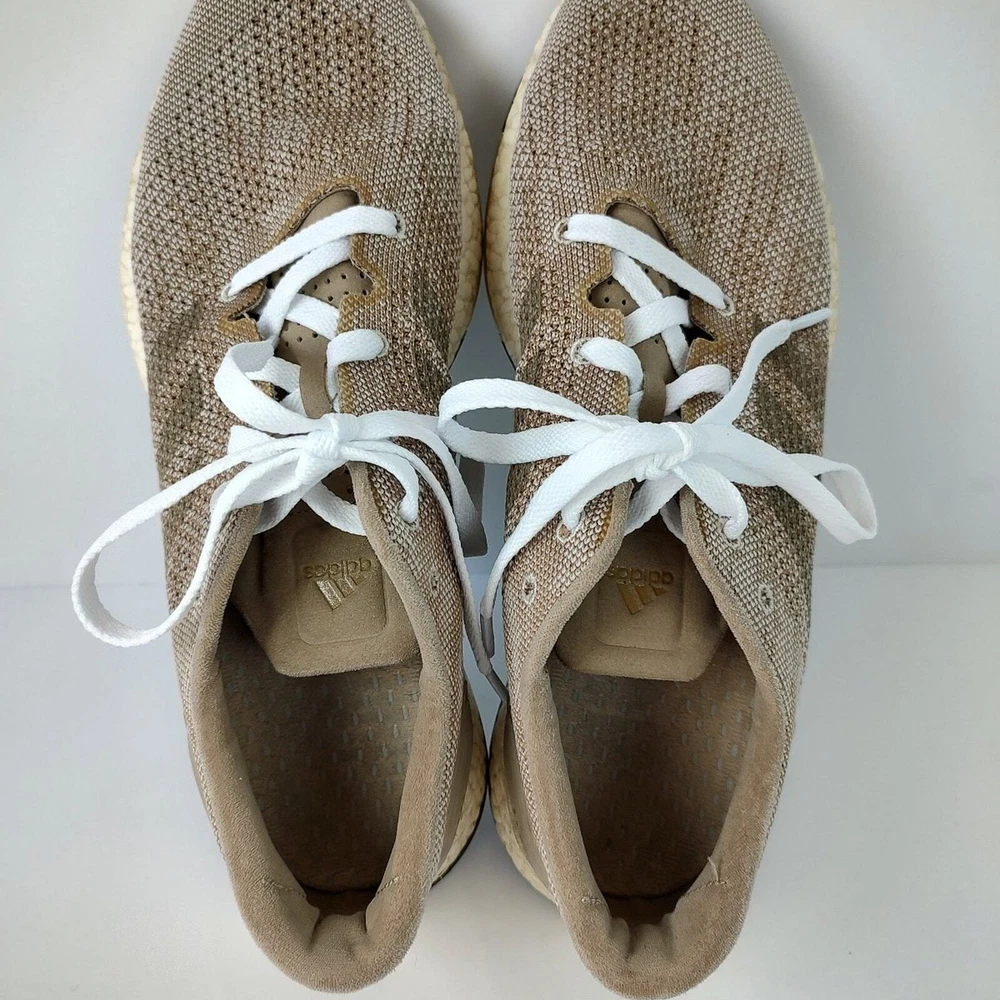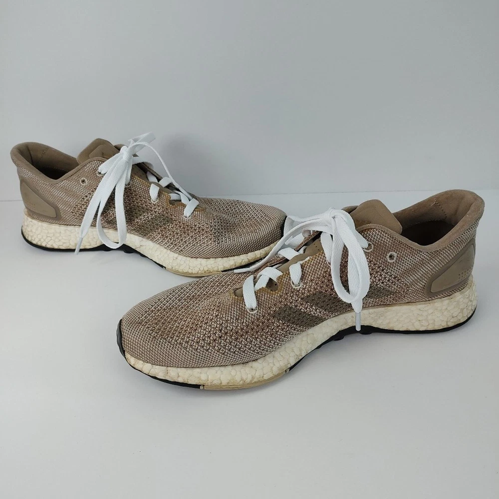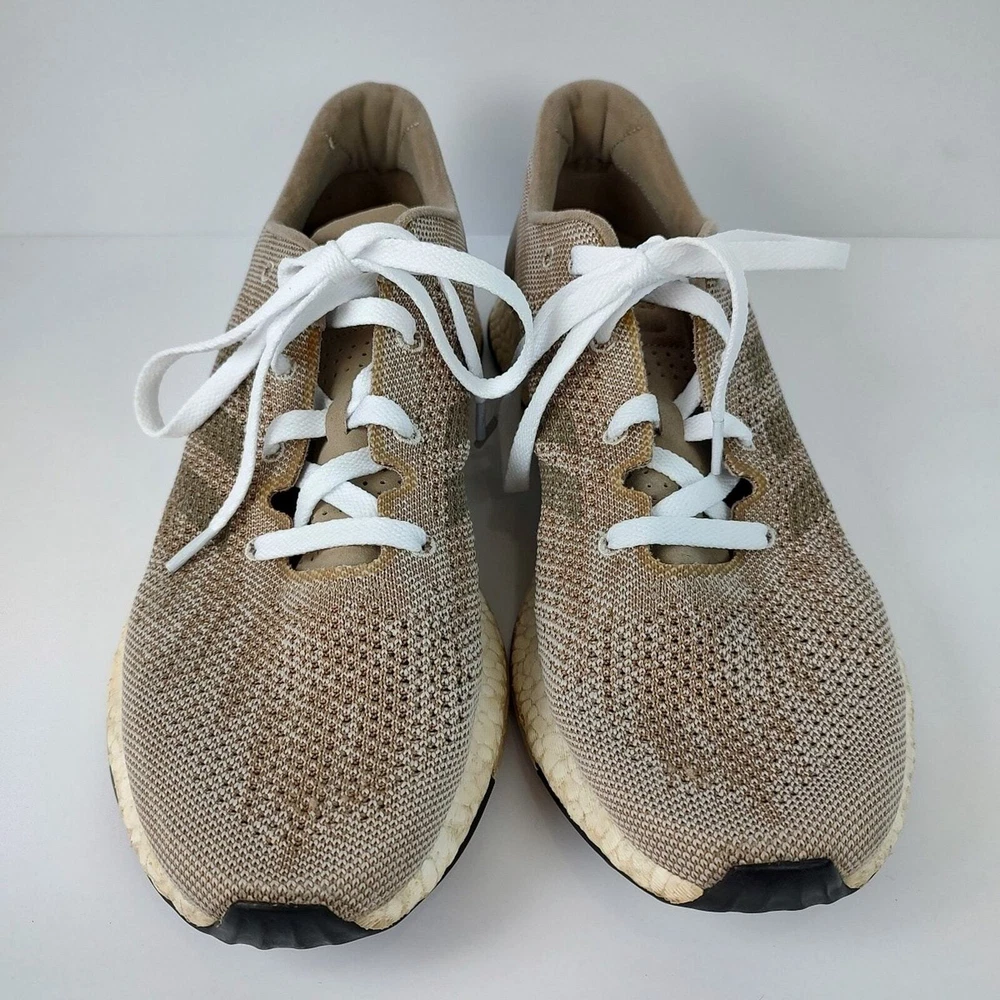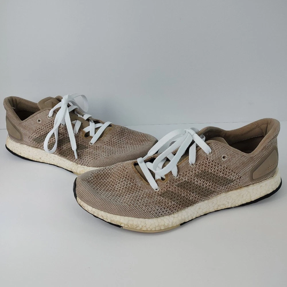 Adidas Pureboost DPR "Trace Khaki" - beige/tan colored Adidas running shoes, mens size 11.5. They're in great condition, no holes or stains. They come with brand new laces. has been washed thoroughly before listing refer to pics before purchase as all defects are shown