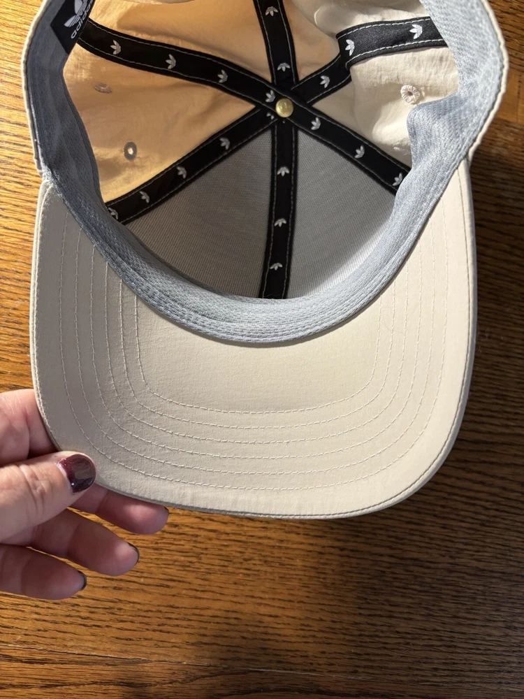 Features: Adjustable Vintage: No Color: Beige Handmade: No Style: Baseball Cap Signed: No Brand: adidas Department: Men Seller Notes: “excellent condition, worn once, no stains or condition issues” Material: Nylon Country/Region of Manufacture: Vietnam Personalize: No Pattern: Solid Fabric Type: Microfiber Size: One Size