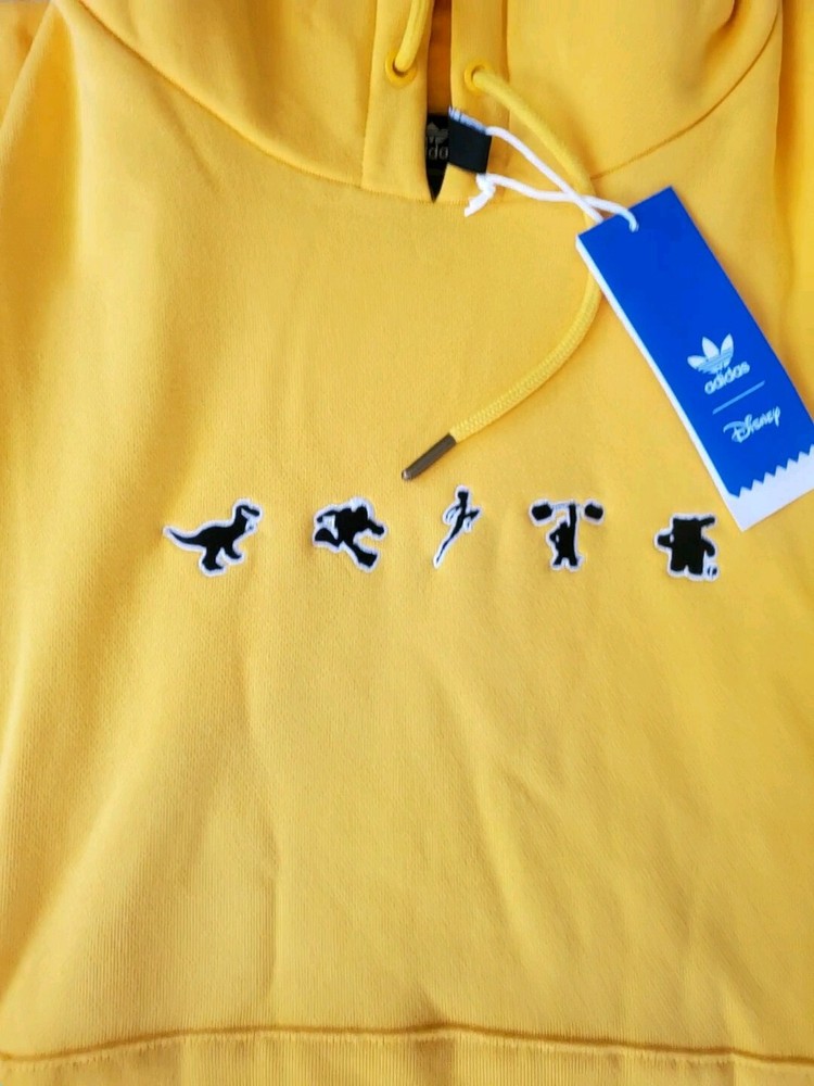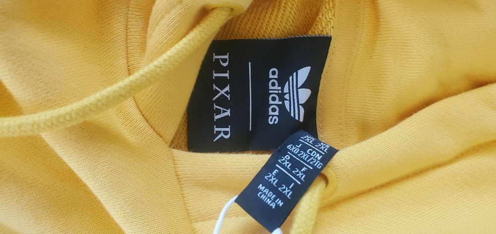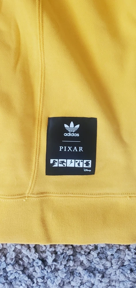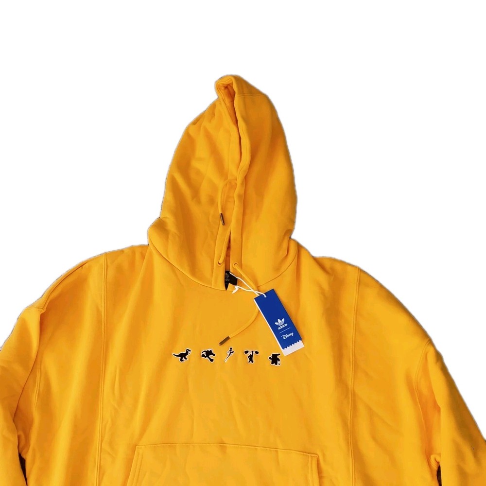 Adidas has teamed up with Disney Pixar to create a unique hoodie sweatshirt that features amazing graphics that any Disney fan would love. This yellow gold hoodie has been crafted with 100% cotton French terry fabric which makes it comfortable to wear during any performance or activity. It has a drawcord adjustable hood and embroidered accents that add to its style and design. The hoodie has been made in Japan and is available in size 2XL. It has a solid pattern and a crew neck. The Adidas x Disney Pixar Manga SW Cotton Hoodie Sweatshirt is a must-have for any Disney lover who wants to add style and comfort to their wardrobe.
