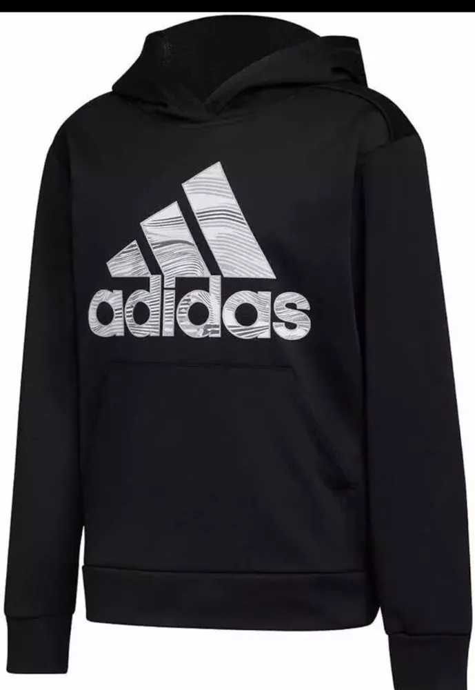 Brand: adidas Fit: Regular Pattern: Solid Accents: Logo Features: Hooded Country/Region of Manufacture: China Character: Boy Garment Care: Machine Washable Performance/Activity: School Personalize: No Sleeve Length: Long Sleeve Department: Boys Type: Hoodie Fabric Type: Fleece Size: L Color: Black Vintage: No Style: Pullover Closure: Pullover