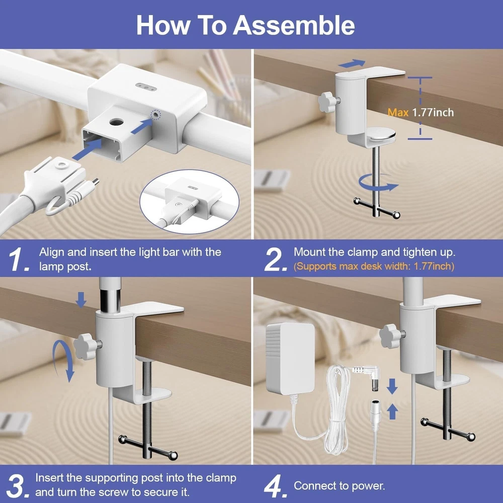 Adjustable 24W LED Desk Lamp with Touch Control - Perfect for Large Work Areas ‹ › ‹ › ‹ › ‹ › ‹ › ‹ › ‹ › ‹ › ‹ › ‹ › Adjustable 24W LED Desk Lamp with Touch Control Perfect for Large Work Areas! Super Wide and Brightness The double head LED light bar spans an impressive 31.5 inches, providing an equivalent light output of a 100W incandescent bulb. Ideal for illuminating your entire desk workbench evenly, making it a perfect addition to multi-monitor workstations, large home offices, drawing, sewing, crafting, painting, and reading. A robust 1000lm energy-saving output, featuring adjustable brightness levels and various color temperatures to suit your tasks. Multiple Lighting Choices Features 4 dimmable brightness levels and 4 color temperature modes (3000K-6500K, RA>90). Intuitive touch-sensitive buttons provide easy adjustments for both brightness and temperature. Memory function recalls your last setting, delivering a more personalized lighting experience every time. Exclusive Friendly Eye-Care Feature Integrated 24W high-quality LED minimizes eye strain, designed to provide fully diffused and flicker-free illumination. Offers a comfortable light source (RA>90) that can effectively alleviate eye fatigue, allowing you to enjoy your activities longer without discomfort. Sleek and Flexible Design Constructed from high-quality materials with a silicone-coated flexible stand, ensuring both style and functionality. Sturdy universal neck allows for optimal height and angle adjustments for personalized illumination. Please note: Clamp table edge thickness should be within 1.96 inches. What's in the Box? 1 x 24 Watts Double Head Desk Lamp with Clamp (premium aluminum alloy and silicone neck finish) 1 x UL Power Adapter 1 x User Manual Why Choose Our Adjustable LED Desk Lamp? Transform your work environment with our Adjustable 24W LED Desk Lamp, offering not only style but unmatched functionality. With its wide head design and exceptional brightness, you can say goodbye to dark corners and invest in your productivity. Coupled with eye-care technology, this lamp caters to every creative endeavor or professional task. Plus, our commitment to satisfaction comes with a 1-Year Warranty and 24/7 customer service. Illuminate your workspace beautifully—choose elegance, choose efficacy, choose our LED Desk Lamp today! Shipping Free & Fast Shipping - We offer free shipping to most of the USA with a normal delivery time of 3-7 days. However, due to the current situation, additional delivery time (up to 3 weeks) may be required for some items. Alternative Carriers - We may use alternative carriers (e.g. USPS, FedEx, UPS, etc.) to ensure your package arrives safely and on time. Due to the use of multiple carriers, we are unable to provide a tracking number automatically. Handling Time - Orders are processed and shipped within 1-2 business days of receiving cleared payment. Shipping Restrictions - Shipping to Alaska, Hawaii, Puerto Rico, Guam, and other US territories may incur shipping charges or delivery restrictions. Please contact us before ordering, or your order can be refunded/cancelled. State Restrictions - There may be restrictions based on your state of purchase. For example, certain items may not be shipped to California due to state regulations. Contact for Tracking Updates - If you require tracking updates or have any concerns about the delivery of your order, please feel free to contact us, and we will be happy to assist you. Return Please see our eBay Return Policy. Thank you. Payment We accept all major credit cards, PayPal, and Apple Pay for your convenience. Your payment information is secure and encrypted to ensure a safe and seamless transaction. Please complete your payment within 3 days of purchase to avoid any delays in shipping. Feedback Your feedback is extremely important to us. We strive to provide the best products and customer service possible. If you are satisfied with your purchase, please take a moment to leave us a positive review. If you have any concerns or issues with your order, please contact us before leaving negative feedback. We are committed to resolving any problems and ensuring your satisfaction. Contact Us If you have any questions or concerns, please feel free to reach out to our customer support team. You can contact us through the eBay messaging system. We are available Monday to Friday, 9:00 am to 5:00 pm EST, and we will do our best to respond to your inquiry within 24 hours. Thank you for supporting our small family business! UPC: Not Set Power Consumption: 24W Bulb Shape Code: Bulb Lumens: 1000lm Item Height: Not Set Item Length: Not Set Item Weight: 1.59 kilograms Item Width: Not Set Product Line: Not Set Unit Quantity: 1 Material: Aluminum,silicone,metal,rubber Room: Office Theme: Not Set Features: Flexible Arm,Touch,Dimmable,Adjustable Brightness,Multiple Color Temperatures,Memory Function Department: Unisex Baby & Toddler,Kids,Teens,Adults Control Style: App Control,Pull Chain,Remote Control,Voice,Wall Switch,Touch Character: Not Set Labels & Certifications: Not Set Light Color: White Brand: Unbranded Type: Desk Lamp Style: Minimalist Sensor Type: None Color: White Finish: Painted Lighting Technology: LED Number of Settings: 4 Power Source: Corded Shade Shape: Bulb Character Family: Not Set Pattern: Not Set Energy Star: Not Set MPN: Not Set EC Range: Not Set Manufacturer: Not Set Year Manufactured: Not Set Item Diameter: Less Than 5 in Country/Region of Manufacture: Not Set Voltage: 12 volts (ac) Amperage: Not Set Output Voltage: Not Set IP Rating: Not Set Bulb Life Hours: Not Rated Color Temperature: 3000K-6500K Manufacturer Warranty: Not Set Model: Not Set Unit Type: Unit Personalize: Not Set