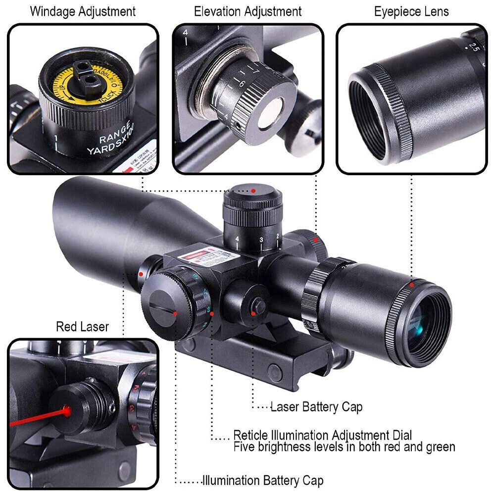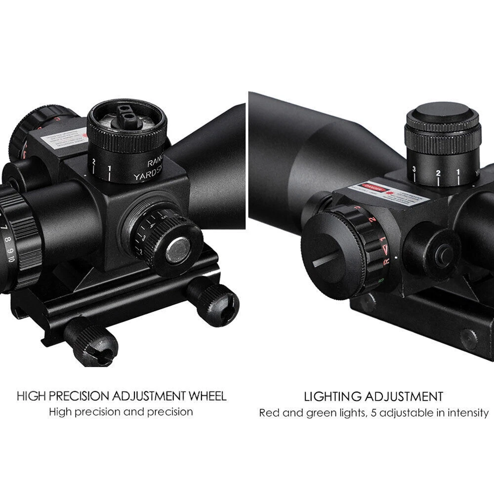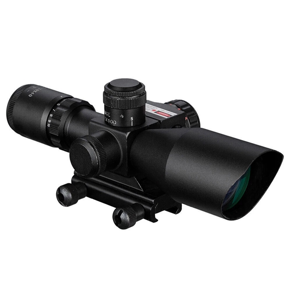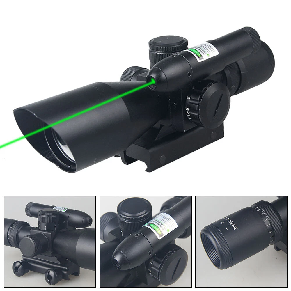 Adjustable 2.5-10x40 Compact Rifle Scope Illuminated Mil-Dot Green Laser & Mount
