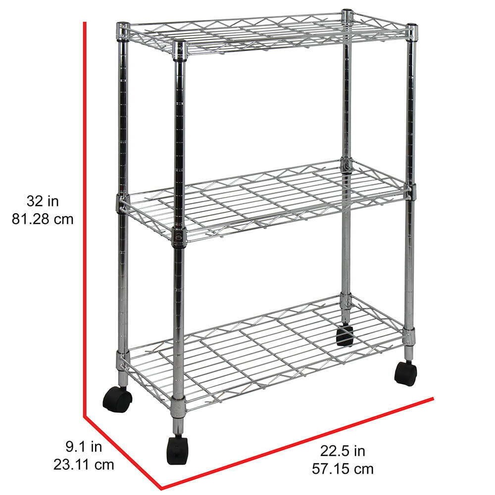 You may also like Adjustable 5-Tier Garage Storage Steel Shelving Unit Heavy-Duty Tool Organizer 79.62 USD 83.81 USD Free shipping 5% off Wooden Laundry Hamper W/ Interior Bag Handles Rubber Bumpers Storage Solution US 110.44 USD Free shipping 48 Inch Heavy Duty 3 Tier Steel Storage Shelving Unit Adjustable Organizer New 175.82 USD Free shipping 4 Tier Plastic Garage Shelving Unit Heavy Duty Storage 400 lbs Capacity New 49.98 USD Free shipping Plastic Storage Shelves 48x21x14 200lb Capacity Home Garage Camping Hunting New 53.02 USD 55.81 USD Free shipping 5% off Plastic Shelving Unit Sturdy Garage Basement Adult Black Closet Durable 5-Tier 49.6 USD Free shipping 72" 5 Shelf Adjustable Steel Boltless Garage Shelf Unit Storage Racks Shelving 124.99 USD Free shipping Garage Storage System Shelf Kit 3 Heavy Duty Wire Shelves Easy Installation New 84.15 USD Free shipping Durable 4 Shelf Plastic Storage Unit Closet Garage Home Organizing Solution New 53.02 USD 55.81 USD Free shipping 5% off Adjustable 5-Shelf Steel Shelving Unit Heavy-Duty Storage Organizer Indoor New 133.06 USD Free shipping Versatile Plastic Garage Shelves Storage Shelving Heavy-duty Durable New 5 Shelf 65.95 USD Free shipping Garage Wall Shelf Heavy Duty W/ Wire Baskets Tool Organizer Hooks & Rack Metal 73.61 USD 77.48 USD Free shipping 5% off Features: 150 lbs. load capacity per shelf with total load capacity of 300 lbs. 3 shelves with raised borders to prevent objects from falling or rolling off Height adjustable shelves for versatility and to accommodate storage needs Perfect for home, laundry room, kitchen, garage, warehouse, office, restaurant, etc No tools needed for assembly Color - Chrome 150 lbs. load capacity per shelf, Assembled Dimensions: 22.5 in L x 9.1 in W x 32 in H,4 casters for easy mobility,3 shelves with raised borders to prevent objects from falling or rolling off,Height adjustable shelves for versatility and to accommodate storage needs,Made with chrome plated steel for durability 150 lbs. load capacity per shelf with total load capacity of 300 lbs.|3 shelves with raised borders to prevent objects from falling or rolling off|Height adjustable shelves for versatility and to accommodate storage needs|Perfect for home, laundry room, kitchen, garage, warehouse, office, restaurant, etc|No tools needed for assembly You may also like Egyptian Cotton Twin Duvet Cover Set 400 Thread Count Solid Teal Modern Shams US 59.3 USD 62.42 USD Free shipping 5% off Framed Decorative Rectangle Wall Mirror Beveled Glass Large Accent Home Decor US 122.49 USD 128.94 USD Free shipping 5% off Large Breed Dog Food Weight Control Dry Chicken Formula Healthy Weight 34lbs New 93.03 USD 97.93 USD Free shipping 5% off Heavy Duty 12 Outlet Power Strip 6FT Mountable Surge Protector ETL Certified New 95.0 USD 100.0 USD Free shipping 5% off Adjustable Easy Step Walk Thru Baby Gate Metal Safety Child Barrier Pets New 49.0 USD 51.58 USD Free shipping 5% off Soft Microfiber Bed Sheet Set 4 Piece Hypoallergenic Fitted Flat Pillowcases New 24.99 USD 26.3 USD Free shipping 5% off 100% Cotton Flannel King Size 4 Piece Deep Pocket Sheet Set Soft Durable New 84.44 USD 88.88 USD Free shipping 5% off Sturdy Durable 4 Quart Glass Mixing Bowl Versatile Baking Prepping House Bowls 10.16 USD 10.7 USD Free shipping 5% off Round Sunburst Mirror 28in Radiant Lines Decorative Accent Easy Hang Home Decor 124.58 USD 131.14 USD Free shipping 5% off 12V Handheld Car Vacuum Cleaner Easy Emptying LED Light Wet Dry Accessories New 31.71 USD 33.38 USD Free shipping 5% off Durable Tuff Spinning Reel Freshwater Fishing Reel 60 Size 5 Stainless Bearings 67.81 USD 71.38 USD Free shipping 5% off 15in Floral Arrangement in Green Glass Vase Artificial Fall Tabletop Decor New 13.13 USD 13.82 USD Free shipping 5% off