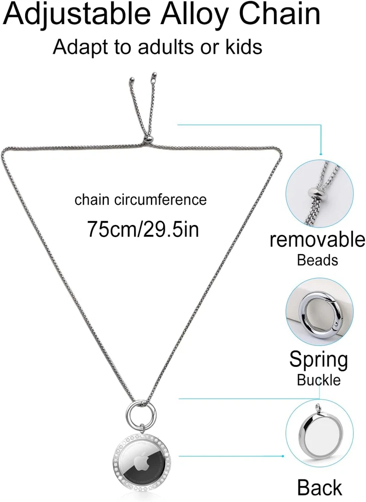 Store New Arrivals Add to Favorite View Feedback Contact Adjustable Alloy Chain Necklace for Airtag to Track Kids,Pets,Elders-75cm/29.5" Description Item Dimensions 1.97 x 1.57 x 0.39 inches Shell Type Hard Compatible Devices Smartphone Item Weight 20 Grams Color Sliver Airtag Necklace Additional Features GPS Form Factor Case Enclosure Material Titanium Alloy Compatible Phone Models airtag Product Description 【Airtag necklace Compatibility】 This apple airtag necklace specially developed for Apple AirTag accessories tracker,This airtag watch necklace is 1:1 original open mold. (Note: airtags is not included.) 【Full Titanium Alloy Protection】 Airtag necklace kids with hard Titanium Alloy full body coverage shockproof protective against up to 15m high drops. Metal airtag case makes your airtag holder necklace receive full protection. This airtag necklace for kids is not afraid of children scratching around. 【Inlaid Jewelry Diamonds Shine】 Airtag watch necklace for adults is inlaid with 35 sparkling diamonds, twist lock design with magnetic force. This air tag necklace badge is super pretty and sophisticated. great airtag necklace for women kids boys adults. 【Hard & Fashion Airtag kids necklace 】 Kids Airtag necklace made of high-quality metal material, strong and not easy to deform. Wear-resistant and protects the airtags holder necklace . Airtag watch necklace for kids Emblem hollowing out Keep the signal complete.Airtag holder is high quality hidden gps tracker for kids. 【Airtag necklace Use Occasion】 This air tag necklace come with key ring, You can choose to match the necklace or use airtag keychain for keys, backpacks, suitcases,elderly, cat, dog collar etc. Airtag necklace for adults or kids Featured 75cm (29.5 in) adjustable metal necklace, you can freely adjust the length according to your needs. The airtag necklace kids design with 35 rhinestones embedded, replicating the 1:1 apple iphone tracker tags model. This Apple Airtag nacklace features a dial design, fine threads, and rotating opening and closing, making it easy to open or close tightly , ensuring a snug fit for apple airtag kids and preventing easy breakage or loss. itags apple airtag keychain can be easily attached to keys, luggage, backpacks, cat or dog collars with a spring clip. Our air tag necklace advantages The hidden tracker for kids is constructed with premium titanium alloy material, which is durable, resistant to deformation, and wear-resistant, providing all-around protection for the Apple AirTag. The air tag holder kids is incredibly thin, measuring only 0.25 inches thick and weighing just 20 grams (0.038 pounds). Apple airtag necklace for hard protection The airtag necklace for adults is made of high-quality watch metal, providing full-body coverage for shock protection up to 15 meters (15 feet) of high drops. High End Dial Design Air Tag Necklace This Airtag Necklace is meticulously polished, smooth and not easy to peel off,Adopting a more refined thread design, allowing the lid to fit better and the airtag to not come off Airtag watch necklace how to install Adjustable Alloy gps tracker necklace comes with a selected 75cm (29.5 inches) alloy chain and adjustable metal beads, allowing for freely adjustable length, suitable for both adults and children. Perfect gift This airtag for kids is designed for use with Apple AirTags. It makes a perfect gift for your spouse, parents, boys,kids, friends, etc. (Note: AirTag or gps tag is not included.) ABOUT US Explore our handpicked range of top-quality items at fantastic prices. Our goal is to make your shopping experience as smooth and enjoyable as possible. Thanks for visiting! Warm regards, The FerroWarehouse Team SHIPPING We are always working hard to ensure your package arrives as soon as possible. Please understand that some factors like weather, high postal traffic, and the performance of shipping companies are outside of our control. We offer free shipping to the lower 48 states and Canada, with orders processed within 2 business days of payment—often sooner. Please provide a physical address; we do not ship to P.O. Boxes. For shipping outside the U.S. and Canada, delivery time, cost, and processing may vary. International customers are responsible for all duties and taxes. To estimate shipping costs, please proceed to checkout. Thank you for shopping with us! RETURNS We want you to be completely satisfied with your purchase. If you need to return an item We accept returns within 30 days of receipt. Items must be unused and in original packaging. Please contact us first if you have any problems/questions/concerns to initiate a return and get instructions.. We will be happy to resolve any issues you may have in a cordial and friendly manner. We appreciate your Postive Feedback, and will do the same in return. PAYMENT We accept PayPal. CONTACT US This page content is yet to come Please ad us to your favorite seller and visit again later Thank You CUSTOMER SATISFACTION We try our very best to make sure every customer is completely satisfied. If there's a problem, message us! We're happy to help.