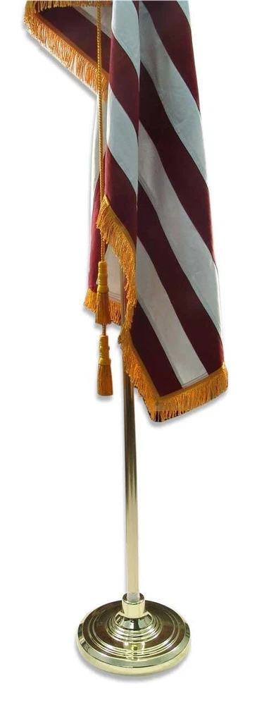 Indoor gold flag pole only. 1" diameter, telescoping 6ft to 9ft gold finish aluminum pole. flag, base, tassel and finial not included. 1-Feet Diameter Telescoping Gold Finish No Assembly Required