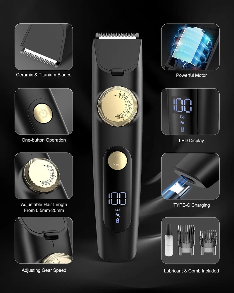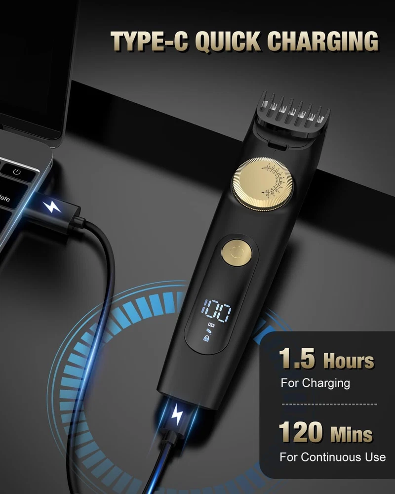Adjustable Beard Trimmer for Men Cordless Hair Mustache Trimmer with LED Display