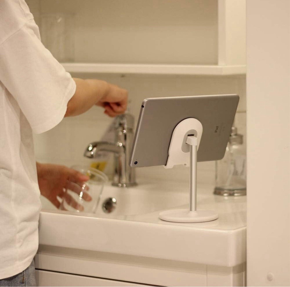 1. This stand is a game-changer! The sturdy black design holds phones and tablets up to 12.9" securely at any angle. Perfect for watching videos, video calls, or following recipes hands-free. The non-slip base keeps it stable, while the adjustable groove fits everything from iPhones to large iPads. Love how compact yet durable it is—great for desks, kitchens, or travel. No more neck strain! Works flawlessly with my Samsung Galaxy and partner's iPad. A must-have for multitaskers!