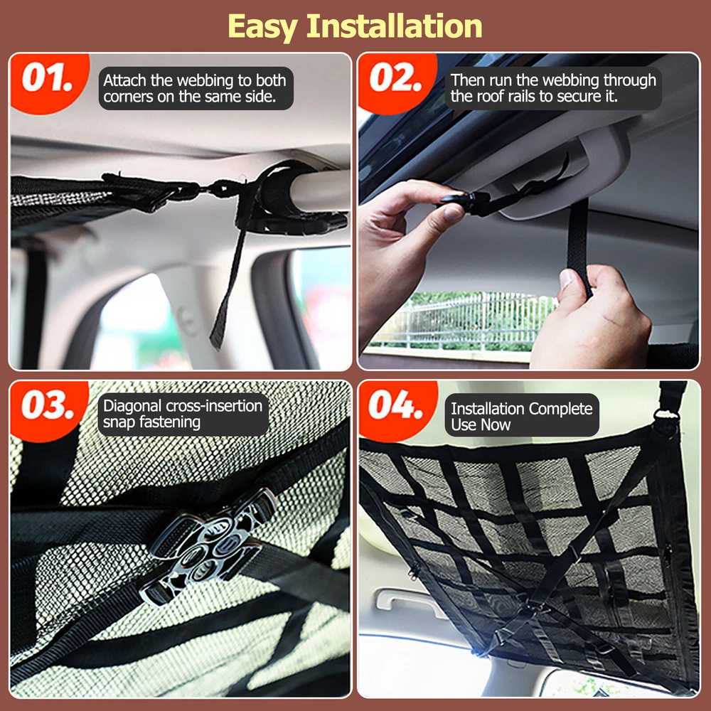 Upgrade Car Roof Cargo Net Mesh Storage Bag for SUV Truck