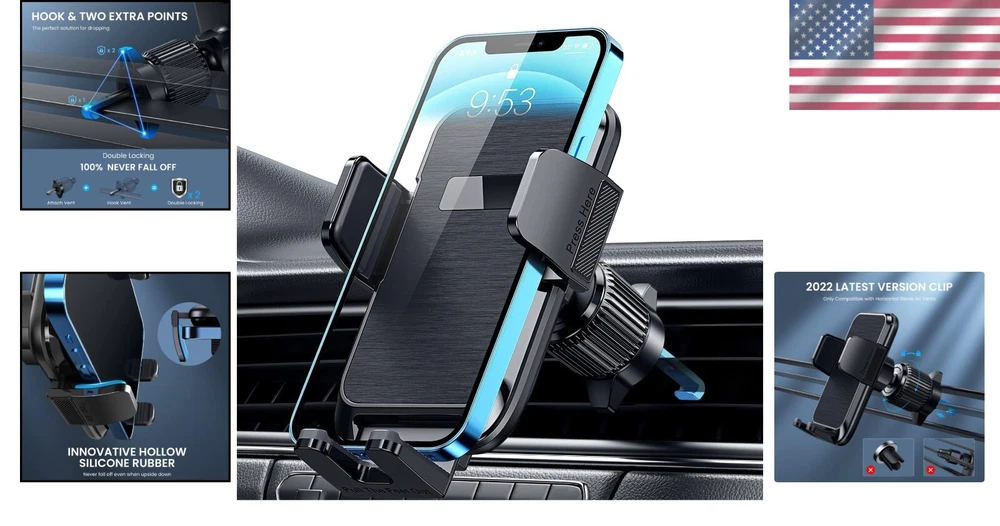 Adjustable Car Vent Phone Mount with 360° Rotation - Secure Smartphone Holder