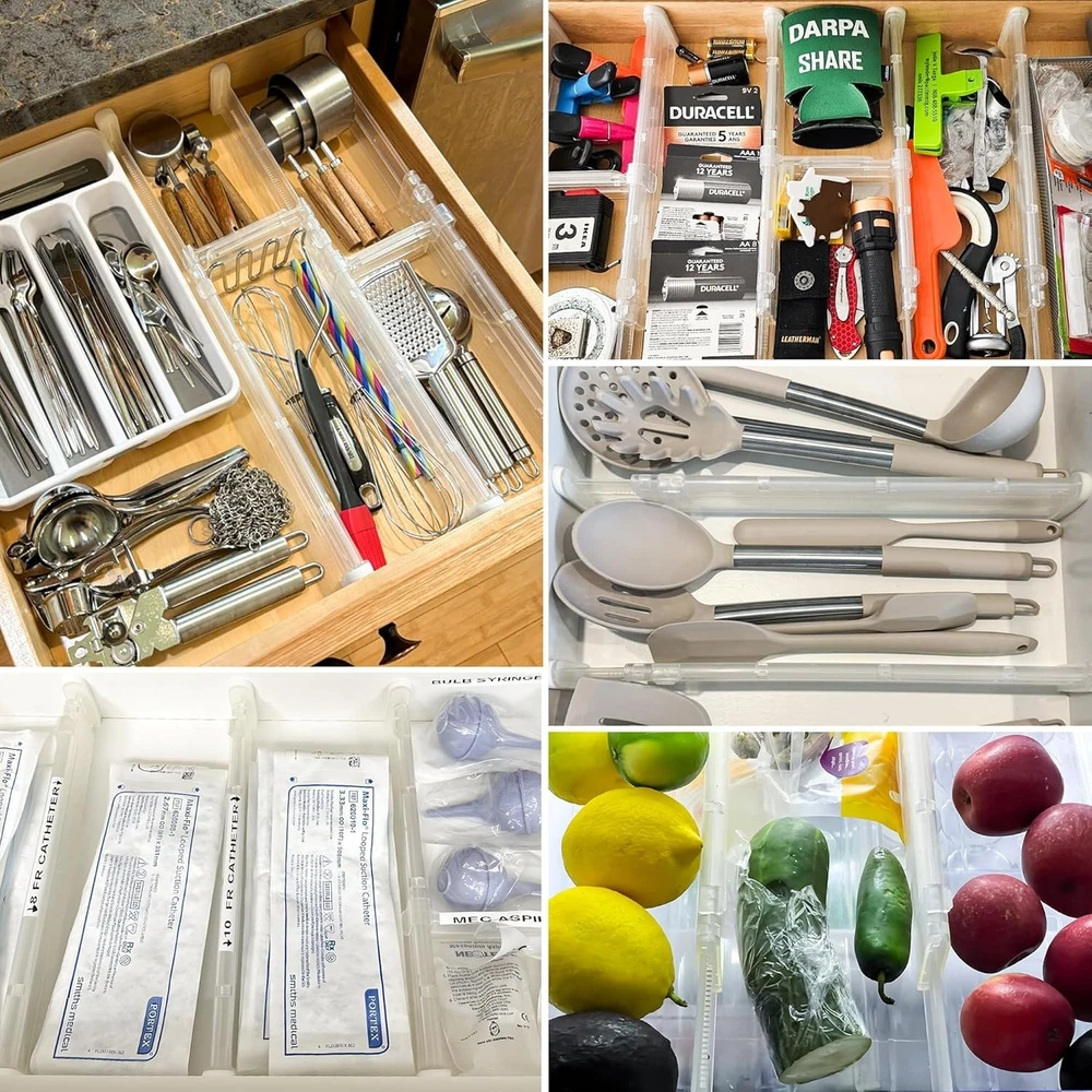 Expandable Drawer Dividers 12.6-22.8” - Clear Adjustable Organizers 3 Pack ‹ › ‹ › ‹ › ‹ › ‹ › ‹ › ‹ › ‹ › ‹ › ‹ › Expandable Drawer Dividers Size: 12.6-22.8 inches - Clear Adjustable Organizers (3 Pack) Height: 2.36 IN Perfect For Storing: Kitchen essentials Everyday items Small clothing Before Purchasing: Please check the dimensions to ensure it fits your drawer. Features: Patented Expandable Design: The innovative design allows for adjustable lengths of long dividers and short inserts to conveniently organize items of various sizes. Lasting Stability: Equipped with 0.4-inch thick foam pads on both ends to enhance grip and protect your drawers from scratches. Unique serrated design ensures long-term stability unlike traditional spring designs. Perfect Fit Size: Long dividers measure 12.6 inches in length, extending up to 22.9 inches. Adjustable inserts range from 3.5-6.3 inches and 3.9-7.1 inches for optimal fit. Durable and Multi-Function: Crafted from strong, waterproof ABS material to ensure longevity. Ideal for organizing kitchen utensils, baby clothes, socks, toys, and snacks. Lovely Colors and Versatile: Available in elegant gray and clear finishes that complement your decor, perfect for various spaces including kitchens, bedrooms, offices, and more. Benefits: Efficient organization for clutter-free spaces Customizable length for versatility Durable build for long-lasting use Stylish aesthetics that enhance your drawer's appearance Why Choose Our Expandable Drawer Dividers? Transform your drawers from chaos to calm with our Expandable Drawer Dividers. Designed for modern living, our dividers ensure a perfect fit for any drawer, keeping your essentials organized with style. Made from durable materials, these dividers not only offer functionality but also add a touch of elegance to your space. Whether you're storing kitchen supplies, clothing, or everyday items, our adjustable organizers make organization effortless and visually appealing. Discover the luxury of order – order your Expandable Drawer Dividers today! Shipping Free & Fast Shipping - We offer free shipping to most of the USA with a normal delivery time of 3-7 days. However, due to the current situation, additional delivery time (up to 3 weeks) may be required for some items. Alternative Carriers - We may use alternative carriers (e.g. USPS, FedEx, UPS, etc.) to ensure your package arrives safely and on time. Due to the use of multiple carriers, we are unable to provide a tracking number automatically. Handling Time - Orders are processed and shipped within 1-2 business days of receiving cleared payment. Shipping Restrictions - Shipping to Alaska, Hawaii, Puerto Rico, Guam, and other US territories may incur shipping charges or delivery restrictions. Please contact us before ordering, or your order can be refunded/cancelled. State Restrictions - There may be restrictions based on your state of purchase. For example, certain items may not be shipped to California due to state regulations. Contact for Tracking Updates - If you require tracking updates or have any concerns about the delivery of your order, please feel free to contact us, and we will be happy to assist you. Return 30-Day Hassle-Free Returns - We want you to be completely satisfied with your purchase. If you are not, you can return the item within 30 days of receiving it for a full refund or exchange. Easy Return Process - To start a return, simply contact us and we will provide you with a prepaid return shipping label and detailed instructions. Restocking Fee - There are no restocking fees for returns. However, the buyer is responsible for return shipping costs if the return is not due to a seller's error. Refund Processing Time - Refunds will be processed within 5 business days of receiving the returned item in its condition. Payment We accept all major credit cards, PayPal, and Apple Pay for your convenience. Your payment information is secure and encrypted to ensure a safe and seamless transaction. Please complete your payment within 3 days of purchase to avoid any delays in shipping. Feedback Your feedback is extremely important to us. We strive to provide the best products and customer service possible. If you are satisfied with your purchase, please take a moment to leave us a positive review. If you have any concerns or issues with your order, please contact us before leaving negative feedback. We are committed to resolving any problems and ensuring your satisfaction. Contact Us If you have any questions or concerns, please feel free to out to our customer support team. You can contact us through the eBay messaging system. We are available Monday to Friday, 9:00 am to 5:00 pm EST, and we will do our best to respond to your inquiry within 24 hours. Buy it now and enjoy a pleasant shopping experience! Unit Quantity: 3.0 count Material: Adjustable Drawer Dividers Mounting: Insert Mount Features: Adjustable,Expandable,Lightweight,Secure Fit Care Instructions: Clean with Damp Cloth Item Height: 5.5 Centimeters Item Length: Adjustable Drawer Dividers Item Width: Adjustable Drawer Dividers Type: Drawer Organizer Number of Shelves: 1 Number of Items in Set: Three-Piece Item Weight: Less Than 2 lb Item Depth: 2.15 in Color: Clear Number in Pack: 3 Number of Compartments: 5 Style: Modern Finish: Glossy