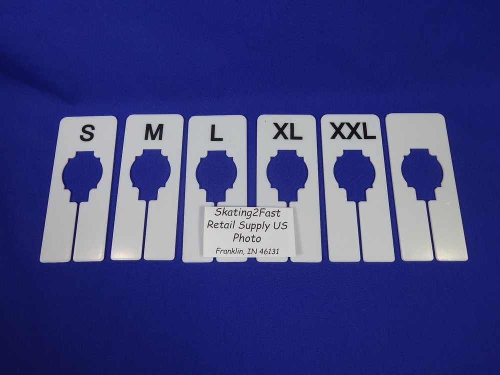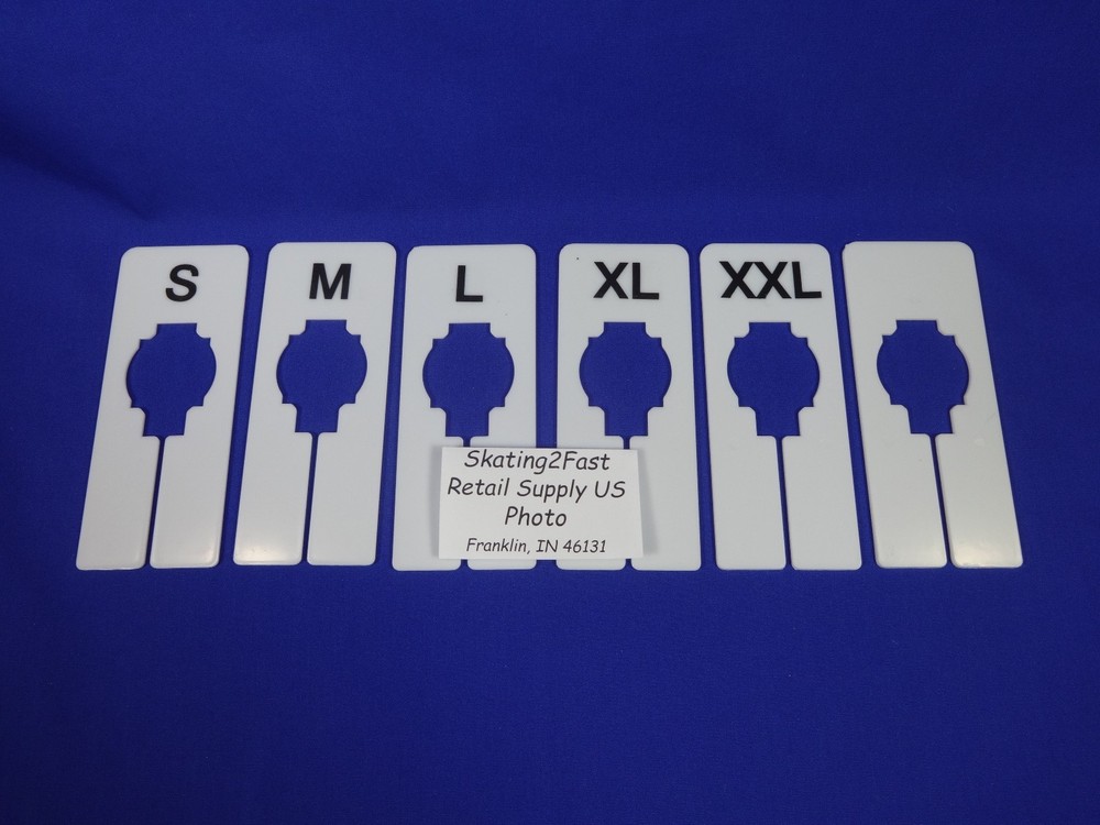 Clothing Rack Size Dividers Quantity: Set of 5 D ivider 1 Each. S - Clothing Rack Size Dividers M - Clothing Rack Size Dividers L - Clothing Rack Size Dividers XL - Clothing Rack Size Dividers XXL - Clothing Rack Size Dividers BLANK - Clothing Rack Size Dividers Size located on both sides of divider Color: White Size: 0.125" x 2.0" x 5.0" Condition: New Available For Shipping or Pick Up @ Retail Supply US Warehouse Franklin, IN 46131 2 Business Day Handling Orders Processed Monday, Wednesday & Friday Orders Paid By 11:59 am Eastern Standard Time Monday, Wednesday & Friday - Ship Same Day Combine Shipping on multiple items Place all the items in your shopping cart, then make request total; I will send a combined invoice as soon as possible; Shipping costs are calculated based on Weight, Size, and Destination. In some cases it may require packing the items before sending the invoice. Warehouse Location & Hours Retail Supply US Warehouse In Franklin, IN 46131; Visiting or Pick Up Is By Appointment Only; Monday, Wednesday & Friday 12:00 p.m. until 4:00 p.m. Thanks for Visiting & Have A Great Day!!