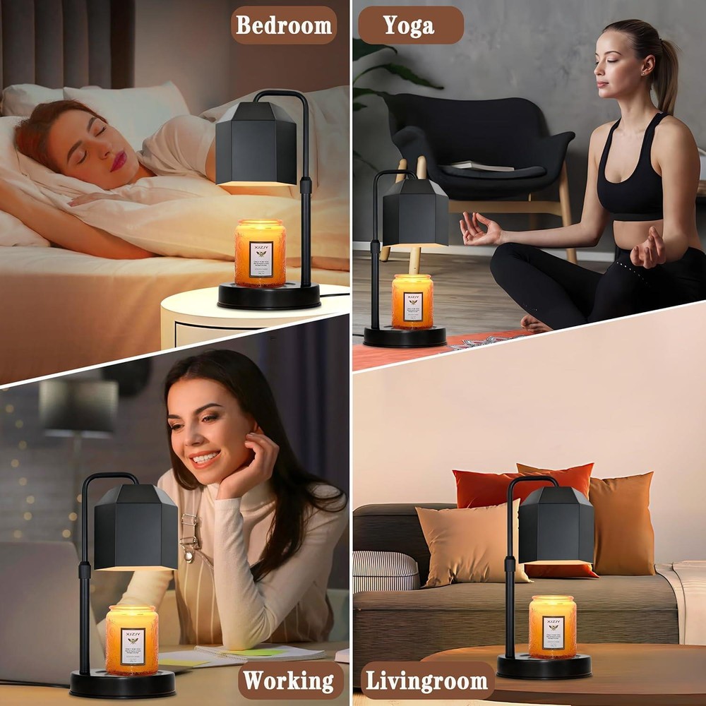 Absolutely love this candle warmer lamp! It melts wax evenly without burning, so my favorite scents last way longer—no wasted candles. The dimmable feature and adjustable height let me control the fragrance intensity perfectly. Plus, the sleek black metal design looks elegant as home decor. Super easy to use with the timer, and it works with all my jar candles. A total game-changer for anyone who loves cozy vibes without the flame hassle!