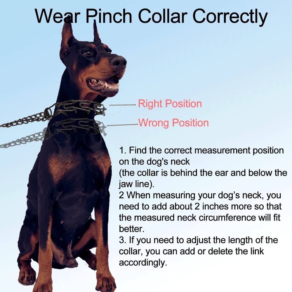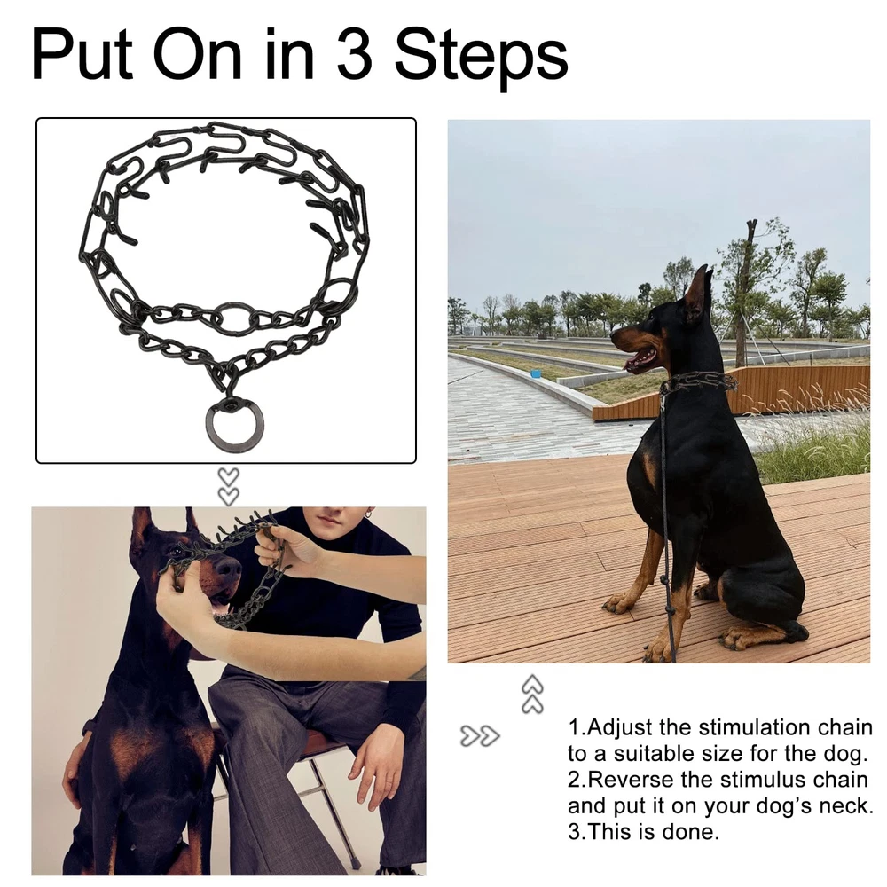 This prong collar is a game-changer for training! The adjustable links fit securely, and the chrome-plated iron feels durable without being too heavy. My dog responds well to the gentle pressure, and it’s much more comfortable than traditional choke chains. The sizing guide was spot-on—just measure your pup’s neck and add an inch. Highly recommend for effective, humane training!
