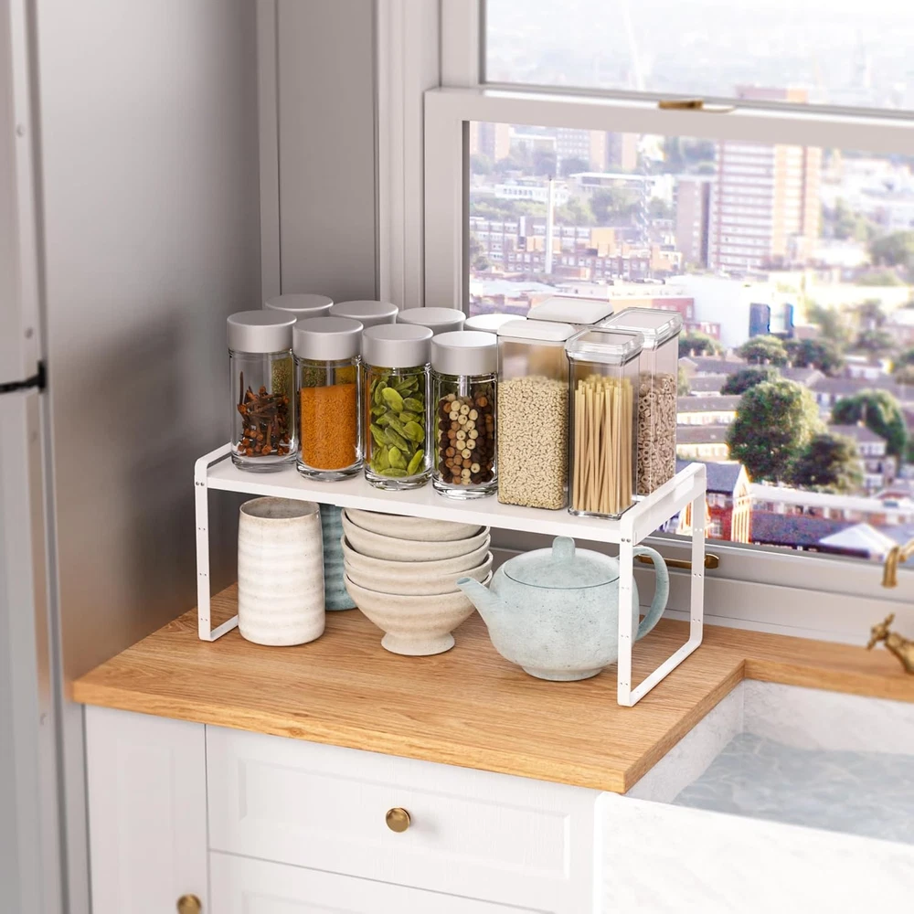 This expandable shelf organizer is a game-changer for any kitchen or pantry! The adjustable height makes it perfect for storing spices, cans, or small appliances, and the sturdy metal construction holds up well. Love that it’s stackable and fits neatly in tight spaces—super easy to assemble too. A must-have for maximizing storage!