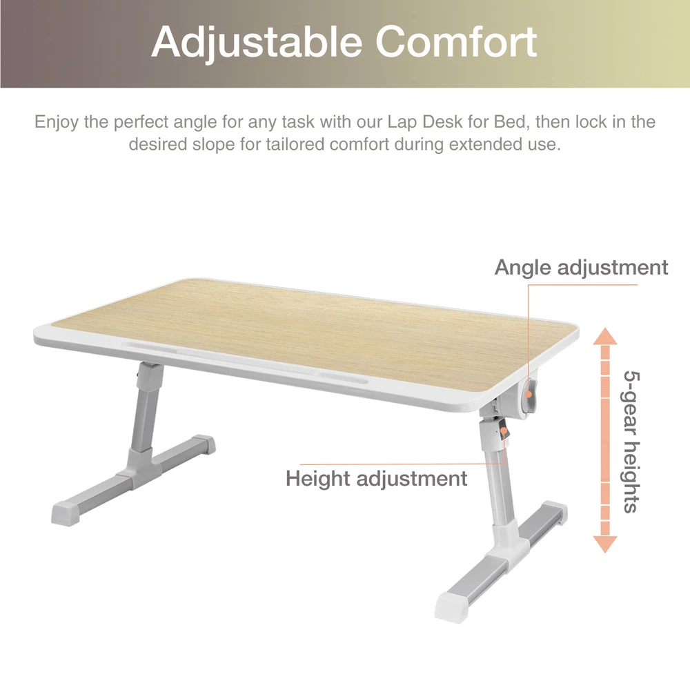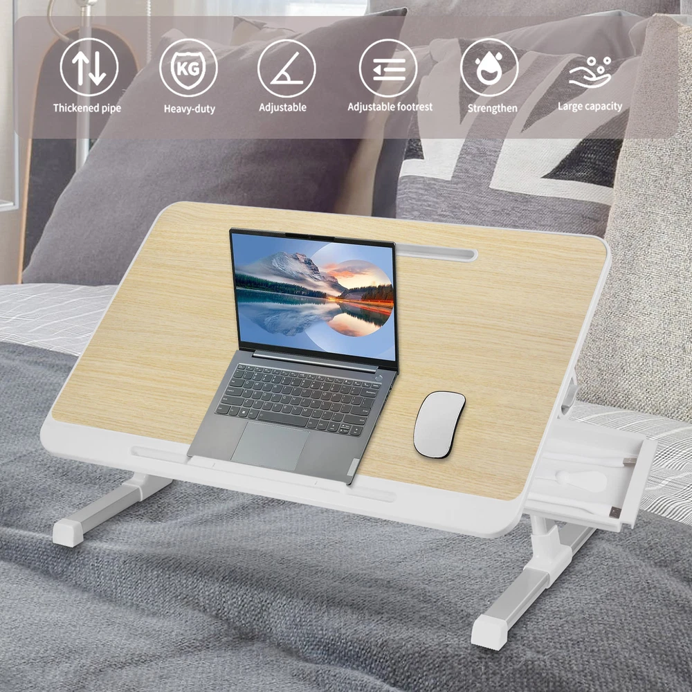 Store category Sign Up Now ! You may also like Product Description Bullet Points: Spacious & Convenient: Effortlessly fitting laptops 17 inches or larger, this large-sized stand also features a small drawer, providing ample room to store small items and use a mouse. Versatile Comfort: Enjoy the convenience of a foldable laptop stand for bed or couch, transforming into a standing desk for work or a snack tray for leisure. Adjustable Slops: Achieve your ideal work angle with our Angle Adjustable Laptop Stand for Bed. Lock the desktop tilt in place with ease to reduce discomfort and increase productivity. 5-Stop Height Adjustments: Raise your comfort levels and performance with our Laptop Stand for Bed that has 5 height options, ensuring a perfect viewing angle and reducing discomfort during long working hours. Convenient Portability: Fold the legs and take it with you anywhere. Ideal for both home and office use, it's easy to tuck under tables when not in use. Description: This Bed Desk is perfect for laptop use and writing on your bed, couch, desktop or floor! With angle and height adjustable settings, you can comfortably work anywhere. The foldable legs also make it easy to store small items. Specification: Name: Laptop Desk for Bed Product size: about 60x40cm/23.62x15.74 inches Packing List: Laptop Desk for Bed x 1 Notes: 1. Due to the different monitor and light effects, the actual color of the item might be slightly different from the color which is showed in the pictures. 2. Please forgive a slight measuring deviation due to manual measurement. Payment Delivery details Terms of sales About us Feedback & DSRs Payment Before you palce an order, please kindly make sure that you have a paypal account. We accept PAYPAL payment only. Payment should be completed within 2 days after auction closed, or unpaid dispute will be filed for an closing auction. An unpaid case will be filled after 4 days. Delivery details We ship to your eBay address. Each package will be shipped to US by UPS Regular Parcel with tracking number. Please check your shipping address carefully before checkout, it can't be changed if order completed. All items will be shipped within 1-2 business day upon receipt of payment.Orders placed on weekend will be shipped within 3 days. If you do not receive your item in 7-10 business days.please contact us immediately for further assistance. We will be responsible for any damages or losses incurred in the shipping process. About us We maintain high standards of excellence FIVE STAR and strive for 100% customer satisfaction! Positive Feedback is very important to us. We hope that you contact us immediately Before you give us neutral or negative feedback, so that we can satisfactorily address your concerns. We promise to offer the lowest price and high quality produce. Our working time: From Monday to Friday(9:30 am to 18:00pm), we don't working on holidays ,hope you can understand and know that , thank you. Please always talk to us via ebay Message. We appreciate your business and look forward to growing our e-Bay sales with satisfied customers. Feedback Contact us If you have any questions, please feel free to contact with us by ebay Message during our business hours ( 9:30a.m. to 5:30 p.m.), or email us through eBay, we will try our best to help you to resolve it. For any presale or after-sale questions,please do feel free to email us! Due to the time difference, each email will be replied within 1 working day,and weekend will be delayed a bit. Feedback