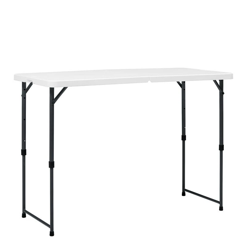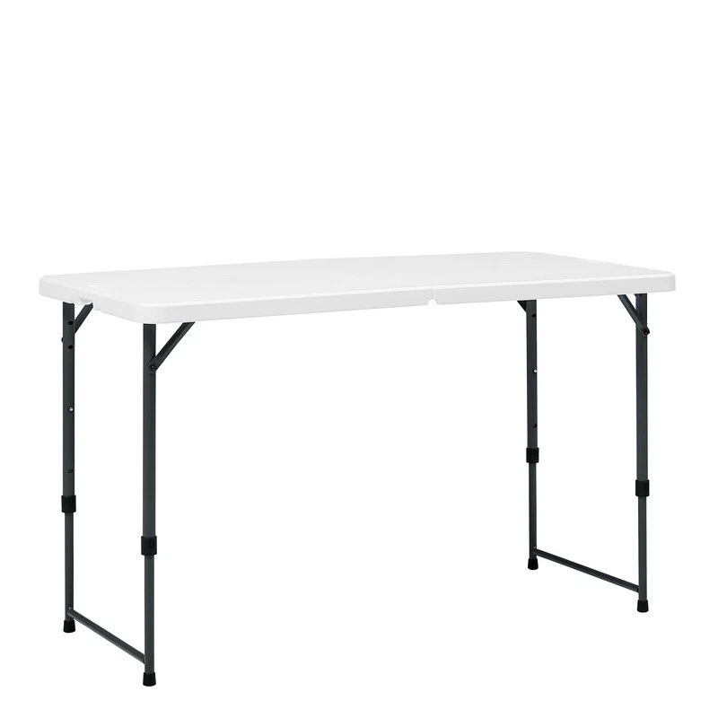 You may also like Modern 38.6" Wood Lift Top Coffee Table with Hidden Storage Shelf Living Room US 81.84 USD 86.15 USD Free shipping 5% off Square Side Table Wood Living Room Furniture w/ Storage Rustic Weathered Oak US 68.88 USD 72.5 USD Free shipping 5% off Wood Rectangle Coffee Table Sturdy Living Room Sofa Side Den Office Furniture US 41.52 USD 43.71 USD Free shipping 5% off Narrow Console Table Industrial 2-Tier Entryway Hallway Storage Sofa Table New 59.37 USD 62.49 USD Free shipping 5% off High Behind Couch Table W/ Outlet Narrow Console Table Living Room Entryway New 78.27 USD 82.39 USD Free shipping 5% off C Shaped Accent Table Snack Side Table Living Room Bedroom Couch Laptop Stand US 44.44 USD 46.78 USD Free shipping 5% off Round Coffee Table Storage Rustic Living Room Sturdy Metal Legs Wood Grain New 74.13 USD 78.03 USD Free shipping 5% off Modern Rectangle Lift Top Coffee Table Hidden Storage Shelf Display Living Room 121.12 USD 127.5 USD Free shipping 5% off Versatile Wood Coffee Table Spacious Indoor Durable Top Surface Livingroom Home 41.52 USD 43.71 USD Free shipping 5% off Modern Hairpin Rectangle Coffee Table Indoor Livingroom Study Decor Furniture US 65.31 USD 68.75 USD Free shipping 5% off Side Table 3 Tier Stand with Storage Shelves for Office Bedroom End Table 24.37 USD 25.65 USD Free shipping 5% off Folding End Table Storage X-shaped Legs MDF Wood W/ Removable TV Tray 22 Pound 47.94 USD 50.46 USD Free shipping 5% off Make your next event a success with this 4-foot adjustable folding table from . Adjusts to four different heights to meet all your needs. Our pinch-free buttons allow for easy folding and unfolding of legs, plus the carry handle makes it perfect for taking it on the go. The scratch and stain-resistant resin surface ensures lasting durability and easy clean-up. The adjustable fold-in-half table is perfect for all your different needs and occasions. It is great for everyday use, both indoors and outdoors. Fold-in-half table with 4 adjustable height settings: 48" L x 24" W x 22" / 24" / 29" / 34" H Comfortably seats 4 adults Adjust the height by pushing side buttons and lifting the tabletop. Patent-pending ergonomic pinch-free push-button for easy folding and unfolding of legs Auto-locking and unlocking system in the center of the table Easily folds in half for convenient storage or transport Constructed of UV-Protected high-density polyethylene plastic and gray powder-coated steel Oval legs for strength and durability Includes built-in carry handle, for easy transportation Built for indoor and outdoor use Durable Caps on legs to prevent floor damage No assembly is needed, can be open and folded in a few seconds Folded dimension: 24. 49" L x 23. 98" W x 2. 99" H Weight: 17. 42 lbs. Weight Capacity: 200 lbs. Perfect for your home, office, or outdoor activities You may also like Incontinence Postpartum Underwear Women Maximum Absorbency Discreet Comfort Fit 19.25 USD 20.26 USD Free shipping 5% off Extra Large Wheeled Storage Bin W/ Latch Lid Stackable Totes Home Office Garage 23.61 USD 24.85 USD Free shipping 5% off 10 Inch Pole Saw Attachment Trimmers Pruning Dead Branches Automatic Lubrication 54.84 USD 57.73 USD Free shipping 5% off Sensitive Skin Dog Food Salmon Protein Digestive Health Skin Coat Crunchy Kibble 48.95 USD Free shipping IATA Approved Plastic Dog Kennel Medium Travel Easy Assembly Safe Design New 109.15 USD 114.9 USD Free shipping 5% off Organic Extra Strength Biotin Gummies Hair Skin Nail Support 10000mcg 90 Count 16.02 USD 16.86 USD Free shipping 5% off Lightweight Graphite Spinning Rod Cork Grip Freshwater Saltwater Fishing New 41.18 USD 43.35 USD Free shipping 5% off New 12-Piece White Stoneware Dinnerware Set Serving Plates Bowls Kitchen Table 21.1 USD 22.21 USD Free shipping 5% off Beach Walk Candle Long Lasting Plant Wax Indoor Home Fragrance 150 Hour Aroma US 36.79 USD 38.73 USD Free shipping 5% off Rustic Whiskey Barrel Planter Indoor Outdoor Drainage UV Resistant Plastic New 23.71 USD Free shipping Disposable Liquid Wax Lamp Fuel 17 Hour Clean Burn Indoor Outdoor Use 48 Pack 66.77 USD 70.28 USD Free shipping 5% off Durable Steel Clothes Drying Rack Foldable Free Standing Laundry Organizer New 56.94 USD Free shipping