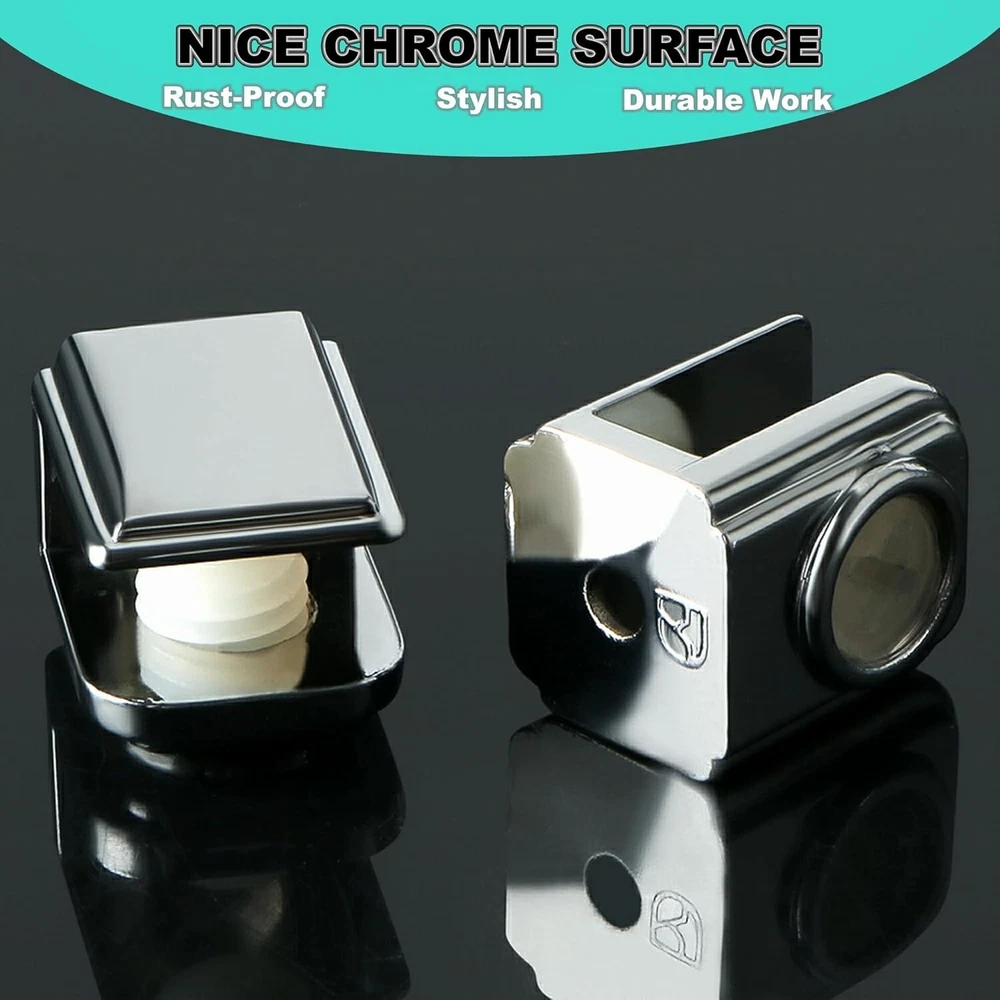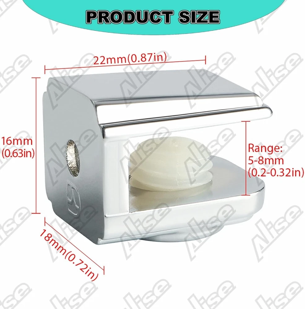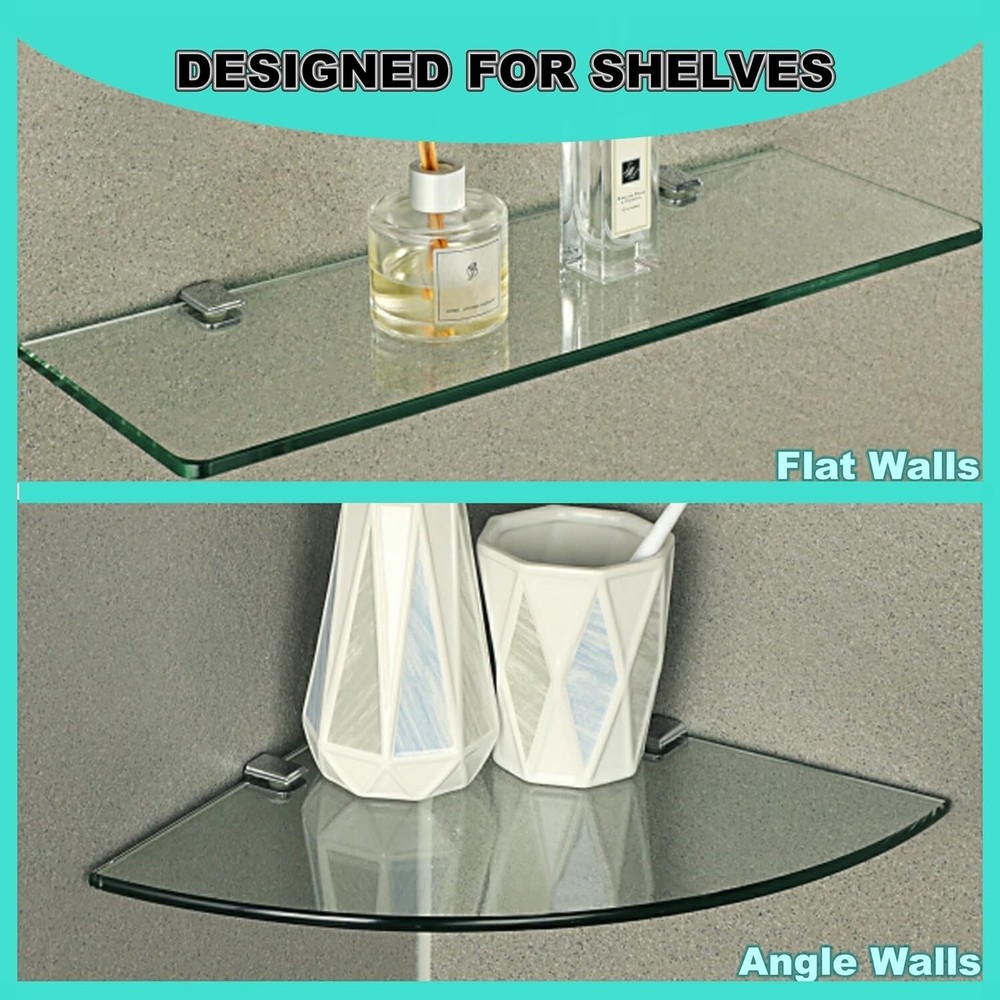 8Pcs Glass Shelf Brackets,Adjustable Clamp Brackets for Shelves,Wall Mount Clamps for 5-8mm Glass Shelves,Bathroom Clip Holder Support Hardware 【Quality Material】The glass clamp are made of high quality zinc alloy, able to resist daily corrosion and oxidation, ensuring durability and reliability. 【Nice Chrome Finish】The glass shelf brackets design is simple and stylish, hand-polished finish, smooth surface, not easy to scratch your hands. 【Thickened Design】The glass shelf bracket is designed with heavy duty thickened solid metal structure, Strong load-bearing force, not easy to break. 【Adjustable Design】You can use the screw to adjust within the adjustable range, suitable for 5-8mm thick glass. Note: Please measure the size of the product you need to install before ordering to avoid affecting your shopping experience. 【Easy to Install】The screw hardware required for glass clips installation is included, you can assemble it freely; Suitable for all kinds of glass, wood products, shelves, glass doors, shower doors, glass cabinets, wine cabinets and so on.