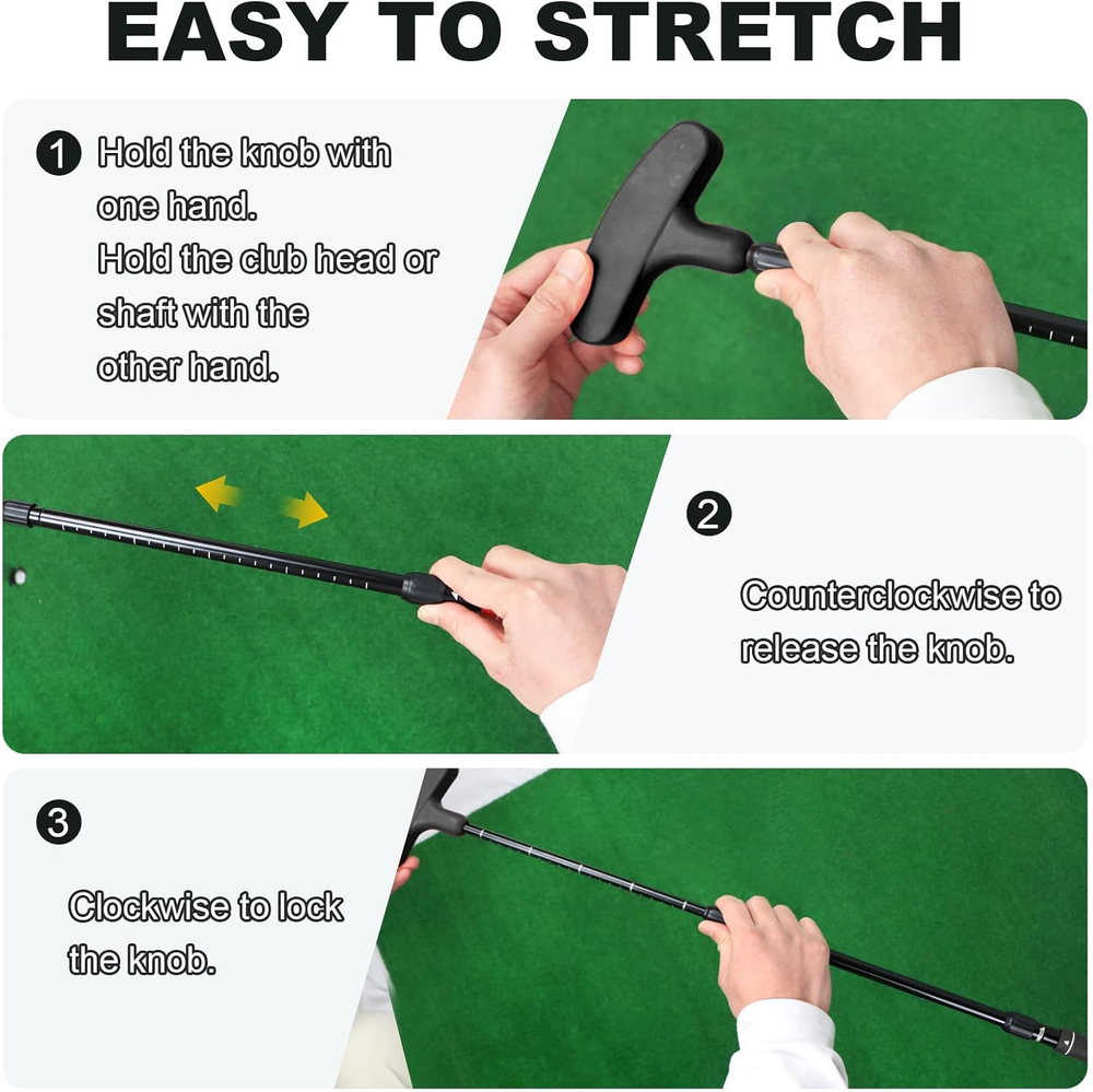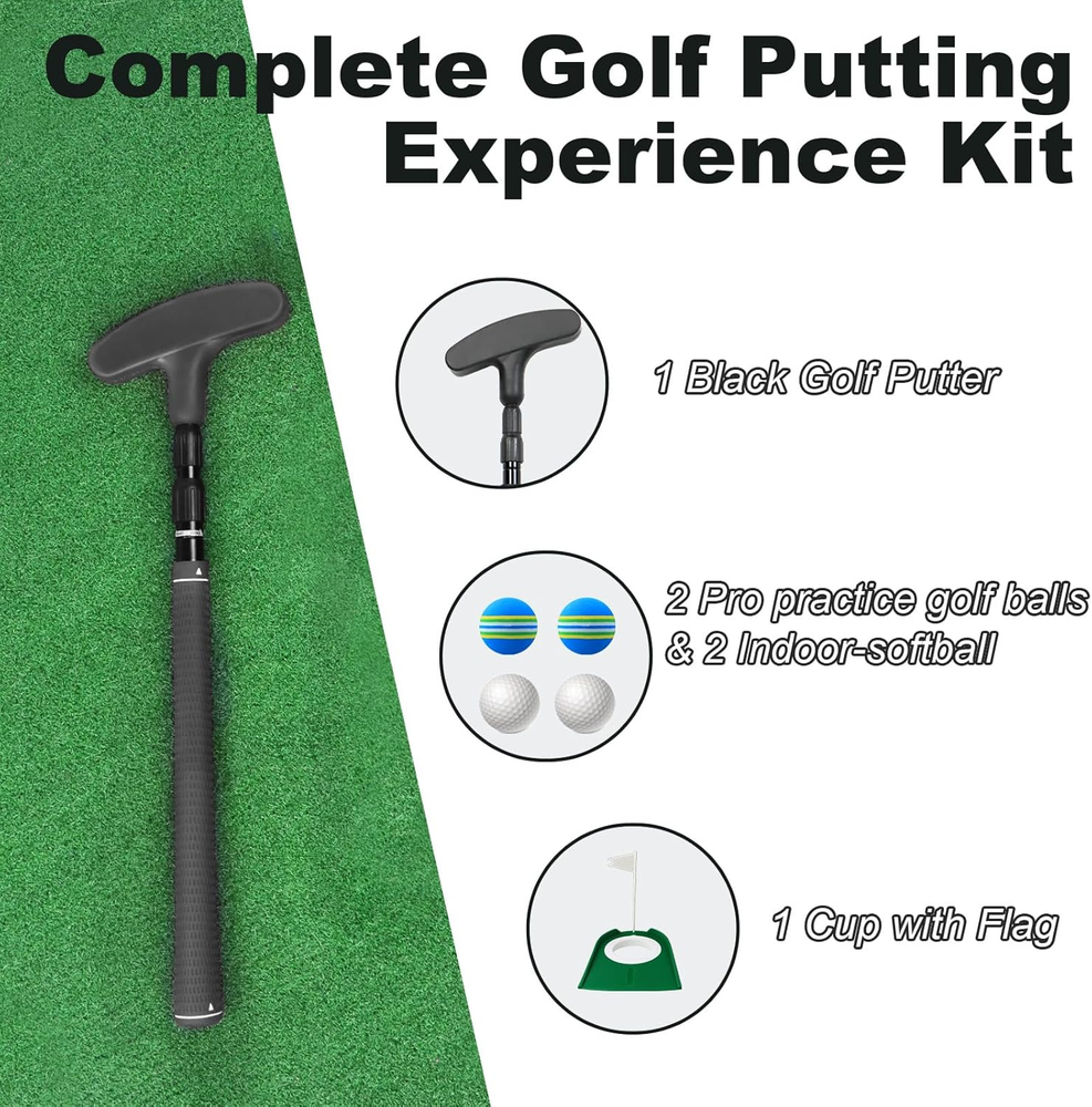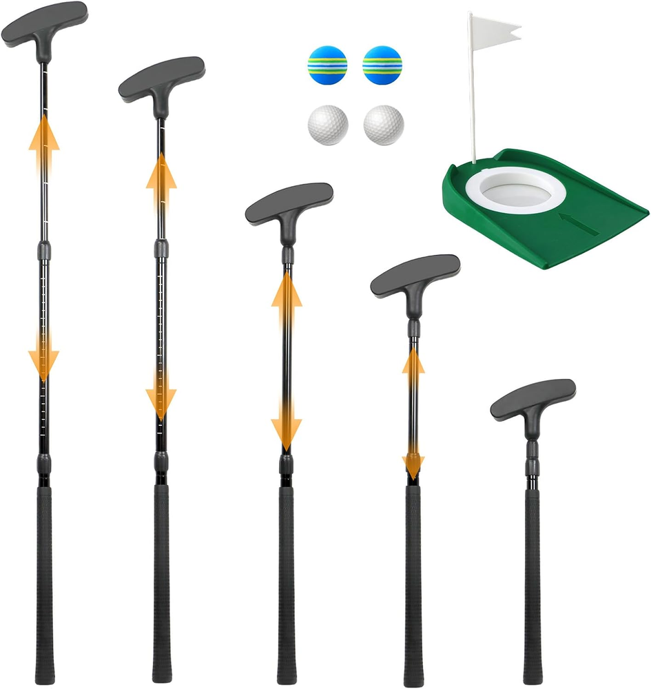Adjustable Golf Putter Two-Way Kids Putter for Right Left Handed Mini Golf Set 【Customizable Length for All Ages】Our innovative golf putter allows you to adjust its length from 16'’ to 36'’, ensuring a perfect fit for children, juniors, and adults alike. Experience consistent putting sessions every time! 【Suitable for Both Right & Left Hander】Designed for both right and left-handed golfers, our kids golf clubs offer versatility and convenience for any junior player. Tailor-made for beginners or seasoned pros, this kids golf set adapts to your child's needs effortlessly. 【Durable Construction for Youth】Crafted with an aluminium alloy shaft and a rubber anti-slip grip, our two-way golf kids putter guarantees durability and stability. The head, made from a special thermoplastic elastomer rubber blend, withstands daily training on any putting green. 【Ideal & Cool Gifts for Kid】Looking for a unique and practical gift? Our mini golf set is the answer! Help your child enhance their skills in a fun way. Whether practicing alone or with friends, this kids putter is a game-changer. 【Complete Golf Experience Kit】Each package includes 1 Adjustable Golf Putter, 2 Practice Golf Balls, 2 Soft Golf Balls, and 1 Cup with Flag. Every component undergoes rigorous inspection to ensure top quality. Reach out to us for any queries or concerns; we're here to provide you with the best support promptly. Product Description Warranty Description 1 Year Manufacturer Color Black Included Components Putter, 4 Balls, Cup with Flag Material Rubber Package Weight 0.65 Kilograms Golf Club Flex Regular Shaft Material Aluminum Suggested Users unisex-adult Model Name Kids Putter 001 Golf Club Loft 7.5 Degrees Hand Orientation Ambidextrous Item Package Dimensions L x W x H 16.26 x 5.59 x 1.77 inches Complimentary Shipping and Easy Returns Need to return something? Enjoy our 30-day hassle-free return policy! Take advantage of free shipping across all 48 contiguous states! Your order will be dispatched within 1-2 business days once payment is confirmed. Your Opinion Matters! Your happiness is our main goal! We welcome your feedback! If you encounter any problems, reach out to us right away, and we’ll be here to help. Explore the Extraordinary! Our collection showcases fascinating products that are sure to capture your attention. What surprises await you? Delve in and discover unique items that enrich your daily life. Don't miss the amazing things we have in store for you!