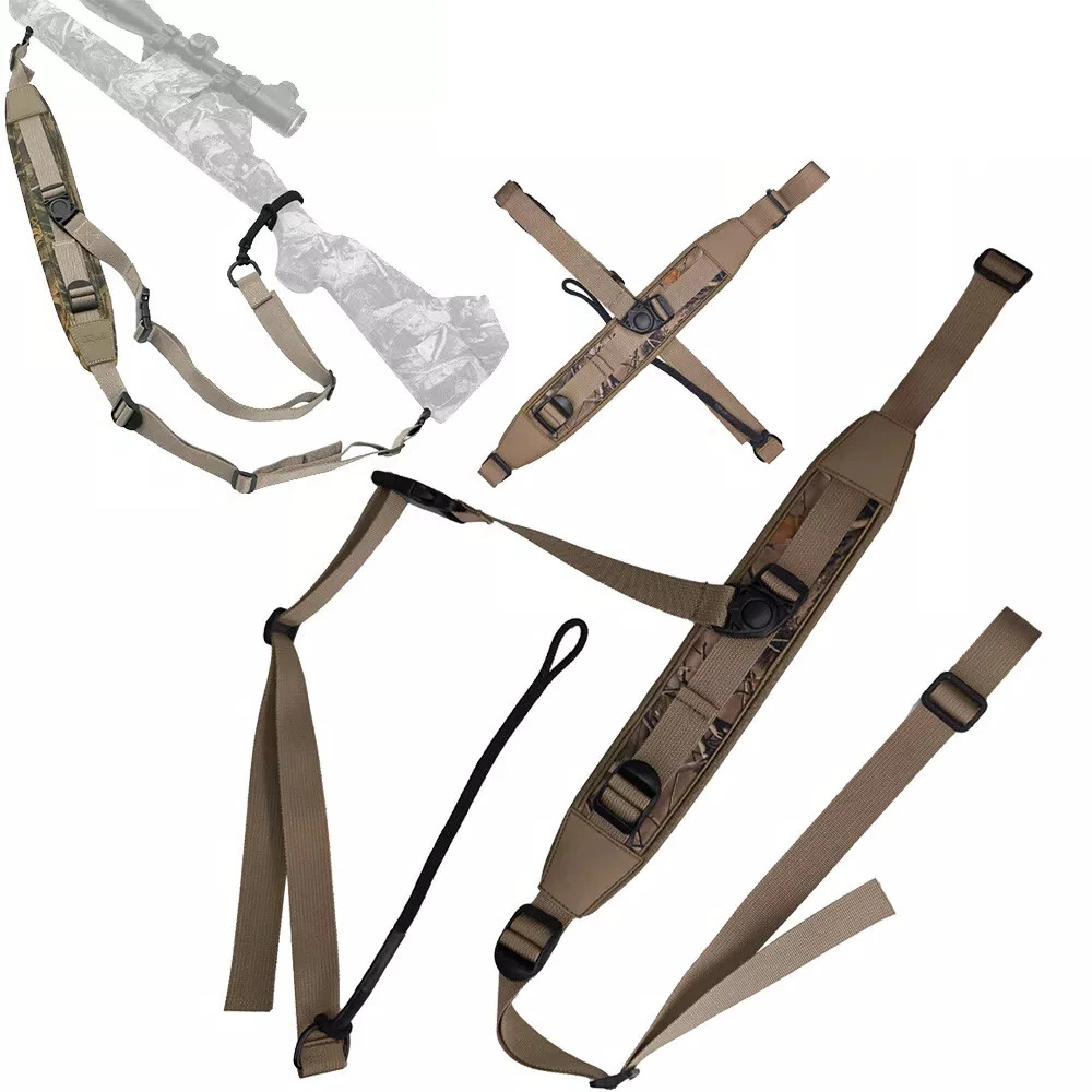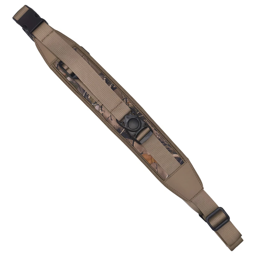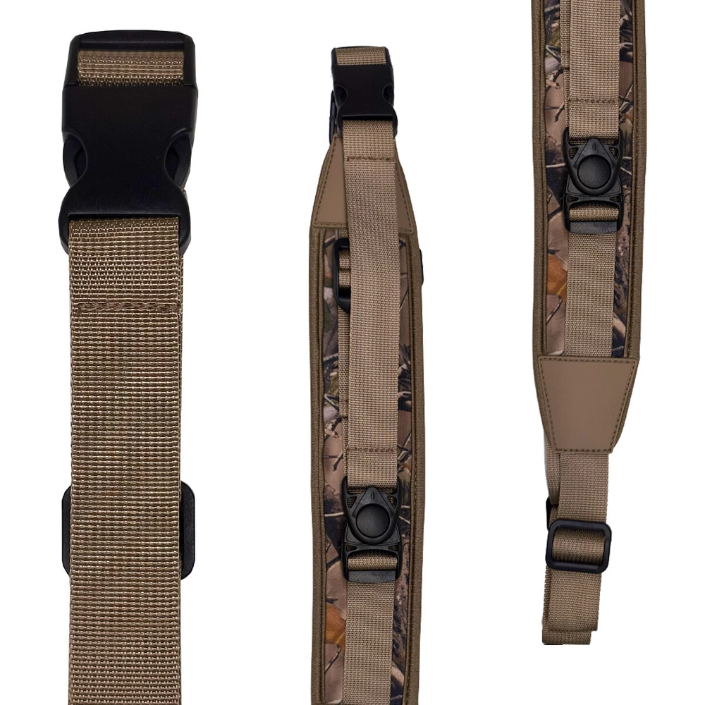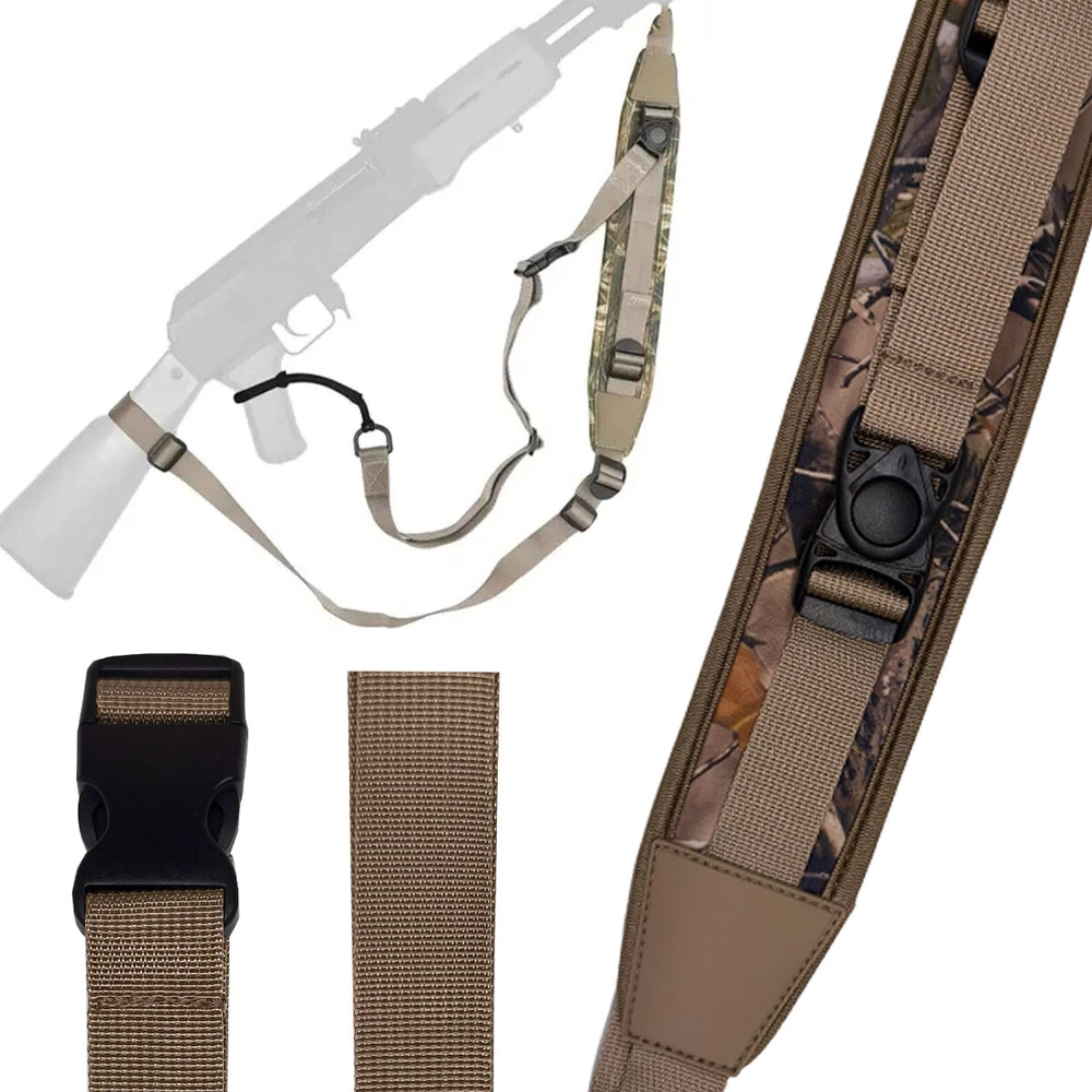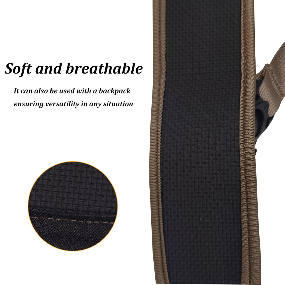 1. Enhanced Stability and Durability - Featuring a high-strength carbon steel swivel hook and durable nylon structure, this gun sling offers superior durability. It reduces sway during activities like skiing, cycling, or hiking, enhancing control. Enjoy improved stability and convenience across various activities, ensuring a more efficient and comfortable experience every time. 2. Quick Release Button - This gun sling is equipped with a quick-release button and a removable release button for fast transitions. The design allows you to move swiftly from a resting position to a hunting stance, improving your response time. The result is enhanced efficiency and quicker readiness, ensuring you're always prepared for action. 3. Easy Adjustment, Easy Fit - Crafted from high-density nylon, this camo rifle sling features four adjustable buckles, allowing for an easy length adjustment from 38 to 45 inches. This ensures an easy, personalized fit for any user, whether for different body sizes or equipment setups. The result is enhanced comfort and performance, giving you the freedom to adapt the sling to your needs effortlessly. 4. More Comfortable, More Lightweight - The sling features a 11mm thick, 65mm wide Neoprene shoulder strap, paired with a chest strap for an evenly distributed load. This design effectively eliminates the discomfort of carrying a rifle by distributing the weight across your body. The result is a more comfortable and lightweight carrying experience, allowing you to focus on your activity without being weighed down. 5. Four Mounting Options for Ultimate Flexibility - Unlike traditional fixed slings, our gun sling offers four customizable mounting options, allowing you to easily remove the QD connectors or strap. This gives you the flexibility to adjust the configuration to suit your specific needs. The result is a more versatile, comfortable, and efficient sling that adapts perfectly to any situation.