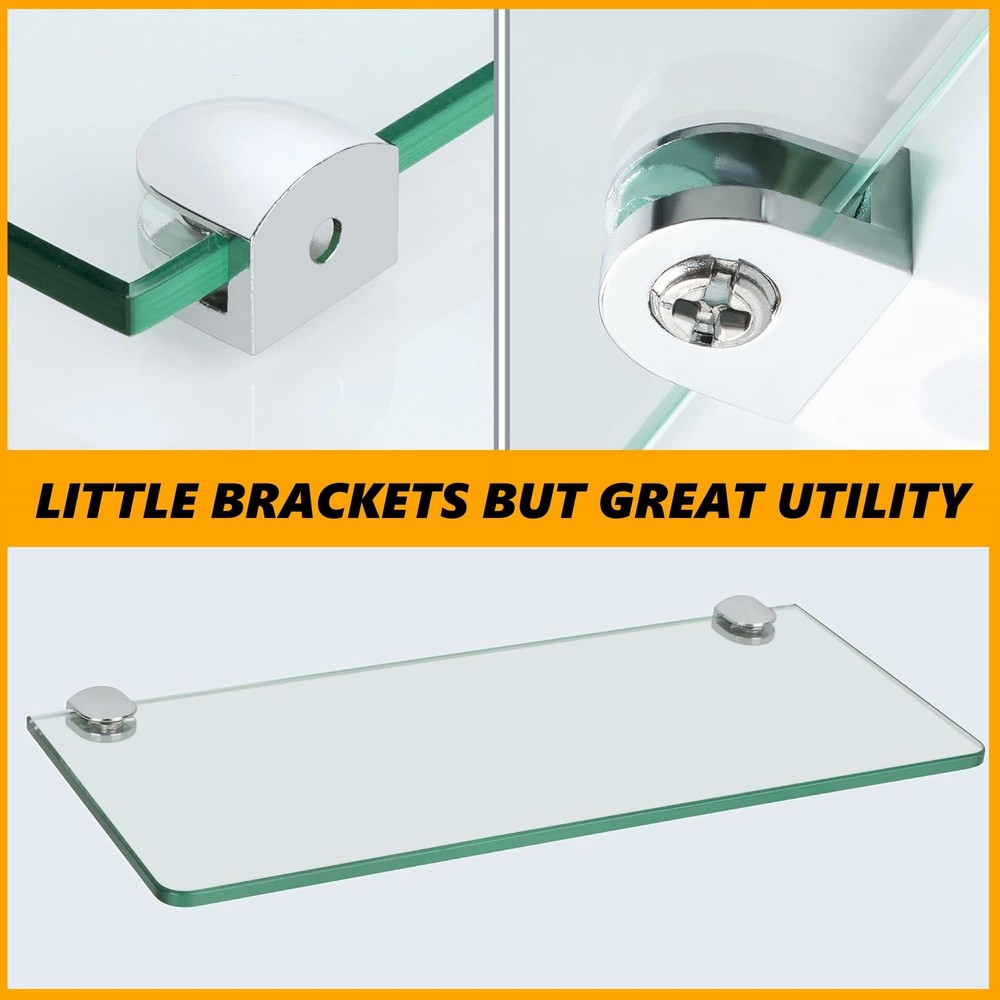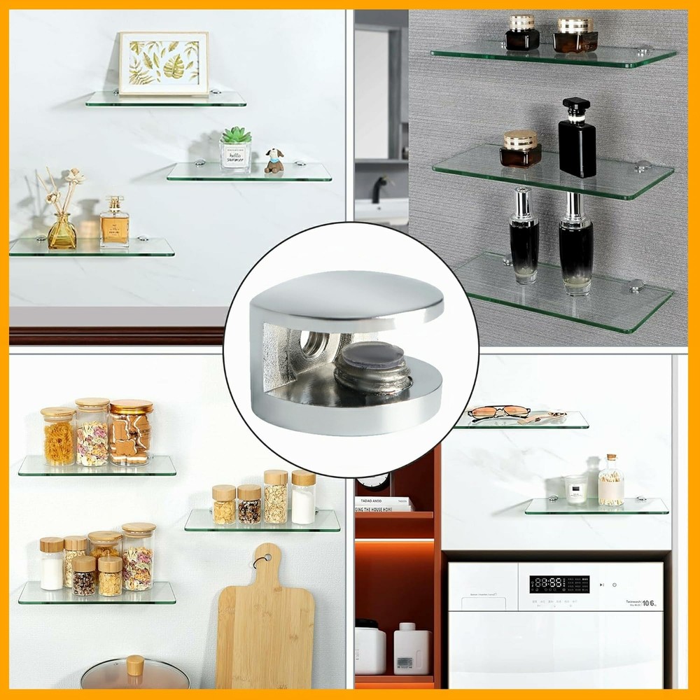 These glass shelf brackets are a game-changer! The heavy-duty zinc alloy construction feels incredibly sturdy, and the polished chrome finish adds a sleek, modern touch. They hold my 6mm glass shelf securely without any wobbling, even in the humid bathroom. The adjustable clamp makes installation a breeze, and the corrosion-resistant material ensures long-lasting durability. Perfect for shower shelves or any glass display—highly recommend!