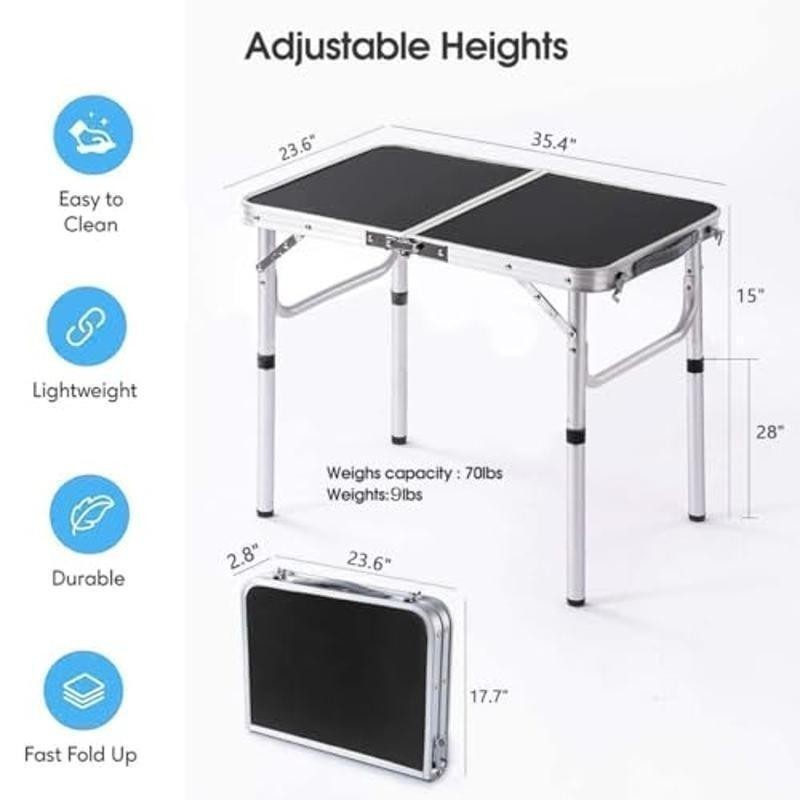 Cozy Electric Heating Blanket Faux Fur Soft Warm Throw Home Office Use 53.47 USD 57.49 USD Free shipping 7% off Bagless Upright Vacuum 720W Lightweight Multi Surface Cleaner 25ft Cord New 75.7 USD 81.4 USD Free shipping 7% off Soft Heated Blanket Twin Sherpa Electric Auto Off 5 Heat Settings Comfortable US 41.84 USD 44.99 USD Free shipping 7% off Bulk 2-Ply Toilet Paper 96 Rolls 400 Sheets Soft Biodegradable Commercial Use 48.83 USD 52.5 USD Free shipping 7% off Electric Heated Blanket Soft Warm Auto-Off 5 Heat Settings Safe Eco-Friendly New 41.84 USD 44.99 USD Free shipping 7% off Convertible Futon Sofa Bed 3 Adjustable Positions Stain Resistant Compact Design 142.22 USD 152.92 USD Free shipping 7% off All Purpose Lawn Food 6-4-0 Fertilizer Slow Release Organic 32 lbs Non Burning 34.35 USD 36.94 USD Free shipping 7% off Large Gravity Pet Waterer Dogs Cats Easy Clean Hydration System 4 Gallon New 34.35 USD 36.94 USD Free shipping 7% off Adjustable Freestanding Rifle Rack Holds 10 Guns Easy Assembly Gun Display Stand 46.35 USD 49.84 USD Free shipping 7% off 300ct Baby Wipes Light Fresh Chamomile Hypoallergenic Soft Thick Resealable New 12.37 USD Free shipping Men's Maximum Absorbency Guards 52 Count Discreet Breathable Incontinence Pads 20.65 USD Free shipping Premium BBQ Apple Wood Chunks Smoking Grilling 500 Cu In Natural Flavor New 16.15 USD Free shipping About this item OVERALL DIMENSIONS: This picnic table Open size is :36"(L) x 24"(W);2 Heights : 15" in low, 28" in high with the adjustable legs. Pack size is 24"x18"x3" when folded in half. Being lower than a traditional American dining table. A nice table, great for overland camping. THOUGHTFUL DESIGN: The small Aluminum table has High-quality MDF tabletop , thicker Aluminum Alloy Frame. Table weight :9lbs. Weight Capacity: 70 lbs. All 4 leg extensions have adjustable feet, which is nice for leveling on the ground, or to add another inch of height. LIGHTWEIGHT AND PORTABLE: The folding aluminum camping table is super lightweight, very easy to set up and take down. Folds up to the size of a small briefcase, with a carrying handle. Good size for car-camping, or maybe as an end-table on your patio, a nice beach table. STEADY AND COMPACT: Foldable and liftable outdoor camping table. Quite handy! Can be used for outside camping table for picnics after lifting up ,and table for laptops putting on bed after lowing down. Very steady. Won’t shaking! This would also make a good makeshift desk for a child for zoom meetings. › product details Brand:YUFIFAIRY Product Dimensions:36"D x 24"W x 28"H Maximum Weight Recommendation:70 Pounds Color:Black Style:Modern Item Weight:9 Pounds Frame Material:Aluminum Top Material Type:Aluminum Shape:Rectangular You may also like High-End Wood Picture Frame Set 5 Pack Tempered Glass Wall Art Display New 76.72 USD 82.49 USD Free shipping 7% off Extra Thick Red Carpet Runner Non-Slip TPR Back Ideal Weddings Events Party Use 60.44 USD 64.99 USD Free shipping 7% off 6Qt Slow Cooker 3 Settings Dishwasher Safe Stoneware Glass Lid Family Meals New 51.14 USD 54.99 USD Free shipping 7% off XXL Reading Pillow Bed Sitting Durable Back Support W/ Arms & Storage Pockets US 73.14 USD 78.64 USD Free shipping 7% off Non Slip Runner Rug Waterproof Indoor Outdoor Hallway Kitchen Stair Area Rugs US 62.77 USD 67.49 USD Free shipping 7% off Non Slip Washable Runner Rug Soft Low Pile Carpet Indoor Entryway Hallway New 64.92 USD 69.81 USD Free shipping 7% off Deluxe Reading Pillow Bed Wedge Backrest W/ Arms Comfortable Lounge Cushion New 52.63 USD 56.59 USD Free shipping 7% off Reading Pillows Bed Ergonomic Backrest W/ Arm Support Memory Foam Pocket Design 65.09 USD 69.99 USD Free shipping 7% off 16x20 Picture Frame Set of 5, Black Photo Frames 60.44 USD 64.99 USD Free shipping 7% off 24 Inch Stainless Steel Shower Grab Bar Concealed Screws Safety Support New 42.58 USD 45.78 USD Free shipping 7% off Gallery Wall Frame Large Picture Frame Oversized Mat Acrylic Glass Display New 95.33 USD 102.5 USD Free shipping 7% off High Rock Lake Trailer Lighted Porcelain Christmas Village Battery Operated New 48.82 USD 52.49 USD Free shipping 7% off