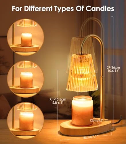 This candle warmer lamp is a game-changer! The adjustable height and dimmable feature let me customize the scent intensity, while the timer ensures safety. It melts wax evenly, filling my room with fragrance without an open flame. The amber lampshade adds cozy ambiance, and the included bulbs work perfectly. Fast shipping and great seller—highly recommend!