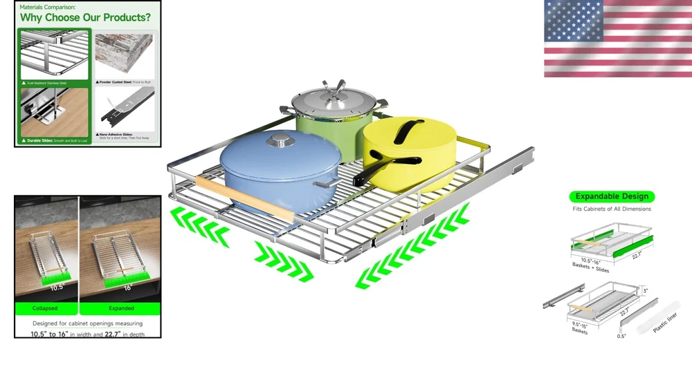 Adjustable Kitchen Slide Out Shelves - Space-Saving Drawer Solution, 10x10x12 ‹ › ‹ › ‹ › ‹ › ‹ › ‹ › ‹ › ‹ › ‹ › Adjustable Kitchen Slide Out Shelves Transform your kitchen with our innovative space-saving drawer solution. Dimensions: 10" x 10" x 12" Features: Expandable Design: Our slide out cabinet drawer fits seamlessly into most cabinets, featuring adjustable width for an optimal fit and maximizing your storage space. Smooth & Quiet Slide-Out: Equipped with an industrial-grade ball bearing system, enjoy effortless, quiet sliding action every time you pull out your drawer. High Quality Stainless Steel: Crafted from premium stainless steel, our roll out shelves are designed for durability and a remarkable load capacity of 50 lbs, ensuring they can handle your kitchen essentials with ease. Simple Installation: The cabinet organizer is bottom-mounted and comes complete with necessary hardware and clear installation instructions, making setup a breeze. Better Customer Experience: Customer satisfaction is at the heart of our service. Should you have any inquiries or find a missing item in your package, we encourage you to reach out for prompt assistance. Multi-Purpose Sliding Out Organizer Our Adjustable Kitchen Slide Out Shelves not only enhance the aesthetic and functionality of your kitchen but also allow for easy access to stored items. Imagine reaching for your spices, cookware, or pantry items without having to dig through cluttered cabinets. This is more than just a kitchen accessory; it’s a lifestyle upgrade. Embrace organization and elevate your culinary environment with our elegant, space-saving drawer solution. Order your Adjustable Kitchen Slide Out Shelves today and experience the difference! Shipping Free & Fast Shipping - We offer free shipping to most of the USA with a normal delivery time of 3-7 days. However, due to the current situation, additional delivery time (up to 3 weeks) may be required for some items. Alternative Carriers - We may use alternative carriers (e.g. USPS, FedEx, UPS, etc.) to ensure your package arrives safely and on time. Due to the use of multiple carriers, we are unable to provide a tracking number automatically. Handling Time - Orders are processed and shipped within 1-2 business days of receiving cleared payment. Shipping Restrictions - Shipping to Alaska, Hawaii, Puerto Rico, Guam, and other US territories may incur shipping charges or delivery restrictions. Please contact us before ordering, or your order can be refunded/cancelled. State Restrictions - There may be restrictions based on your state of purchase. For example, certain items may not be shipped to California due to state regulations. Contact for Tracking Updates - If you require tracking updates or have any concerns about the delivery of your order, please feel free to contact us, and we will be happy to assist you. Return 30-Day Hassle-Free Returns - We want you to be completely satisfied with your purchase. If you are not, you can return the item within 30 days of receiving it for a full refund or exchange. Easy Return Process - To start a return, simply contact us and we will provide you with a prepaid return shipping label and detailed instructions. Restocking Fee - There are no restocking fees for returns. However, the buyer is responsible for return shipping costs if the return is not due to a seller's error. Refund Processing Time - Refunds will be processed within 5 business days of receiving the returned item in its original condition. Payment We accept all major credit cards, PayPal, and Apple Pay for your convenience. Your payment information is secure and encrypted to ensure a safe and seamless transaction. Please complete your payment within 3 days of purchase to avoid any delays in shipping. Feedback Your feedback is extremely important to us. We strive to provide the best products and customer service possible. If you are satisfied with your purchase, please take a moment to leave us a positive review. If you have any concerns or issues with your order, please contact us before leaving negative feedback. We are committed to resolving any problems and ensuring your satisfaction. Contact Us If you have any questions or concerns, please feel free to reach out to our customer support team. You can contact us through the eBay messaging system. We are available Monday to Friday, 9:00 am to 5:00 pm EST, and we will do our best to respond to your inquiry within 24 hours. Buy it now and enjoy a pleasant shopping experience! UPC: Not Set Unit Quantity: 1 Material: Stainless Steel,Metal Suitable For: Kitchen Cabinet,Cabinets Brand: Unbranded Type: Drawer Pull Color: Silver Item Length: Not Set Finish: Stainless Steel Item Diameter: 10 in MPN: Not Set Number in Pack: 1 Style: Modern Center-to-Center Measurement: 10 in Country/Region of Manufacture: Not Set Door Handing: Not Set Extension Length: Not Set Manufacturer Warranty: Not Set Unit Type: lb Fixings Supplied: Not Set