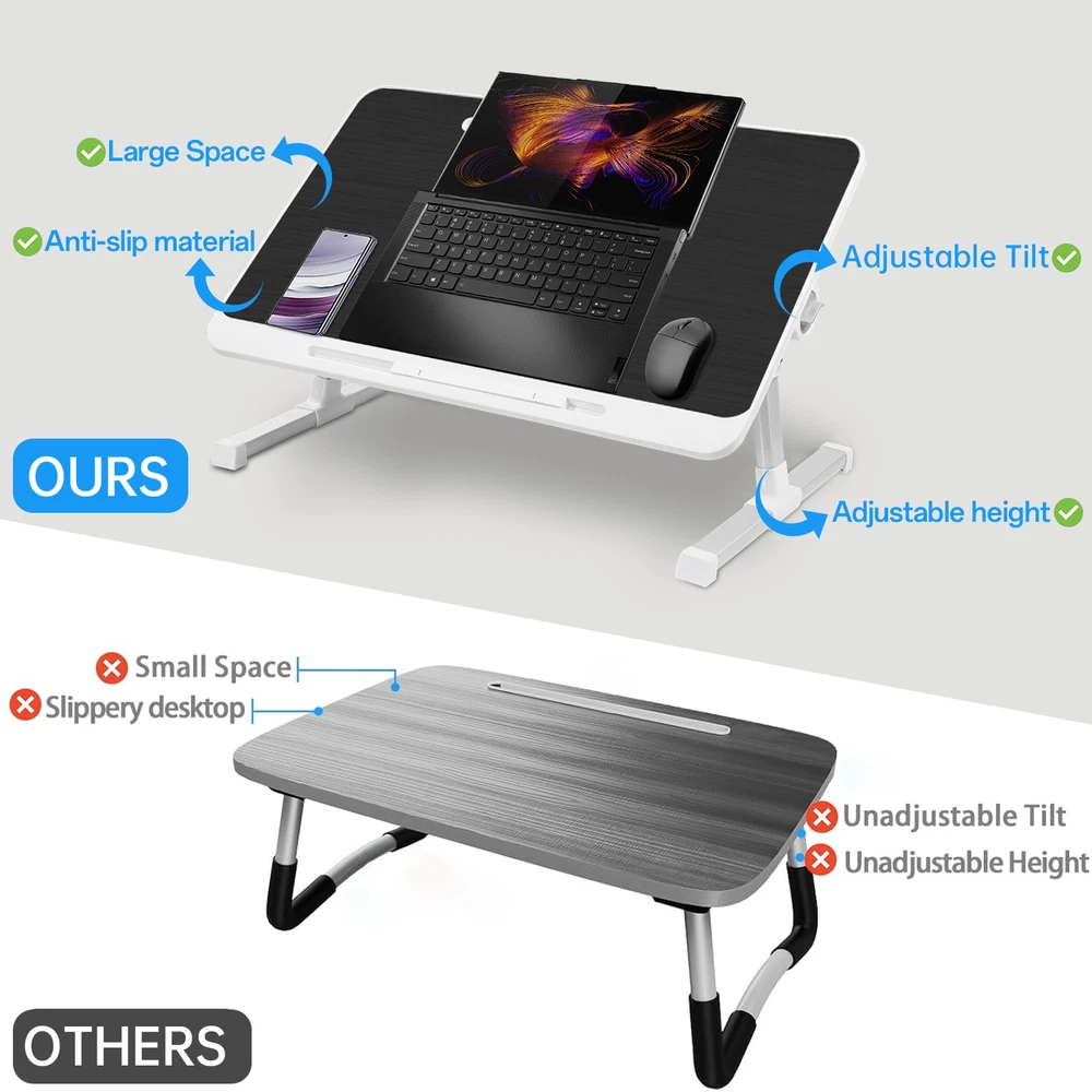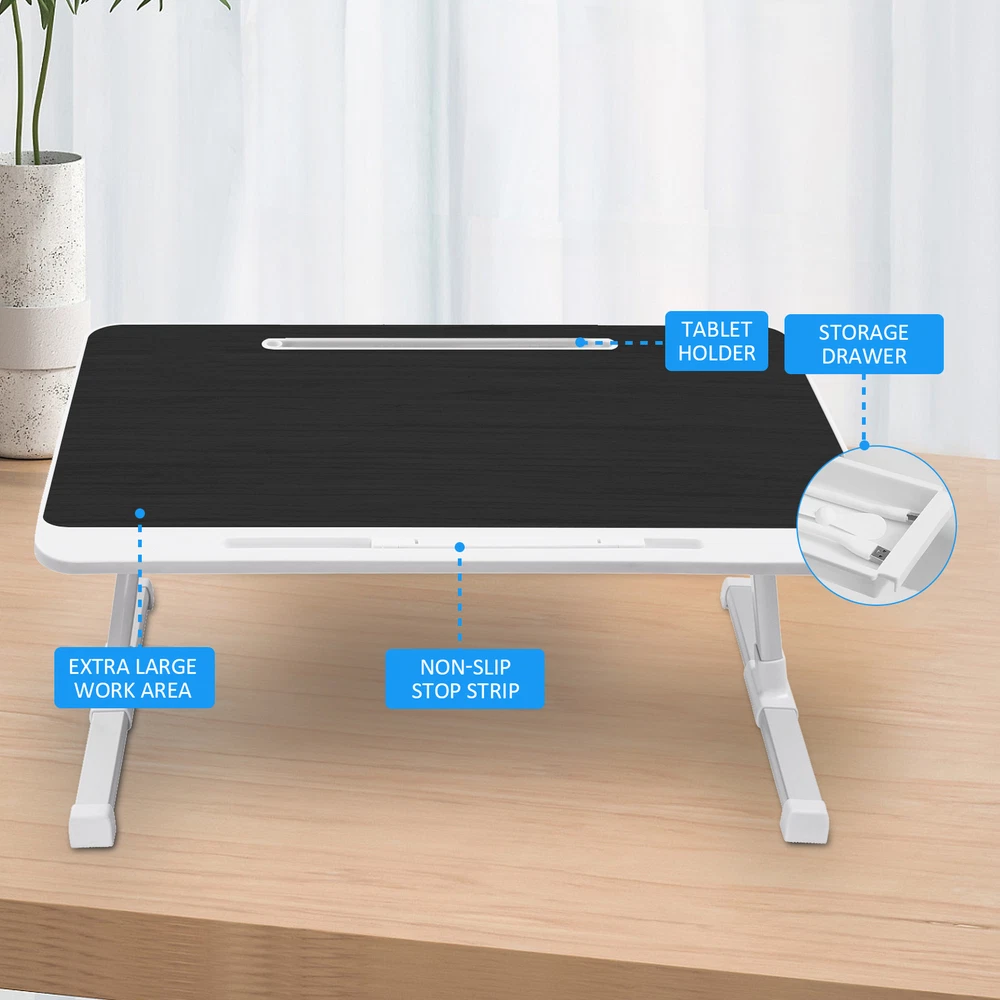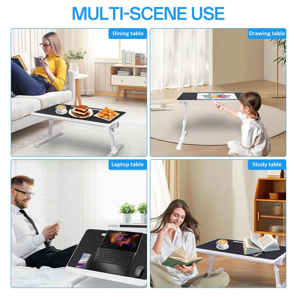 Adjustable Laptop Table Stand Lap Sofa Bed Tray Foldable Notebook Computer Desk Bullet Points: Multi-Purpose Use: With its flexibility, this folding laptop table can transform into a standing desk for focused work, a snack tray for TV bingeing, or a laptop stand for relaxed bedtimes. Take comfort wherever you go, whether it's on your bed, couch, desktop, or floor Angle Adjustable Comfort: Get a conofrtable use experience with this folding laptop table that easily adjusts the tilt of the desktop to improve comfort. Achieve precise angle adjustment from 0-36 for enhanced comfort and productivity Easy Organized Solution: Perfectly fits laptops 17 inches or larger, this folding table features a small drawer to neatly store small items and books Meeting Unique Preferences: Experience utmost convenience with our folding laptop table that provides 5 gear heights to choose from, meeting different needs and preferences. Easily adjust the height position to suit your requirements and enjoy versatile functionality at its best Convenient to Carry: Take productivity anywhere with the foldable legs of this folding laptop table. Use it outdoors or simply save space at home, without sacrificing quality or convenience. Easily store and set up wherever you need it Our Angle Adjustable Portable Laptop Table is perfect for using as a snack tray while watching TV. With its large and height adjustable desktop, you can adjust it to fit your needs. Plus, it's compact enough to not take up much space. It's great for working, studying or just relaxing in style! Specification: Table size: about 23.62x15.74in/60x40cm Applicable to laptops: 17 inches or larger With small drawer: Yes Adjustable height gears: 5 Load capacity: about 20kg/44.1lbs Desktop can be tilted 0-36° Table legs lift range: 10.6-15in/26.9x38.1cm Packing List: 1* Portable Laptop Table Notes: 1. Due to different lighting and screen settings, the item color may be slightly different from the picture. 2. Due to different manual measurements, please allow a 1-2cm difference in size. We accept PayPal payment,PayPal Credit,Credit card or debit card and so on. Payment should be completed within 4 (Four) days of auction closing. Or unpaid dispute will be filed for closing auction. We will leave a positive feedback immediately after payment is received. We appreciate a positive feedback as much as you do. If for some reason there is any issue with the purchase, please contact us prior to leaving feedback, we will be glad to work together and provide a satisfying solution. 1. We ship to your eBay address. Each package will be shipped via FedEx or UPS 2-8 business days with tracking number 2. Please check your shipping address carefully before checkout, it can't be changed if order completed. 3. Shipping within 1 business days once payment completed. Orders placed on weekend will be delay 1-2 days. 4. Please allow 6 business days for delivery to any destinations. 5. As a buyer, it is your duty to pay the tax when you make an order from abroad. Our price does not include taxes, VAT, or other hidden charges. 1. We maintain high standards of excellence FIVE STAR and strive for 100% customer satisfaction! 2. Positive Feedback is very important to us. We hope that you contact us immediately BEFORE you give us neutral or negative feedback, so that we can satisfactorily address your concerns. 3. We promise to offer the best price and high quality products. 1. If you have any questions, please send a ebay message. 2. We will reply within 48 hours of your email. Weekend will be delayed a bit.