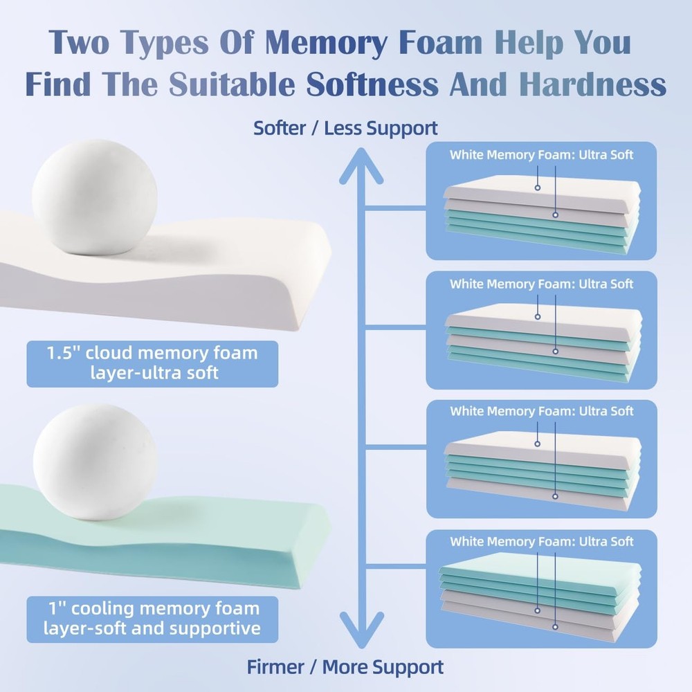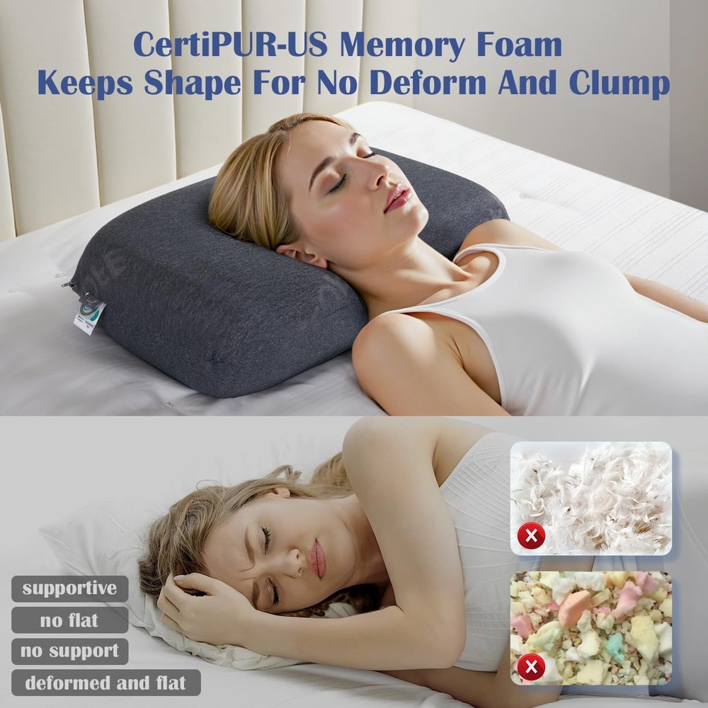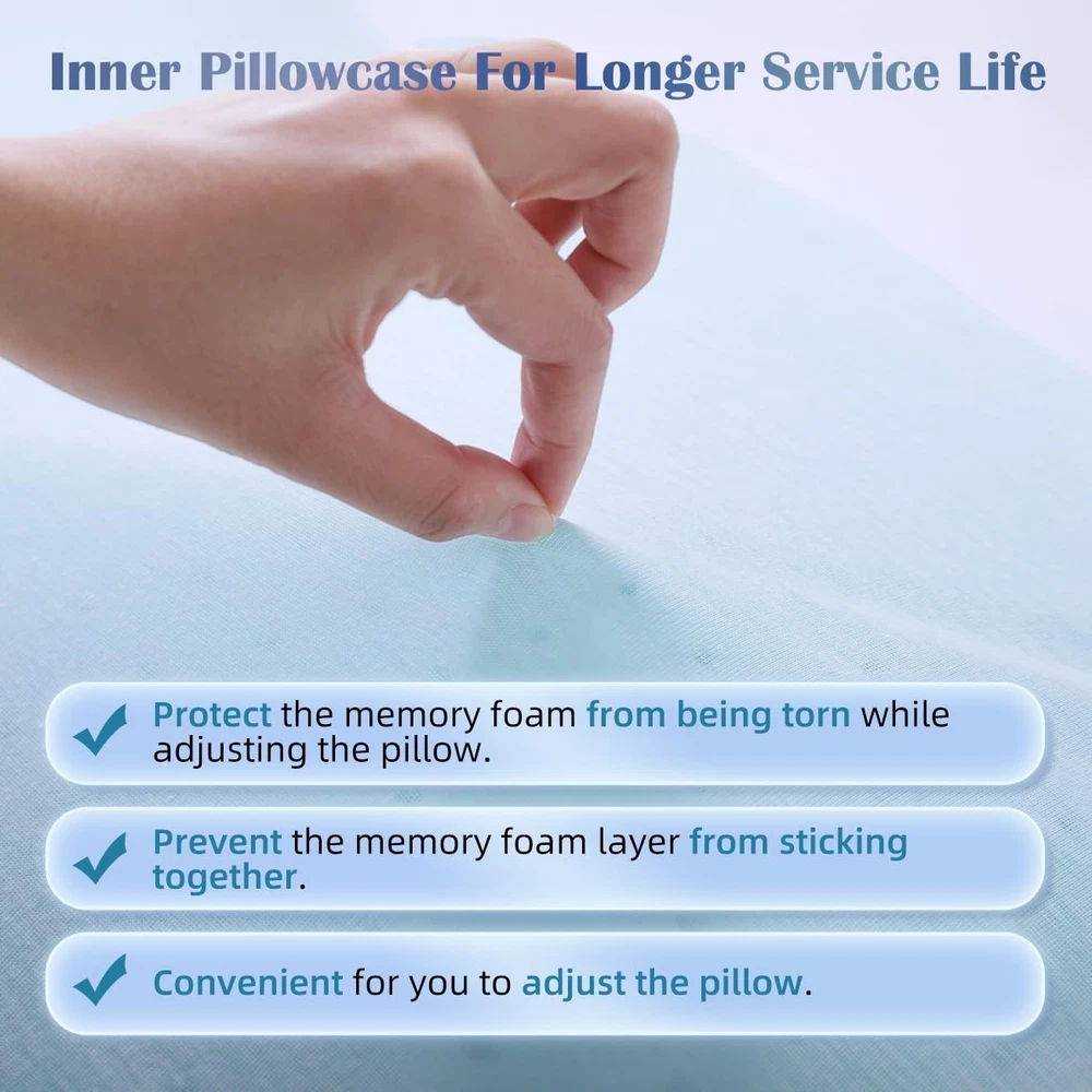 WHY WE CHOOSE TWO DIFFERENT MEMORY FOAM - LET YOU ADJUST SOFTNESS TO ACHIEVE THE IDEAL SUPPORT: Are you worried that the pillow’s softness is always not suitable for you ? Don’t worry! adjustable memory foam pillow can help you solve it. The adjustable pillow for neck pain relief features 2 layers of 1.5'' ultra soft white memory foam and 3 layers of 1'' medium firm blue memory foam. When you lie down, the ultra soft memory foam quickly cradles your head and neck. And the medium firm memory foam is aimed to provide superior support, your head will not collapse when sleeping. Try to adjust the different combinations of layers for different softness to achieve the ideal support you want. 🎈WHY WE CHOOSE TWO DIFFERENT MEMORY FOAM - LET YOU ADJUST SOFTNESS TO ACHIEVE THE IDEAL SUPPORT: Are you worried that the pillow’s softness is always not suitable for you ? Don’t worry! adjustable memory foam pillow can help you solve it. The adjustable memory foam pillow features 2 layers of 1.5'' ultra soft white memory foam and 3 layers of 1'' medium firm blue memory foam. When you lie down, the ultra soft memory foam quickly cradles your head and neck. And the medium firm memory foam is aimed to provide superior support, your head will not collapse when sleeping. Try to adjust the different combinations of layers for different softness to achieve the ideal support you want. 👑FIND IDEAL HEIGHT FOR STOMACH, SIDE AND BACK SLEEPERS: Did you wake up with neck pain or have difficulty falling asleep because of the pain? Your pillow’s height is not suitable for you! adjustable memory foam pillow for neck pain relief has 5 different layers, which can be combined into 10 different heights from 1’’ to 6’’ increments of 0.5'' . So you have the freedom to adjust these 5 thin pillows to find the suitable height for you, helping your spine stay aligned, relaxing your neck and relieving your neck pain. 🍂CERTIPUR-US MEMORY FOAM KEEPS SHAPE FOR NO DEFORM AND CLUMP: Unlike pillows filled with alternative down or shredded memory foam, easy lose its shape, the adjustable memory foam pillow made of CertiPUR-US memory foam can slowly bounce back to its original shape and keep its shape for a long time use, not prone to deform and clump. What’s more, you just need to add or remove the adjustable memory foam pillow’s layer to your ideal height, which is very clean, simple and convenient. Say goodbye to mess adjustments! 🐕BREATHABLE AND MACHINE WASHABLE PILLOWCASE FOR DAILY CLEAN: The adjustable memory foam pillows contain a removable and machine washable pillowcase (60% polyester, 40% rayon of bamboo) .This super soft material is very breathable, wicking moisture away from the skin and resisting odor. adjustable memory foam pillow for neck pain relief has ventilation holes to help alleviate excessive heat build-up. 🌟INNER PILLOWCASE FOR LONGER SERVICE LIFE: Each thin pillow is equipped with an inner pillowcase, which can protect the memory foam from being torn while adjusting the memory foam pillow. It is very convenient to adjust the pillow for neck pain relief with the inner case. It can prevent memory foam layers from sticking together. 🍭- LOVE LIFE, LOVE SLEEP: The brand is originated from the meaning of LOVE LIFE. Bring adjustable memory foam pillow to home, let you LOVE SLEEP. We are a small company specializing in the development of pillows, such as buchwheat pillow, kid pillow, organic pillow and so on. Our factory has been producing a number of pillows for more than 20 years. We always start with what our customers want and find a way to meet their needs. We try our best to develop adjustable memory foam pillow through 1000+ tests. If any issues with your adjustable memory foam pillow, our friendly customer service team is always ready to help. It is our priority for your satisfaction!