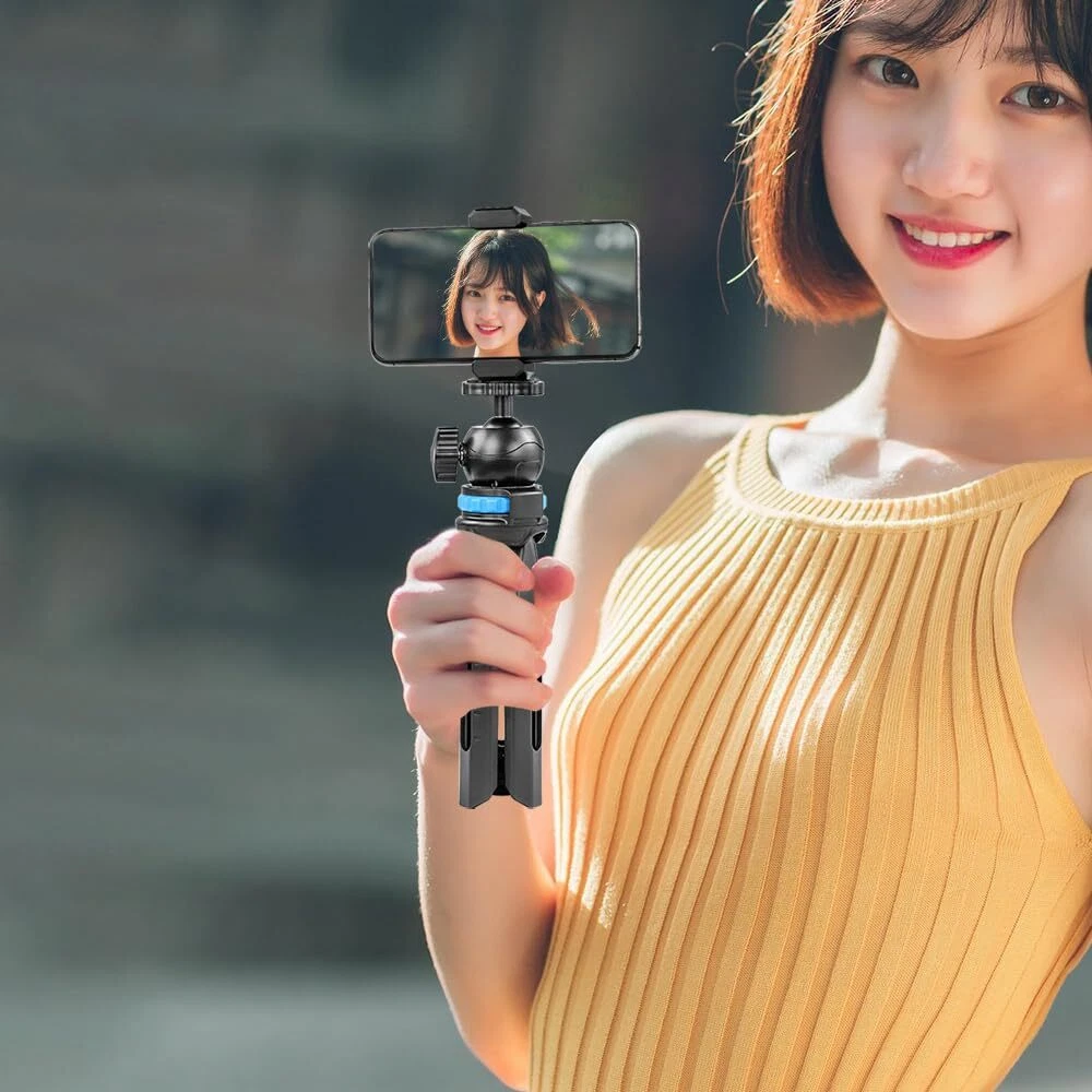 ·with your entry-level DSLR and devices up to 2kgs ·Mini tripod 2 leg angles give you stability on uneven ground ·Sturdy and light weight aluminium & adapter structure you can rely on ·tilts to a full 90° letting you shoot in portrait mode 【WIDE RANGE OF COMPATIBILITY】 with your entry-level DSLR, smartphone, Webcam, Gopro; Use as selfie stick, mini tripod, smartphone tripod holder, mini tripod, cell holder. 【ADJUSTABLE HEIGHT&FLEXIBLE ANGLE】 The tripod weights only 185g, can withstand the maximum weight is 2kg; Through the red button on the leg to adjust 4 levels extension; 2 flexible tripod leg angles for choice by rotate the red level angle adjusting konb. 【360° ROTATION】 The ball head is adjusted by a knob on the front to loosen or lock down, rotate the bubble level, be able to photograph or record video vertically as well as horizontally 【FREE YOUR HANDS】 tripod smartphone mount can provide a stable stand. It is time to give your hands a break. You just need to lie in bed to enjoy movies, watch , browse te web, release Vlog, etc... 【】 Thanks for your purchase. provides friendly and professional for you. Welcome to visit the , find out your favorite product.
