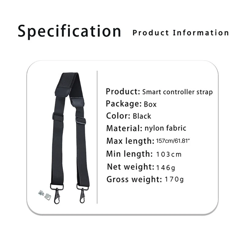 Features: nylon material, durable and comfortable to wear. Adjustable length, suitable for wide ranges of people. Adjustable buckle for a more enjoyable use. After using the lanyard, both hands can be released, making it more convenient to carry. Metal hook, 360 degree rotate, detachable foldable storage. Specifications: Nylon+Metal Color: Strap, Hanging Buckle(optional) Half Fold Length: approx. 52-79cm/20.4-31.1inch Applicable Models: for 3/4 for Air 3, suitable for RC2 RCPro Remote Control with Screen Package Includes: 1x Remote Control Strap or 2x Hanging Buckles(optional) note: Please allow 1-2cm errors due to manual measurement. Please allow for slight color differences due to different display resolution.