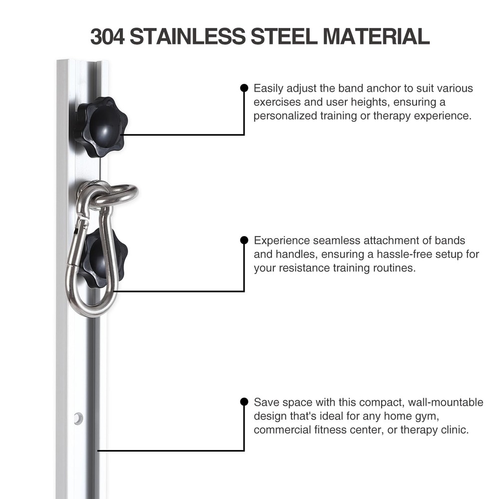 Well-designed; Our adjustable resistance band wall anchors are made of high-quality aluminum, all parts are made of 304 stainless steel to ensure a long service life, and its adjustable design allows you to customize the anchor points to suit your preferred resistance band workouts, providing a safe and stable anchor point,adjustable slide rails,This adjustable resistance band wall anchor is designed for resistance band workouts, Whether you're looking to build muscle, build strength, or improve flexibility, this anchor will be your perfect workout companion that offers endless possibilities for a variety of exercises like chest presses, rows, bicep curls, and more,Space-saving,Say goodbye to bulky gym equipment that takes up valuable space at home or gym, resistance band wall anchors provide a compact and efficient solution for your fitness needs, simply install it on any sturdy wall or door, and you can instantly transform any space into your personal workout area, improving safety and stability,Detailing,Safety is paramount when working out with resistance bands, and our adjustable resistance band wall anchors ensure a safe and secure workout experience, and with its sturdy construction, you can work out with confidence without worrying about slipping or getting into an accident,Contains components,2 Rail and 2 Rail Car,They can be installed separately or connected together, according to your workout habits, equipped with mounting screws, if you have any questions or suggestions, please do not hesitate to us, your satisfaction is our top priority