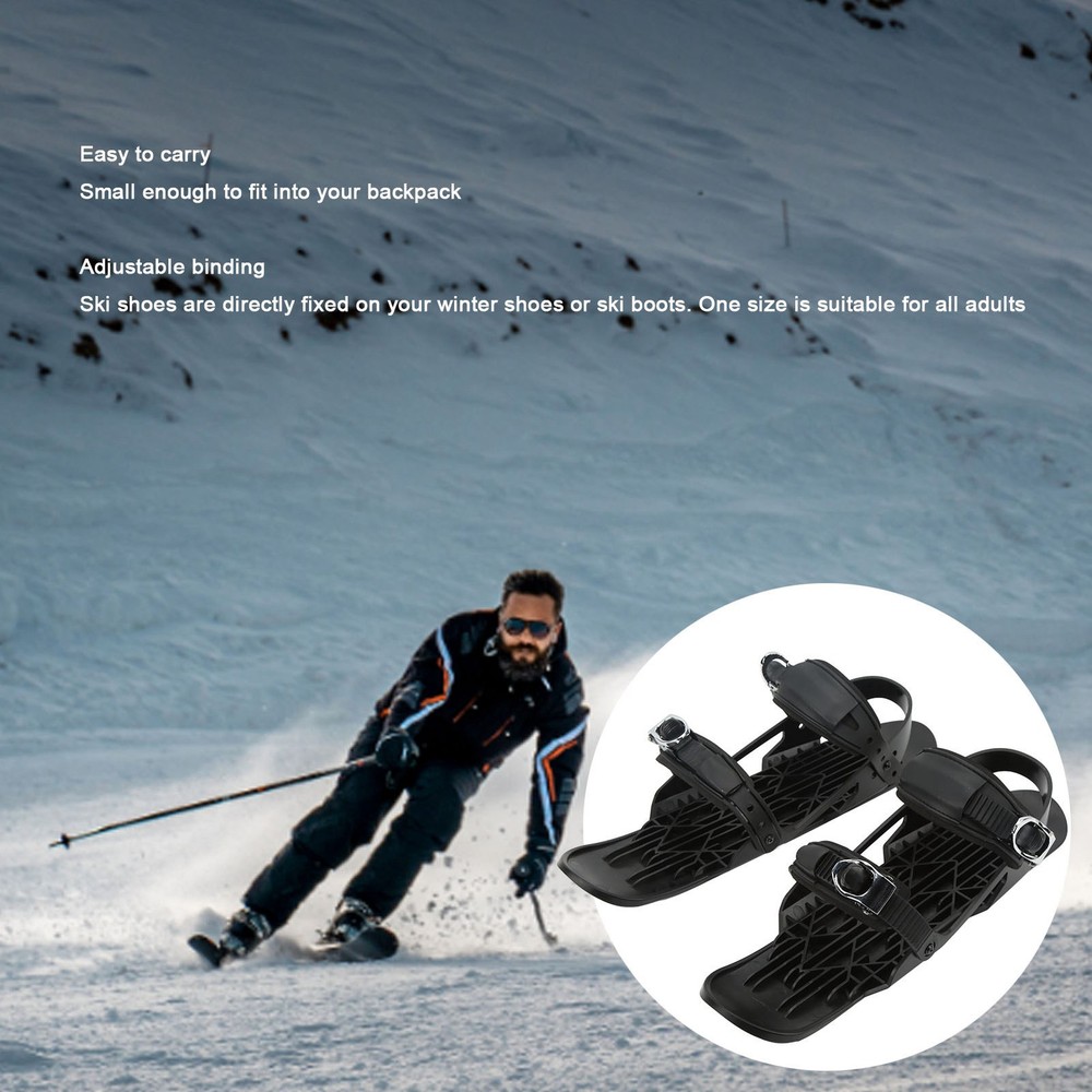 Feature: 1. Adjustable Binding: The ski shoes can be directly fixed on your winter shoes or ski boots. The adjustable binding on the shoes allows you to connect to any shoe, and one size can fit all adults. 2. Easy to Control: The ski shoes are made of highly nylon, stainless steel and metal buckle. The edge of the metal snowboard can make you stop easily. So even beginners can easily control the direction and maintain balance when going downhill. People who play ice hockey, skate, or even use roller skates will feel this is very natural. 3. Portable: The mini snowboard are small enough to fit into your backpack, so you can take them with you. You don't need ski boots or any other heavy and expensive equipment, just open your backpack and enjoy a unique skiing experience in your winter adventure. 4. Applicability: The cold winter can not block the love of sports and yearning for freedom. Ski shoes are suitable for cross country skiing, skating, forest trails, slopes and so on. It's cool to wear them to ski and will bring you a different experience and change everything about your ski trip. Bring your ski shoes for a winter trip, ski competition and ski party. 5. A Nice Gift: The mini ski boots can be a gift for friends or family who like skiing. When they receive this gift, they will be very happy. They can wear them for winter outdoor sports. And the shoes let them slide easily on the ice and snow, which is full of fun. Specification: Item Type: Ski shoes Material: ABS, nylon, aluminum alloy Weight: Approx. 1611g/56.8oz Color: Black Product Size: size, fit US 5-14, EU 35-48 Product Size: 43.5x14.5 x8.5cm/17.1x5.7x3.3in Package List: 1 x Mini Ski Shoes 1 x Storage Bag Note: 1. Please allow 1‑3mm error for manual measurement, thank you! 2. Due to the difference between different monitors, the pictures may not reflect the actual color of the items. 1. Our listing price includes the value of goods,packaging cost,and export taxes,not including international duties. 2. duties,taxes,and charges are not included in the item price or shipping fee. 3. T he duties are buyers' responsibility .Please check with your country's customs office determine what these additional costs will be prior to your purchase. 4. All disputes arising from the duties will be submitted to ebay for solution. 1. Any questions, pls. contact us via ebay message or email us. We will reply your message within 48 hours. If you do not receive our reply within 48 hours, pls. post a message again because sometimes our message system may block some emails. 2. If you are satisfied with our service, pls. kindly leave us a positive feedback and give us the Detailed Seller Rating with all " 5 " in very area 3. Our aim is to provide Level Customer Service, your recognition will encourage us greatly and serve you better. We strive to keep all our customers satisfy. We will do our up most to exceed your expectations in customer service, communication and dispatching of your orders. On Mar 2, 2025 at 19:36:27 PST, seller added the following information: