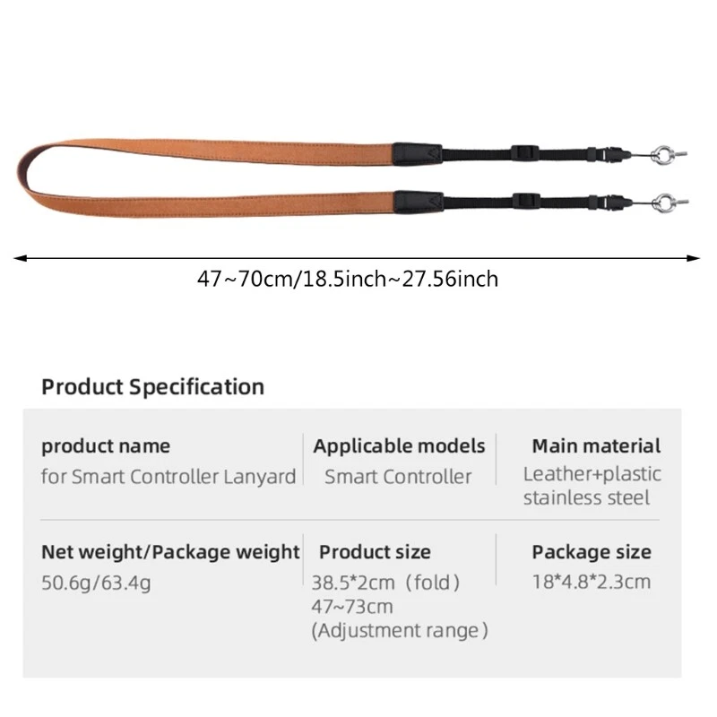 Features: Remote control lanyard for Mavic 2/Air 2/Air 2S remote controllers, and also for other remote controllers with hanging holes exceeds 3mm. Length of lanyard can be adjusted to 70cm/2.29ft, and the adjustable buckle conforms to the wearing habits of different people. your hands and make aerial flight easier. Two-color designed neck hanging lanyard, easy for you distingush the inner and outer layeer clearly. Stainless steel screws, durable and anti-dropping, protect your remote controls from accidential drops, adding a safety sence of flying. Specifications: Material: Leather+Plastic+Stainless Steel Lanyard Length: Adjustable 47-70 for cm/18.5-27.56 in Color: Brown/Black Applicable for Mavic 2/ Air 2/Air 2S Remote Controls Package Includes: Piece Two-color Lanyard note: Please allow 1-2cm errors due to manual measurement,pls make sure that you do not mind before you order. Due to the difference between different monitors, the picture may not reflect the actual color of the item.