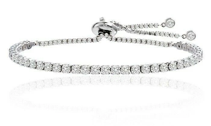 Adjustable Tennis Bracelet Made with Swarovski Elements (Chain length: 5”–10”). Classic design with dangling crystal ends Versatile piece for everyday wear Crystal type: Swarovski Elements Crystal Metal: sterling silver Plating: 18K white, yellow, or rose gold Clasp type: secure slider lock Chain length: 5”–10” Adjustable length Full dimensions: 7.25”x7.25”x0.25” Lead- and nickel-free for sensitive skin types Shipped with USPS First Class Package.