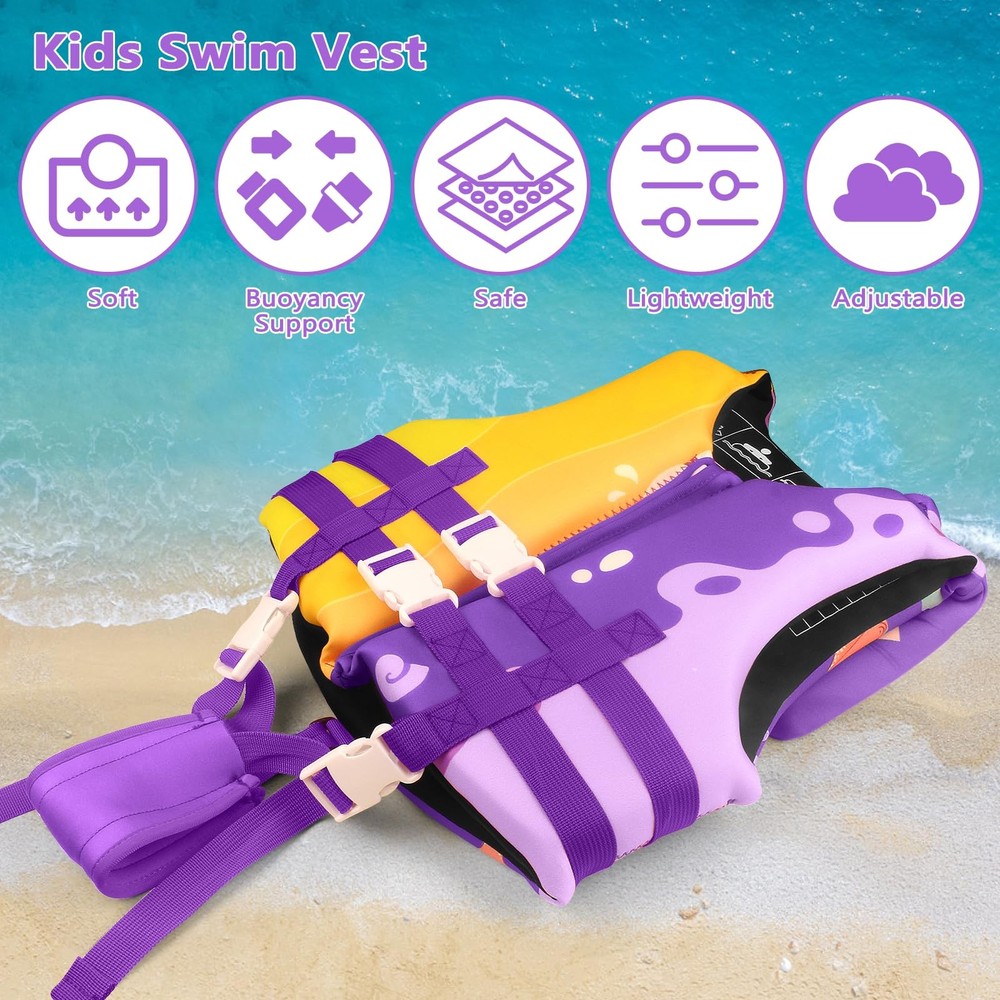 Toddler Swim Vest Jacket for Boys Girls 20-70 Pounds/2-10 Years, Kids Swim Vest with Adjustable Safety Strap for Pool Beach for Learning Swimming Innovative Design: Kids swim vest add a head support design to keep your child's head above water. This sleeveless swim vest lets your child swing arms casually in the water. These designs give children enough security while boosting their self-confidence in swimming Upgraded Protection: Toddler swimming vest are upgraded with four safety buckles and wider crotch straps, along with high-quality front zippers and safety buckles, as well as adjustable high-density nylon straps. Multiple design upgrades prioritize comfort and safety Premium Material: Swim vest for toddlers are crafted using a premium one-piece woven air-layer fabric, with extra thick EPE foam inside. They are lightweight, breathable, skin-friendly, and provide sufficient buoyancy for your kids. The unique cartoon pattern and bright colors make kids love them even more Suitable Range: Baby swim vest includes three sizes of S/M/L, suitable for ages and weights of 2-10 years, 26-60 pounds, you can choose the right size according to your child's different age and weight. Swimming vest for kids can be used at the sea, boating, water park, and pool Note: Infant swim vest do not provide drowning protection and can only provide buoyancy assistance for children. They must be accompanied by an adult when in use New upgraded kids swimming vest, featuring a unique design pattern paired with bold, bright colors for a delightful surprise. These swimming accessories are designed for young children aged 2-10 years old, weighing 20-70 pounds, and are great for helping them swim independently during summer trips to water parks or pools. Why choose a swim vest? Safe and Comfortable The kids swim vest is made of woven air layer fabric on the outside and pearl cotton on the inside, which is skin-friendly. The toddler swimming vest contains four adjustable safety buckles, very easy to wear, high-density nylon belt is very strong, and repeated use will not break while ensuring the safety and comfort of wearing. Unique Design swim vest for kids adds head support and widened crotch straps. The widened crotch strap makes it more comfortable to wear. The adjustable leg straps allow for more flexibility in leg movement and allow the swim vest to fit into the body, preventing the vest from moving up and down in the water. Wide Range of Application The infant swim vest comes in three sizes, S/M/L, corresponding to body weight: 12-16Kg/26-35lb, 16-20Kg/35-45lb, 20-27kg/45-60lb. The corresponding ages are: 2-4 years old, 4-6 years old, 6-10 years old. According to the size table, you can choose the size suitable for your child. Learning to Swim is A Good Helper Our swimming vest for kids is designed to provide buoyancy and balance for children learning to swim at lakes, pools, and beaches. Let children learn to swim with confidence, and travel, but also let parents be more assured. A baby swim vest can help keep your child and allow them to develop a proper swimming position. Shipping We offer FREE shipping on all orders! We ship within Three business days of payment, usually sooner. We use a selection of shipping services such as UPS, FedEx, USPS etc. We only ship to the lower 48 states, no APO/FPO addresses or PO Boxes allowed. Local pickups and combined shipping options are not provided at this time. Return You can return a product for up to 30 days from the date you purchased it. Any product you return must be in the same condition you received it and in the original packaging. Please keep the receipt. Payment We accept payment by any of the following methods: PayPal Please pay as soon as possible after winning an auction, as that will allow us to post your item to you sooner! Feedback Customer satisfaction is very important to us. If you have any problem with your order, please contact us and we will do our best to make you satisfied. Contact Us If you have any queries, please contact us via ebay. We usually respond within 24 hours on weekdays. Please visit our eBay store to check out other items for sale! Thank you for shopping at our store.