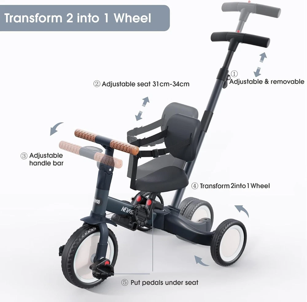 Adjustable Toddler Tricycle & Balance Bike with Removable Backrest - Age 1-3