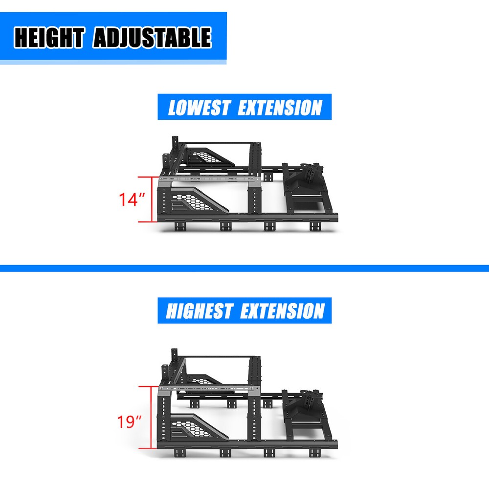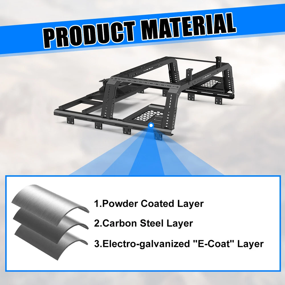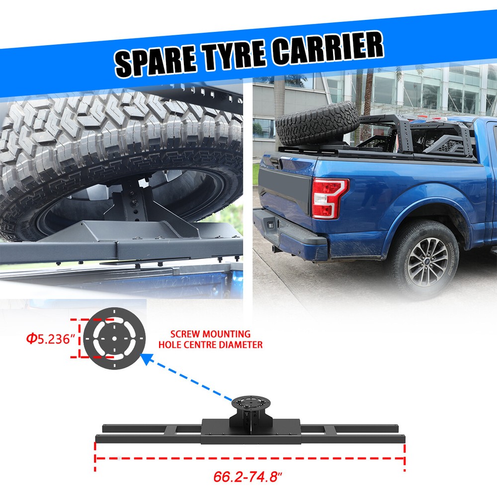 Store Categories Other Car Refrigerator Front Bumper Rear Bumper Fender Flares Inner Fenders Side Steps Running Board A-Pillar Light Mount Brackets Headlights Taillights Fog Lights LED Headlights LED Taillights LED Fog Lights Jeep Chevrolet Ford Toyota Dodge GMC More Roll Bar: https://www.ebay.com/itm/405272971219 https://www.ebay.com/itm/405287282366 https://www.ebay.com/itm/405256884904 Modular Overland Bed Rack (Front) Features: Mounting Base: ✴ Compatible with most retractable, roll-up, and folding bed covers. ✴ Bed covers will not be able to fold completely back. ✴ Can be secured by punching holes in the bed shoulders or Locked to factory side rails. LED Light Mounting Bracket: ✴ Pod light or Light Bar can be installed ✴ Adjustable position of mounting bracket ✴ Adjustable height range of 4.84-7.6inches Side Rail Mounting Bracket : Compatible with factory bed rail. Decorative Bezel: Honeycomb Mesh Allows DIY colour spraying. Modular Overland Bed Rack (Mid) Features: Mounting Base: ✴ Compatible with most retractable, roll-up, and folding bed covers. ✴ Bed covers will not be able to fold completely back. ✴ Can be secured by punching holes in the bed shoulders or Locked to factory side rails. ✴ SpareTyre Carrier can be installed above the base. Side Rail Mounting Bracket: Compatible with factory bed rail. Connection bracket: Connect to the Bed Rack(Front) Spare Tyre Carrier Features: ✴ Can be mounted directly on the bed, but requires pre-punched holes and installation of the rivet nut. ✴ Compatible with most off-road tire. ✴ Available in 5mm steel plate. ✴ Width adjustment range 66.2-74.8 Inches. Compatibility ✴ For 1994-2010 Dodge Ram 1500/2500/3500; ✴ For 2011-2025 RAM 1500/2500/3500 (Not compatible for models with RamBox) ✴ For 1999-2025 Chevy silverado/GMC sierra 1500/2500HD/3500HD ✴ For 1997-2025 Ford F-150; ✴ For 2017-2025 Ford F-250/350 Super Duty; ✴ For 2000-2021 Toyota Tundra; ✴ For 2004-2024 Nissan Titan/Titan XD Specification ✴ Color: Black ✴ Materials: Q235A ✴ Placement on Vehicle: Rear ✴ Installation: Bolt-on, ✴ Attachment Type: Screw-On ✴ Items Included: Mounting Hardware ✴ Surface Finish: Black Powder Coated Steel ✴ Fitment Type: Direct Replacement ✴ Adjustable Width: 62.2~72.8 inch ✴ Adjustable Height : 14-19 inch ✴ Modular Overland Bed Rack (Front) Package Size: 33.66 *25.59*10.63 inch ✴ Modular Overland Bed Rack (Front) Package Weight: 82.67lbs ✴ Modular Overland Bed Rack (Mid) Package Size: 33.66*25.59*6.69 inch ✴ Modular Overland Bed Rack (Mid) Package Weight: 52.91 lbs ✴ Spare Tyre Carrier Package Size: 33.46*17.71*12.6 inch ✴ Spare Tyre Carrier Package Weight: 81.57 lbs Package List ✴ 1*Modular Overland Bed Rack (Front) ✴ 1*Modular Overland Bed Rack (Mid) ✴ 1*Spare Tyre Carrier ✴ 1*Set of Mounting Accessories Payment Delivery details Terms of sales About us Contact us Payment We accept PayPal, credit card , Apple Pay & Google Pay etc. Delivery details All items will be shipped within 1-3 business days after payment received, we will try our best to ship out as soon as we can, hope for your understanding. Please double confirm your address and contact information, which will help the delivery faster and more accurately. Note :buyers who purchase international products need to pay import tariffs!!! Terms of sales Professional installation is highly recommended. Any problem of the item please feel free to contact us first , please D o Not leave negative feedback before that, or simply return it within 60 Days in original condition. We will resolve it for you ASAP. About us Any questions please do not hesitate to contact us directly by eBay message . We will reply you within 24 hours asap, thanks for your understanding. Contact us Should you have any problem or require any further information please feel free to contact us . If you are satisfied with our product and service, please kindly leave us a positive feedback. Popular Categories